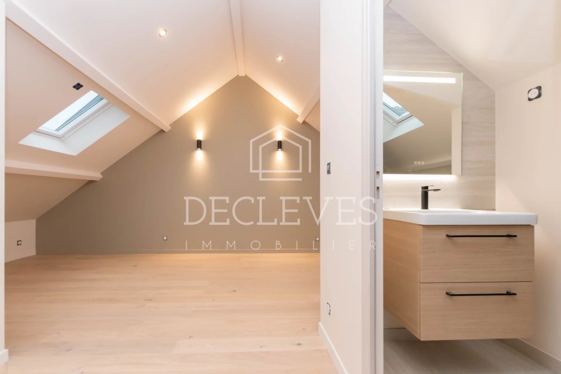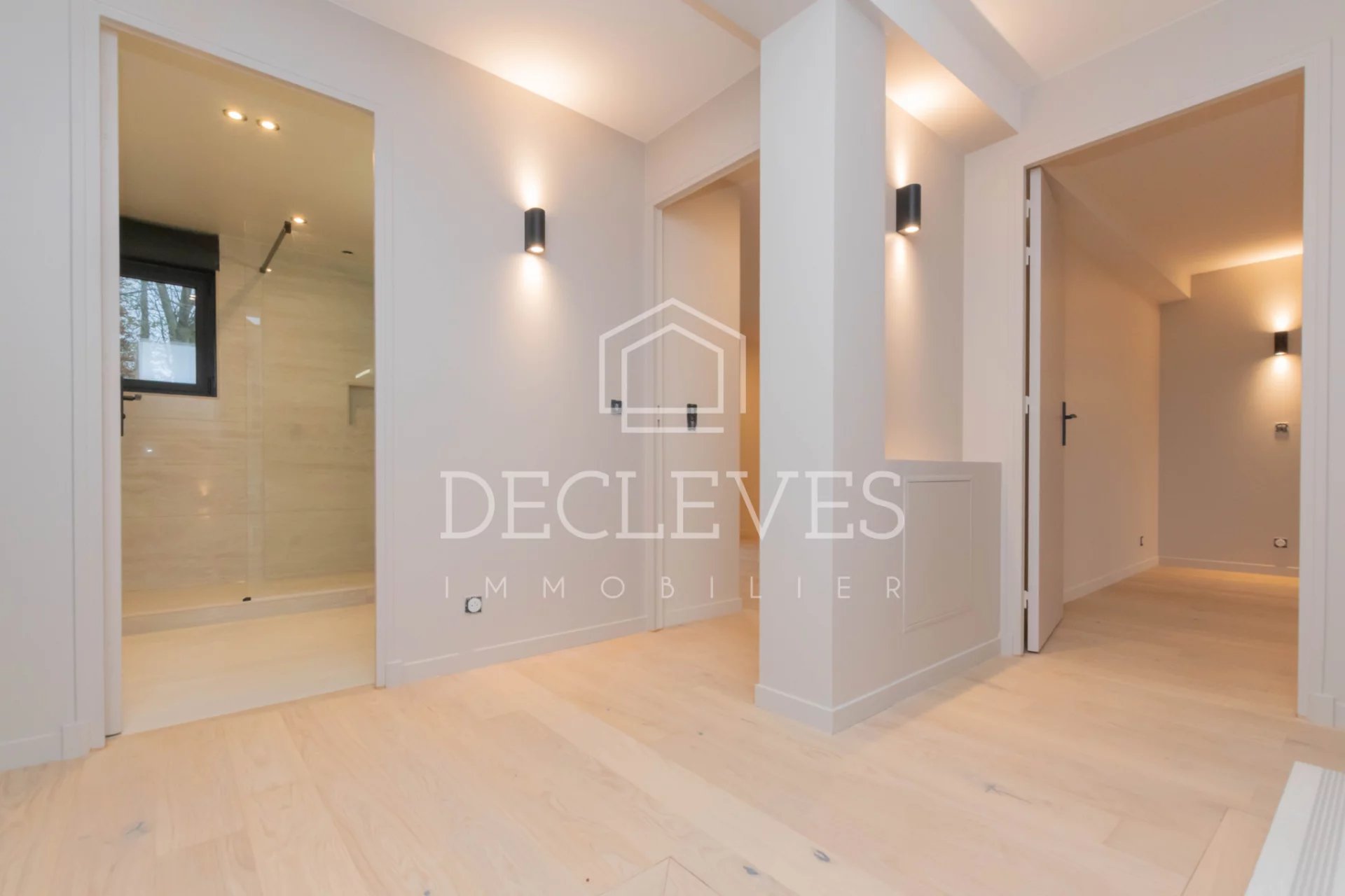 Au dernier étage : un dégagement donne sur un espace pouvant servir de chambre, de bureau ou de salle de jeux, salle de bains, très belle chambre et toilettes.