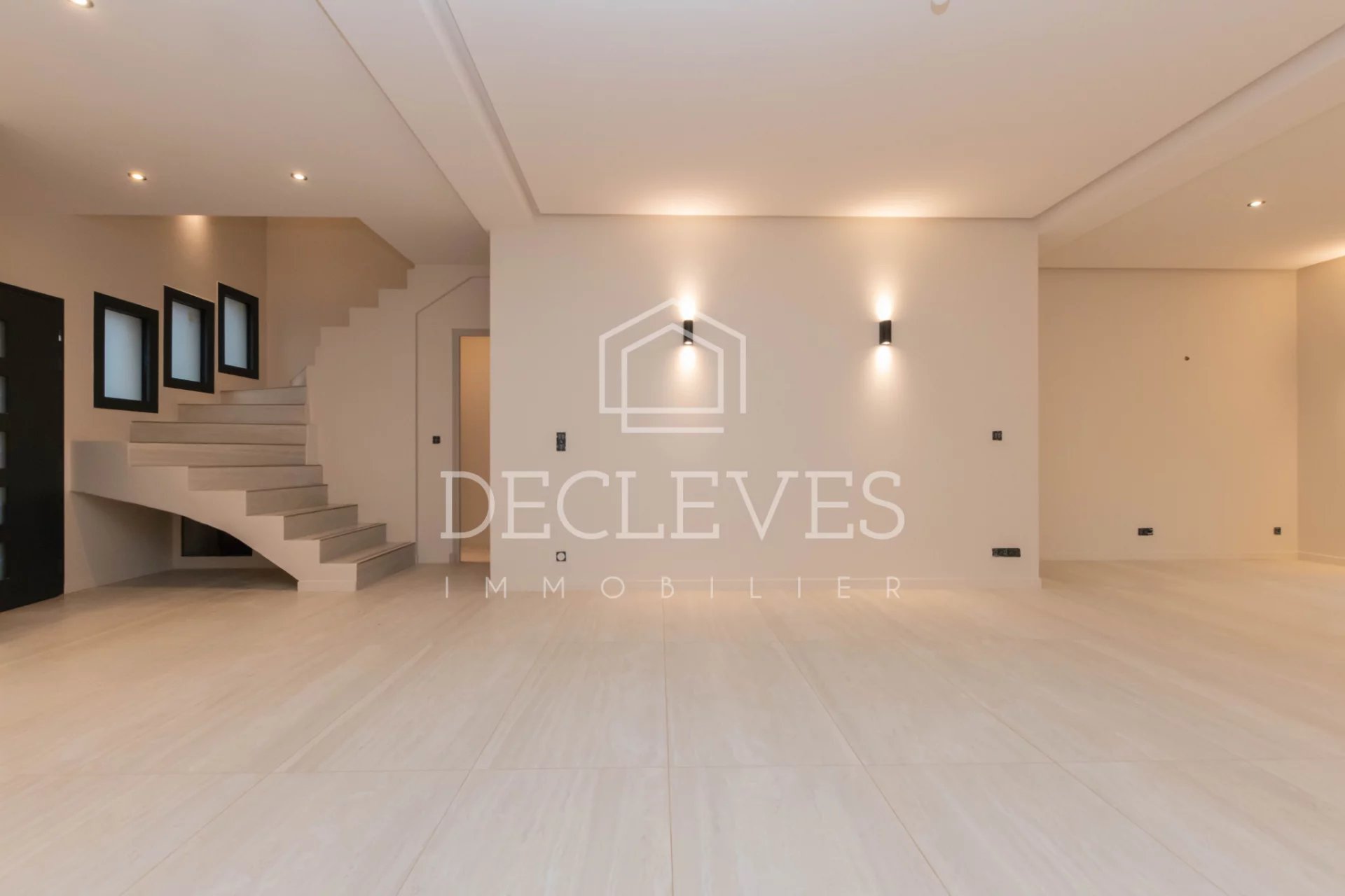 Au rez-de-chaussée une entrée donne sur un bel espace de vie avec cuisine ouverte sur séjour double, buanderie et toilettes séparés.