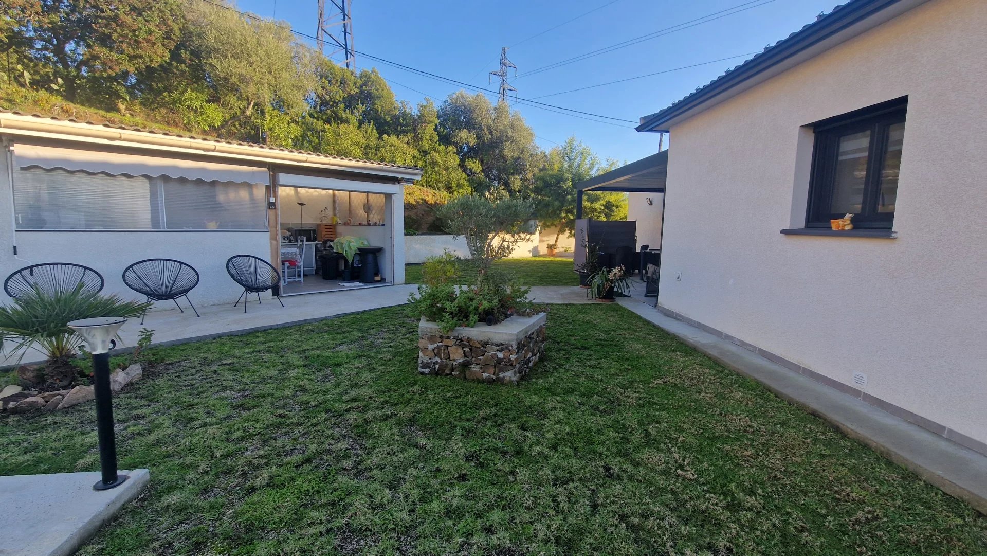 Magnifique villa avec deux appartements de type F4 et F3 située sur les hauteurs de Bastelicaccia. Elle bénéficie d'une vue panoramique sur le golfe d'Ajaccio et la vallée. La maison est en parfait état, les équipements sont de qualité et complets. La piscine a sa cuisine d'été entièrement aménagée et équipée avec un jardin aménagée très soigné. Il y a un grand garage et un atelier.