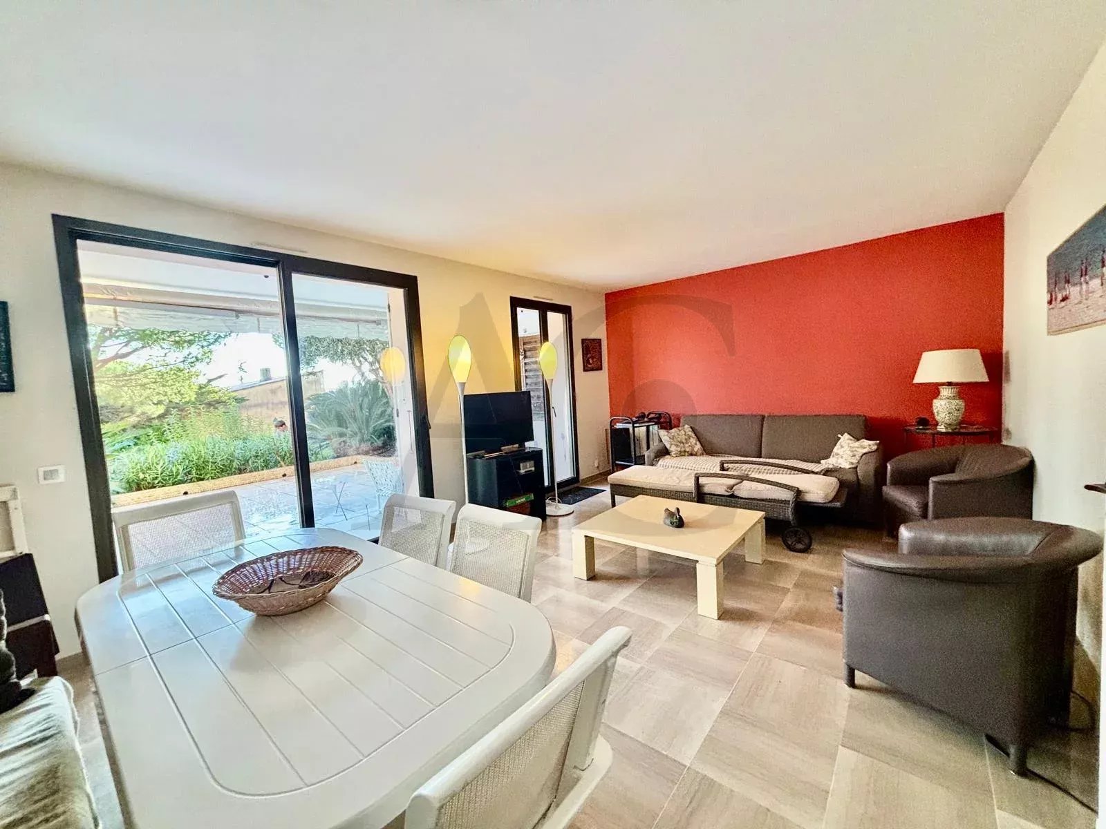 1 hall d'entrée, 1 cuisine équipée avec buanderie équipée, 2 chambres avec 1 salle de douche, 1 wc indépendant, 1 salon/salle à manger sur grande terrasse SUD SANS VIS A VIS parking extérieur libre. POSSIBILITE GARAGE FERME.