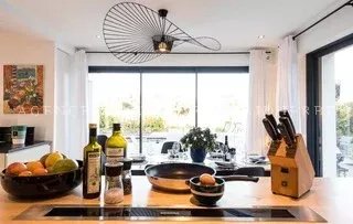83119005078AK Situata nel parco residenziale di Les Salins, questa villa contemporanea, splendidamente arredata e decorata, comprende: Al piano giardino: Una cucina completamente attrezzata con un ripostiglio che funge anche da lavanderia. La cucina si apre sul soggiorno e sulla sala da pranzo. Una camera da letto con letto matrimoniale (140 cm) e bagno con doccia e WC. Una seconda camera da letto con letto matrimoniale (160 cm), bagno con doccia adiacente e WC separato. Al primo piano: Una camera da letto con letto matrimoniale (160 cm) e terrazza con vista sulla piscina. Un bagno con doccia e WC separato si trovano sul pianerottolo. La camera da letto principale, anch'essa con letto matrimoniale (160 cm), dispone di bagno privato, WC, ampio armadio e terrazza. Piscina (3 x 10 m) Campo da bocce Barbecue Allarme, aria condizionata, Wi-Fi Utenze: Pulizia giornaliera: 350 € a settimana (2 ore al giorno), biancheria: 100 € a settimana Pulizia finale: 500 € Tassa di soggiorno: 6,91 € al giorno per adulto
