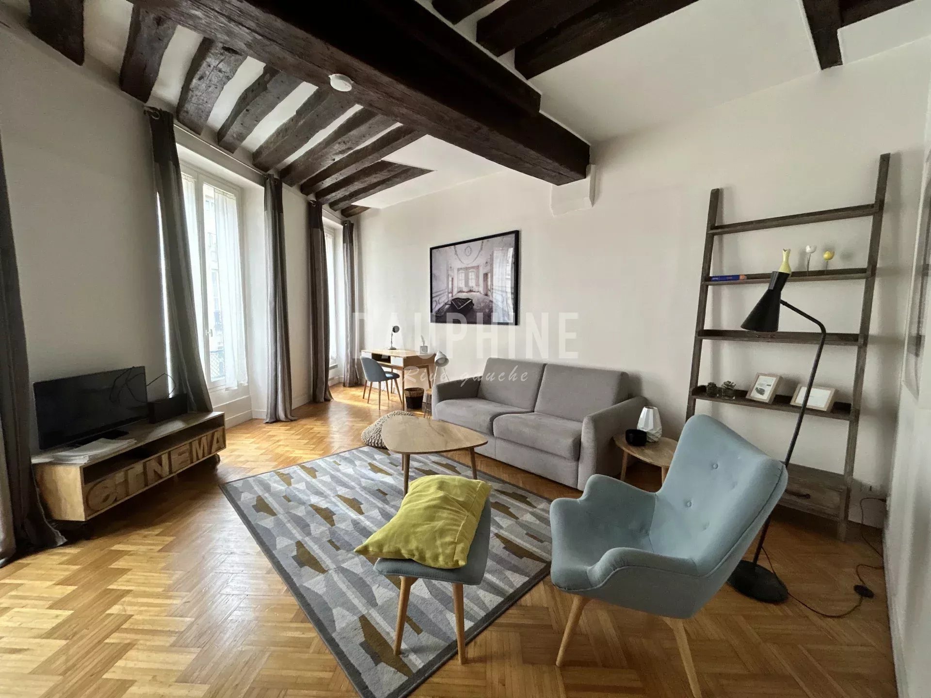 RUE DAUPHINE / L'Agence Dauphine Rive Gauche vous propose à la location meublée : Situé au 3ème étage, très bel appartement meublé comprenant une entrée, un séjour-salle à manger, une cuisine séparée équipée, une chambre, une salle d'eau , un wc. Jolies prestations, belle hauteur sous plafond, très clair et beaucoup de charme.