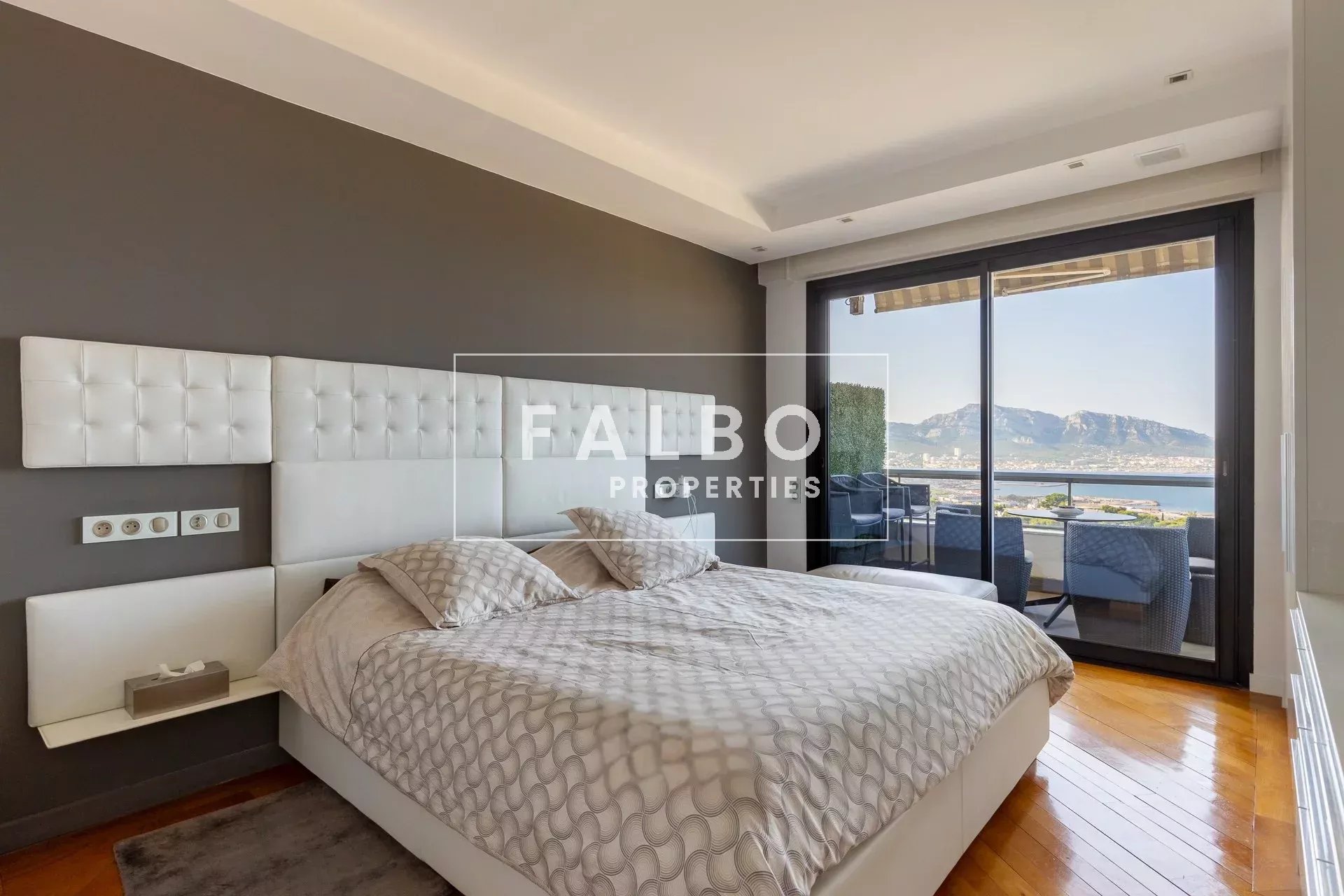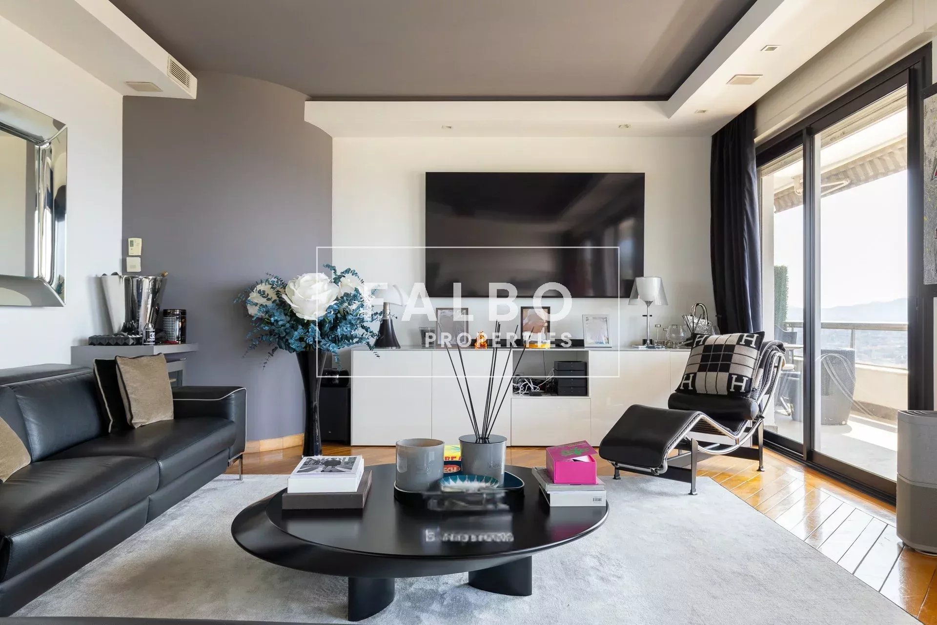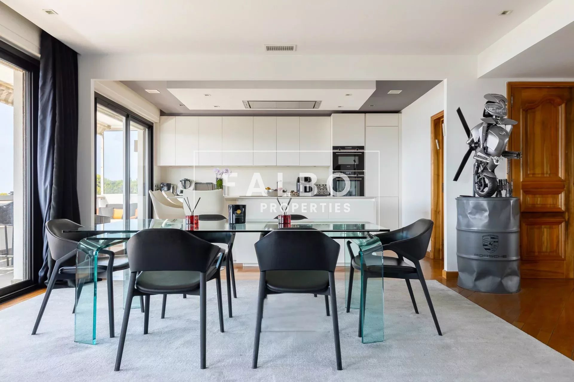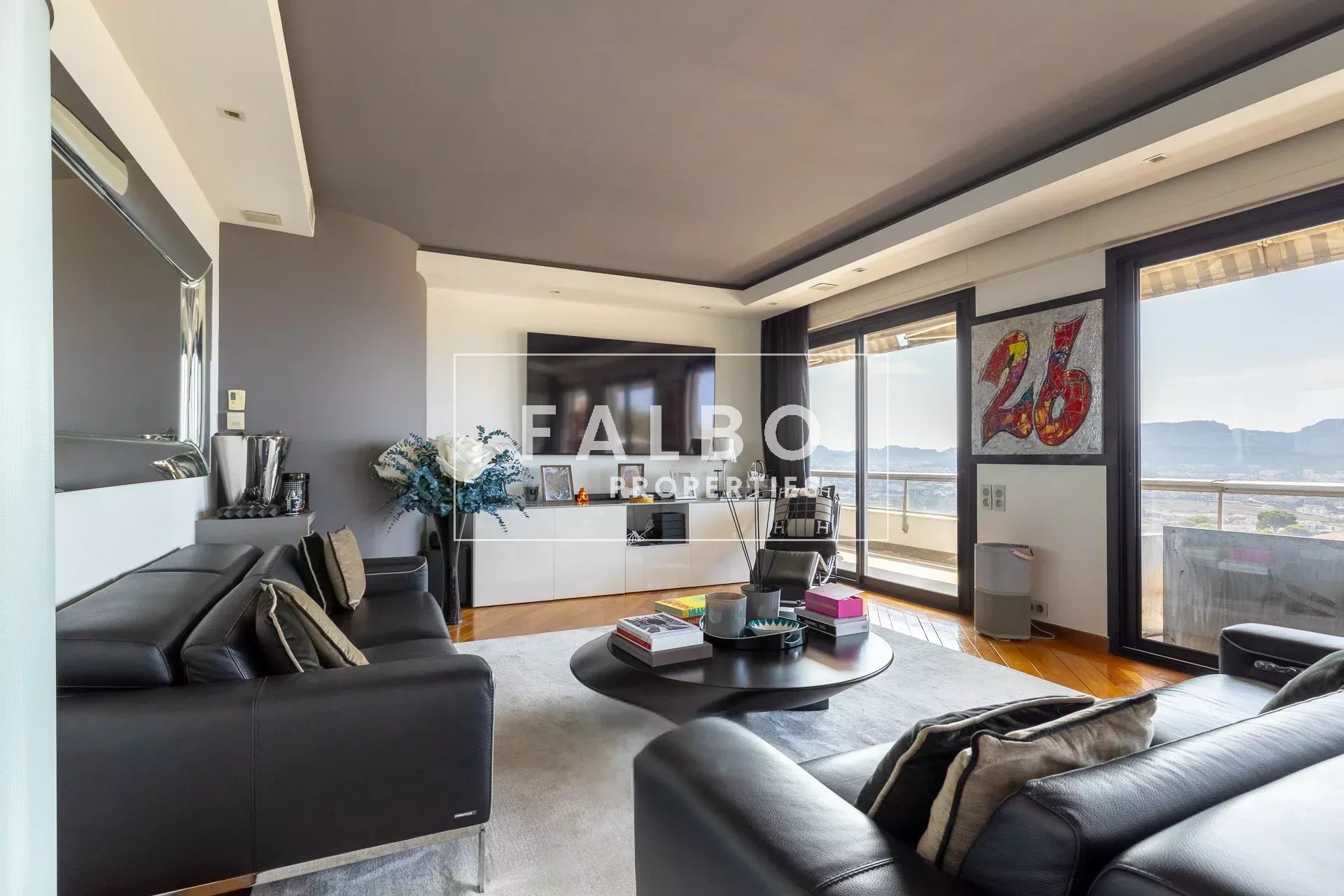Superbe appartement traversant parmi les rares opportunités qui offrent une vue mer dans la gamme du spectaculaire. Dans une résidence sécurisée de grand standing, au cœur d’une nature parfaitement entretenue et préservée, il offre un cadre de vie familiale exceptionnel, dans un espace agréable et bien distribué, avec prestations résolument haut de gamme. Le vaste séjour avec salon et cuisine ouverte donnant sur une grande terrasse de 35m² font face à la mer, de même que la chambre parentale. Deux chambres donnant sur les pins partagent un WC et une salle de douche, tandis qu’une quatrième chambre spacieuse, qui peut aisément être divisée en deux, complète la partie dévolue aux enfants ou invités. L’appartement bénéficie de deux ascenseurs privatifs avec portes blindées, d’un système d’alarme, de nombreux rangements, d’une loggia, et de très belles menuiseries. Il dispose de deux caves sécurisées. En option : deux places en box, une place de parking, ainsi qu’un studio indépendant de 24 m². Un bien rare, conjuguant espace, élégance et panorama d’exception.