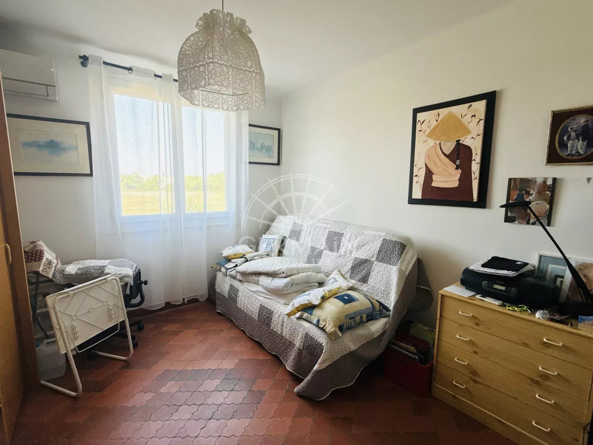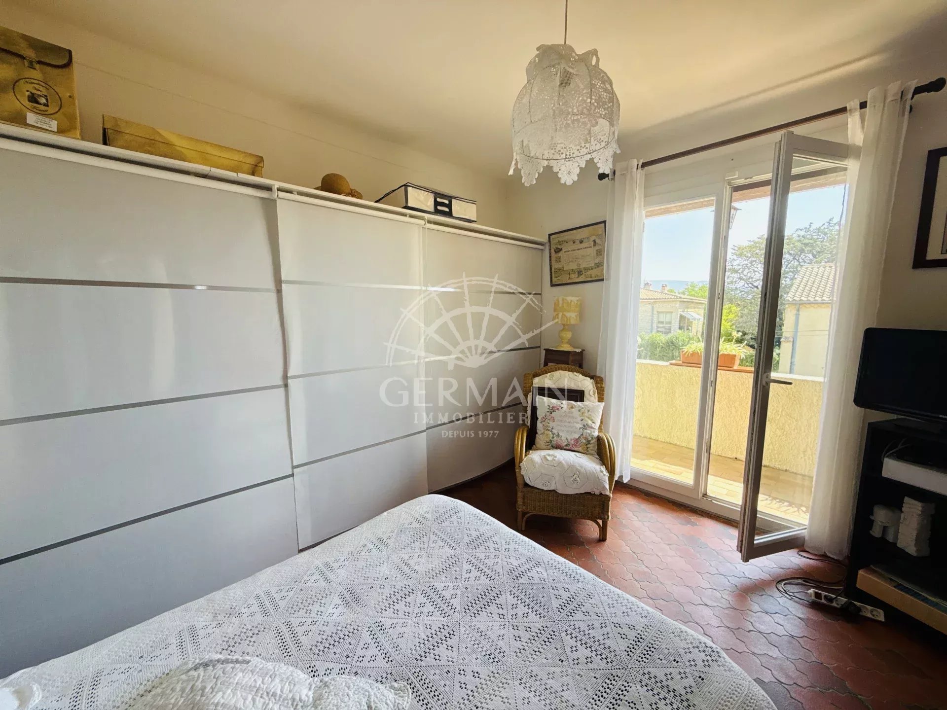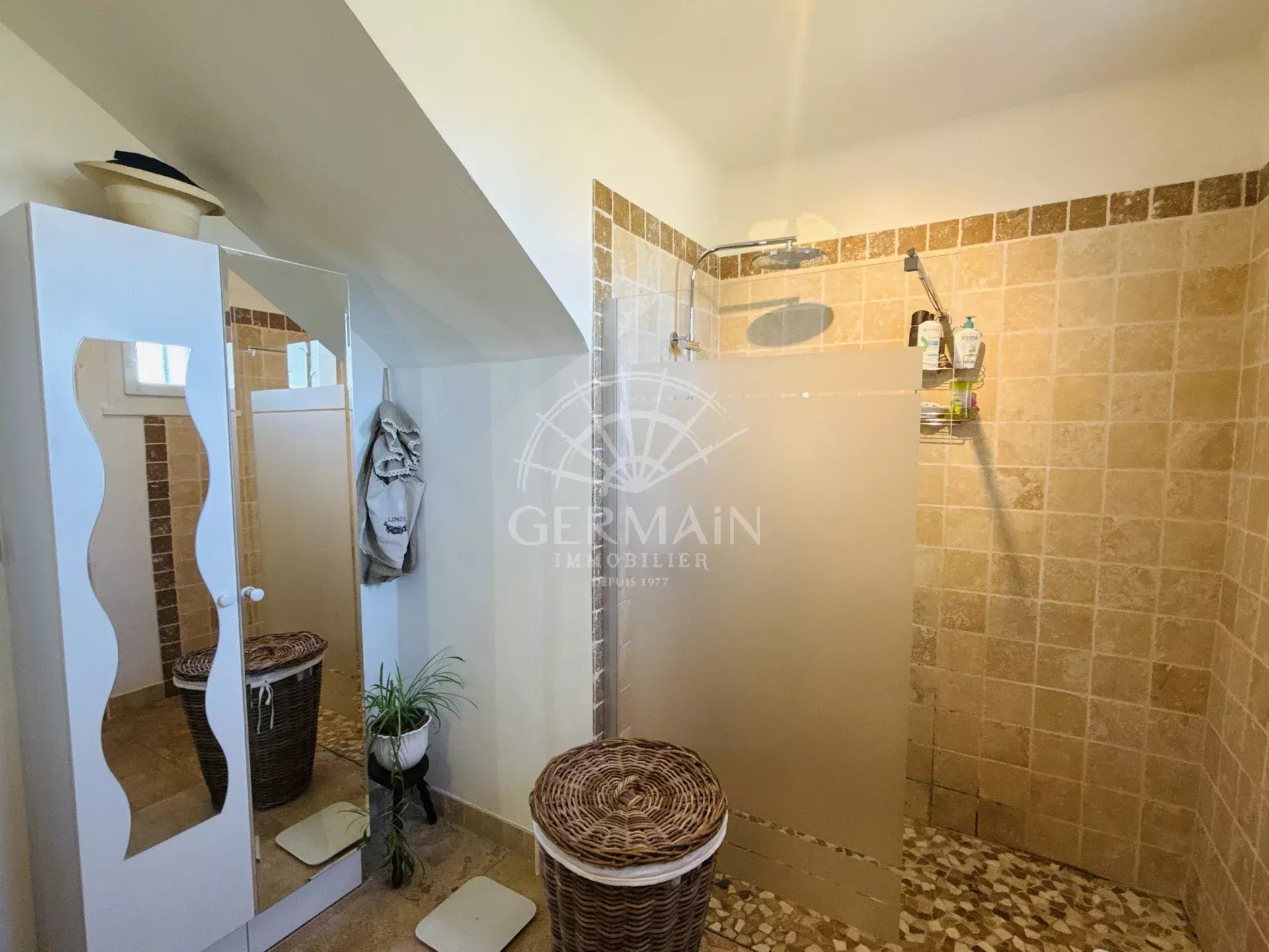 À l’étage, une chambre de 14,5 m² avec balcon, accompagnée d’une salle d’eau avec toilettes, complète l’espace nuit.