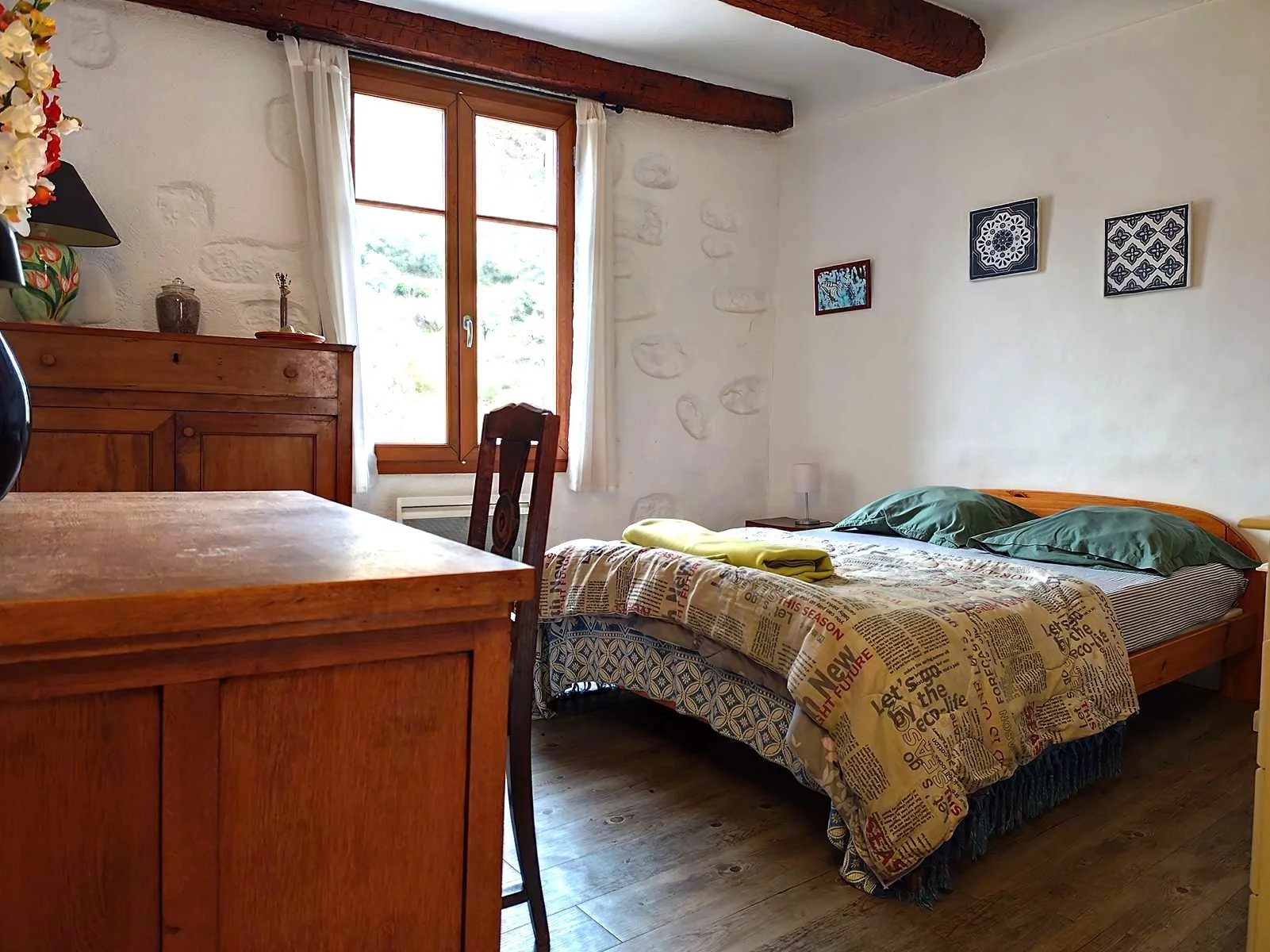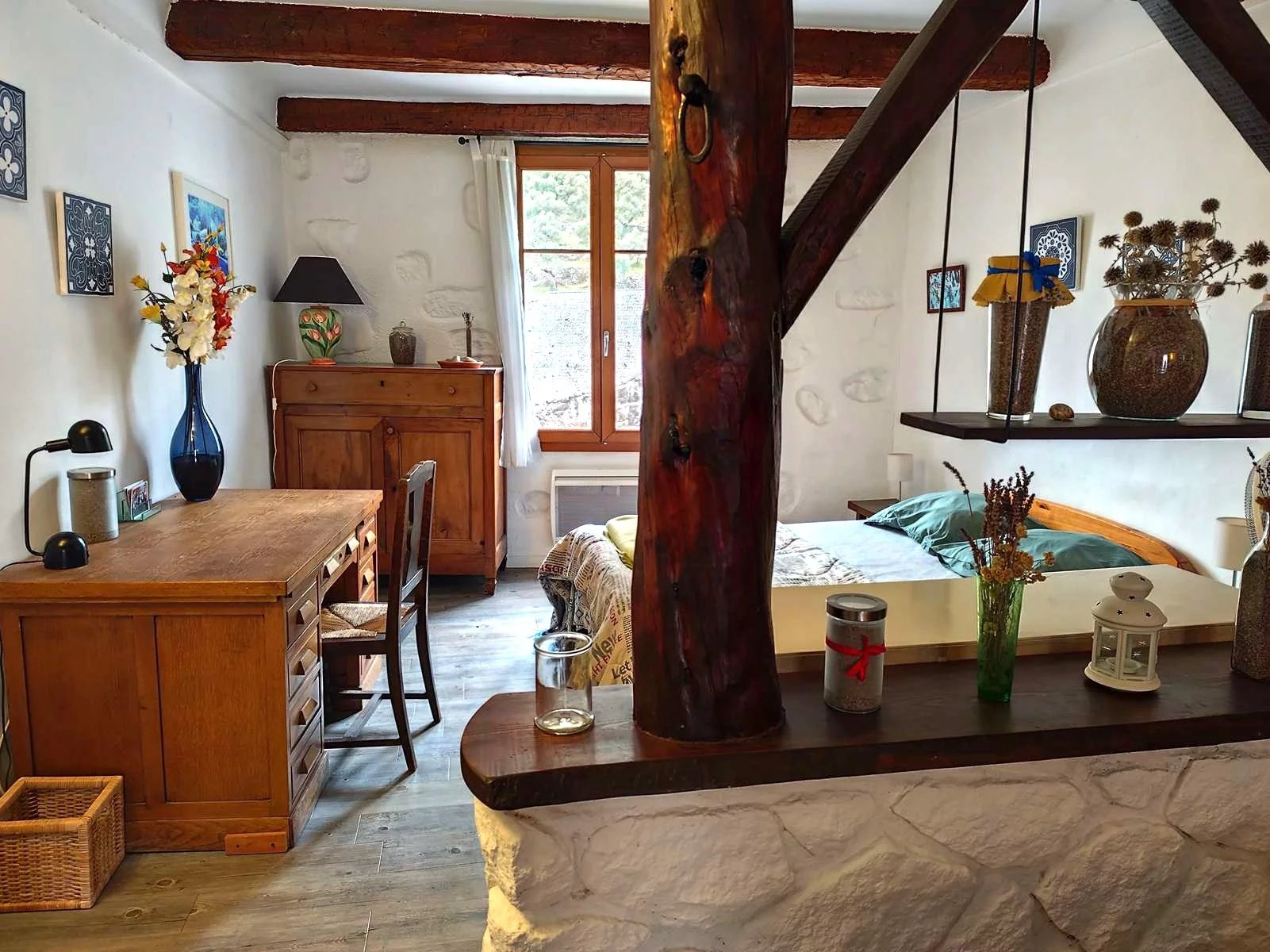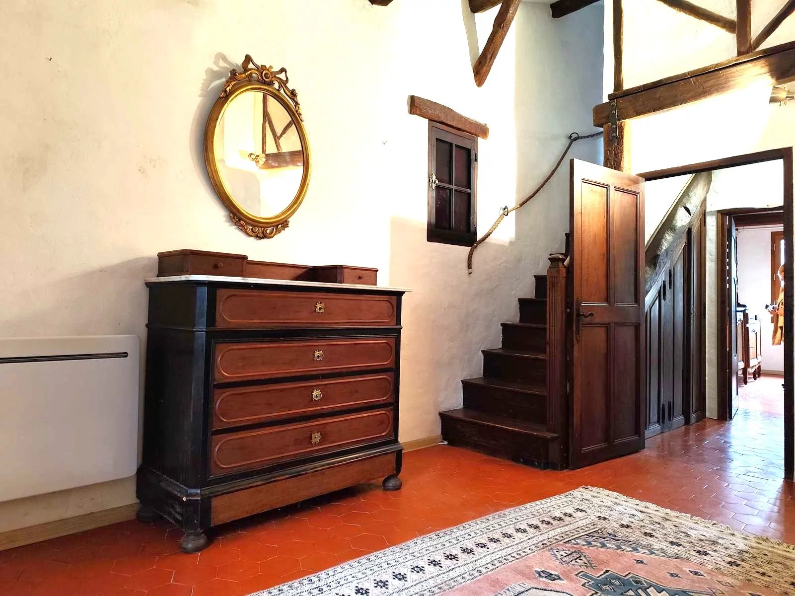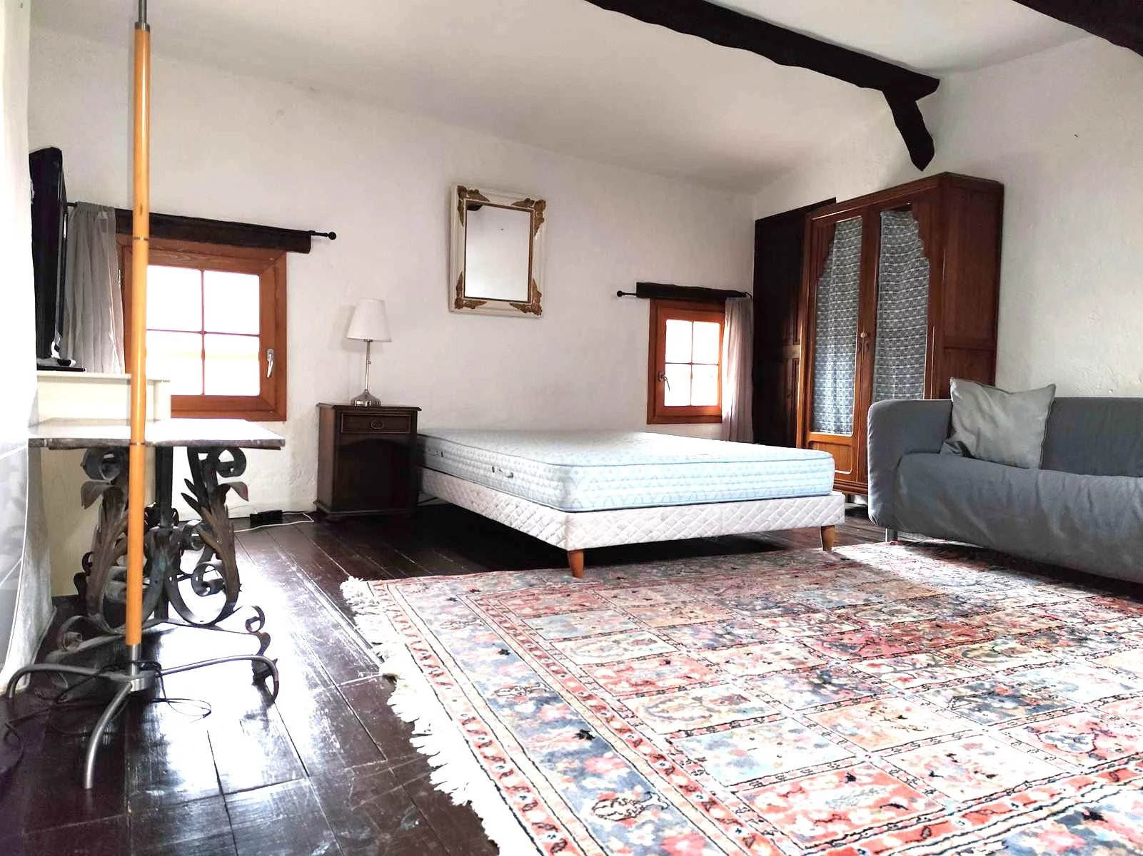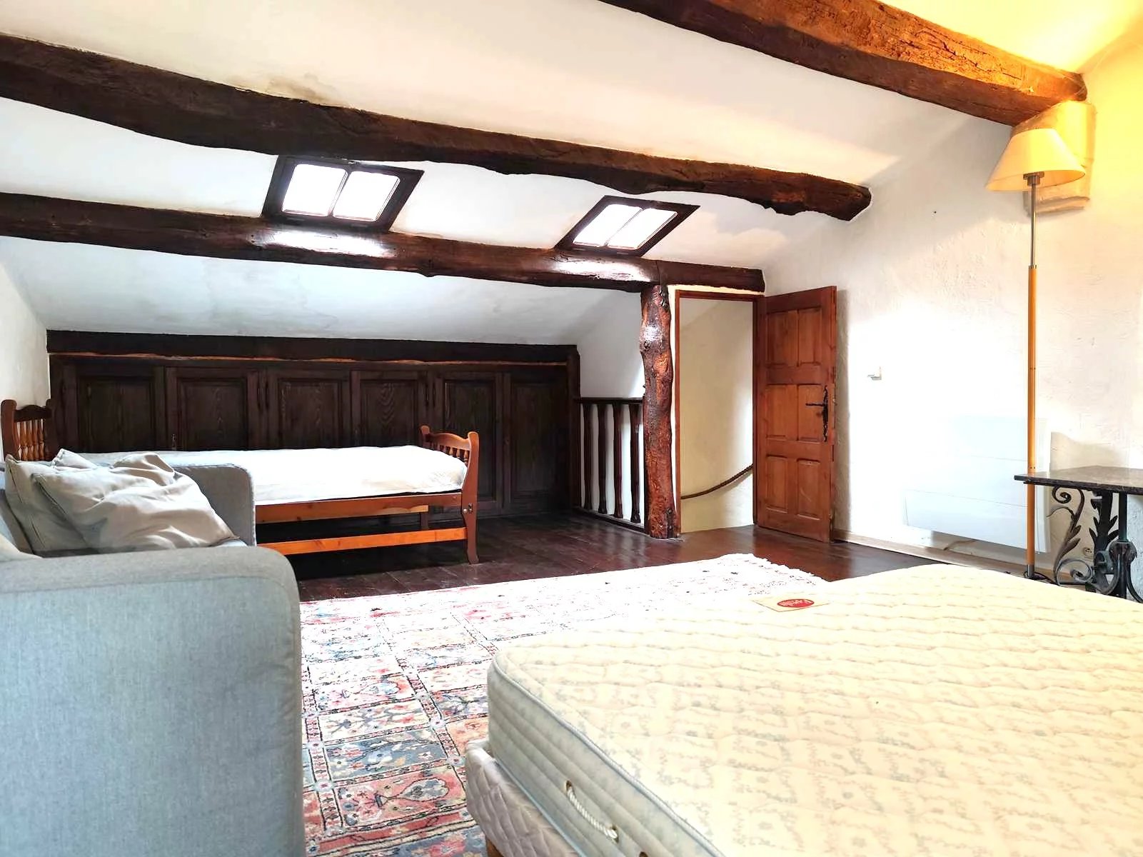 A l'étage une chambre mansardée de 23 m² dans sa totalité avec aussi un accès individuel par le couloir extérieur.