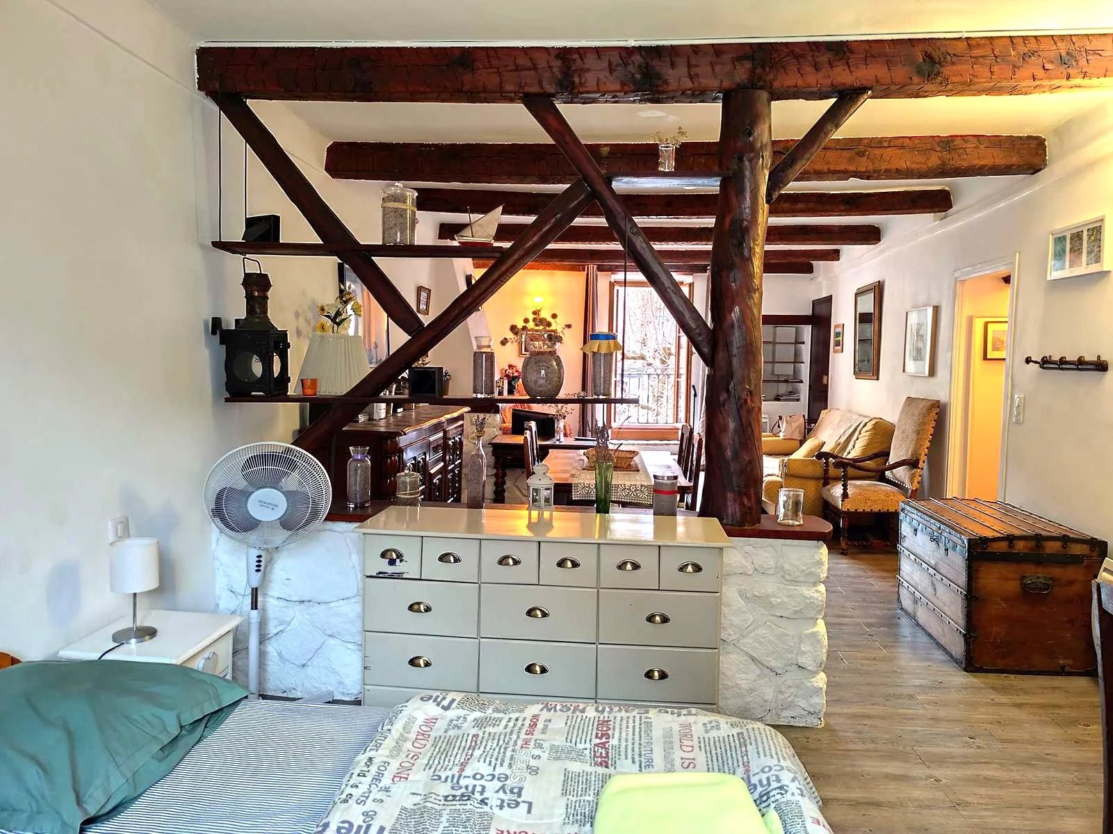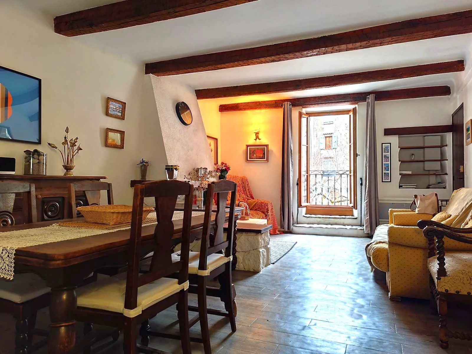 Nous vous proposons à la vente au cœur du village médiéval d'Entrevaux, sur la place principale du Planet, un ensemble immobilier composé de deux appartements de deux pièces à rafraichir et des murs commerciaux.