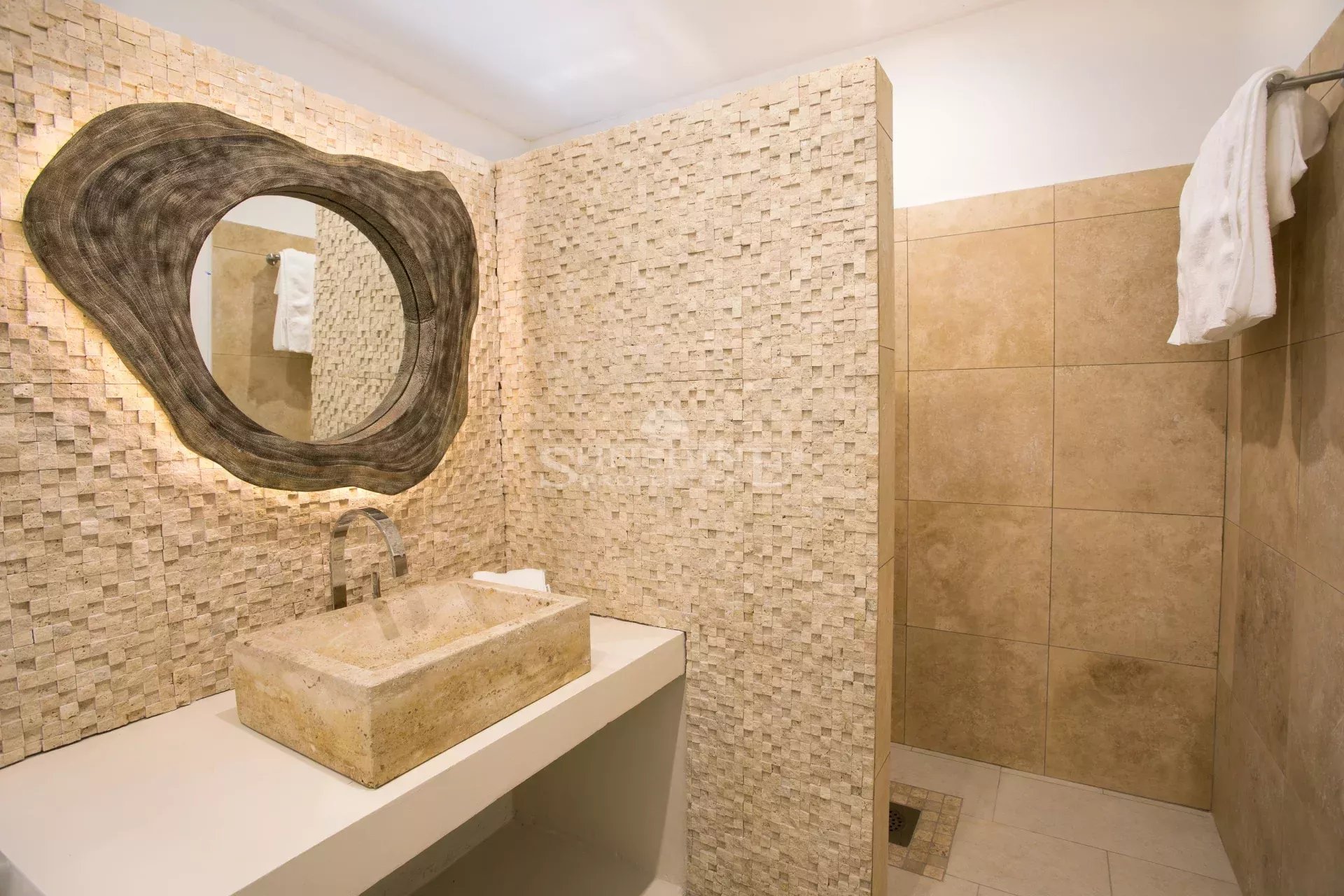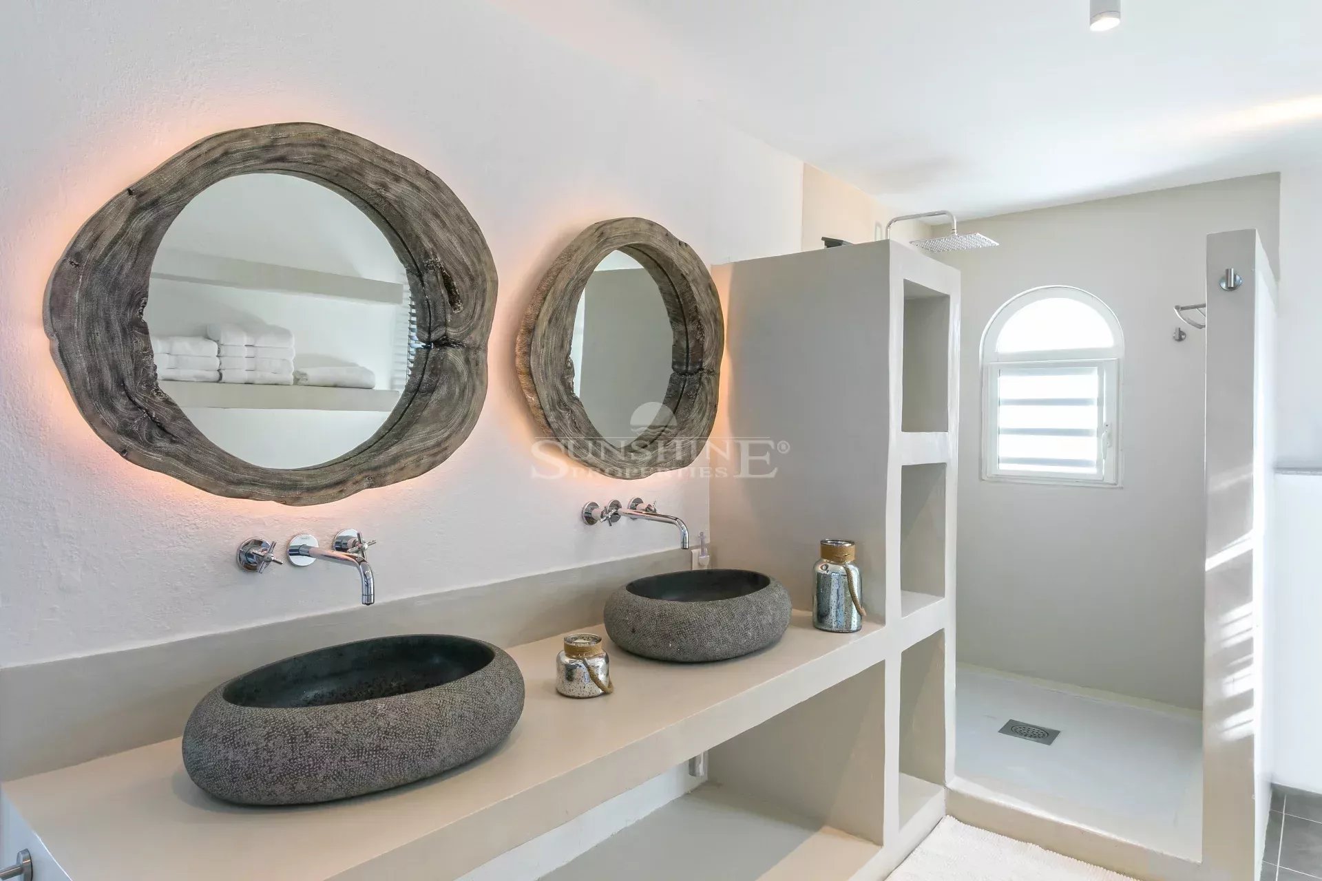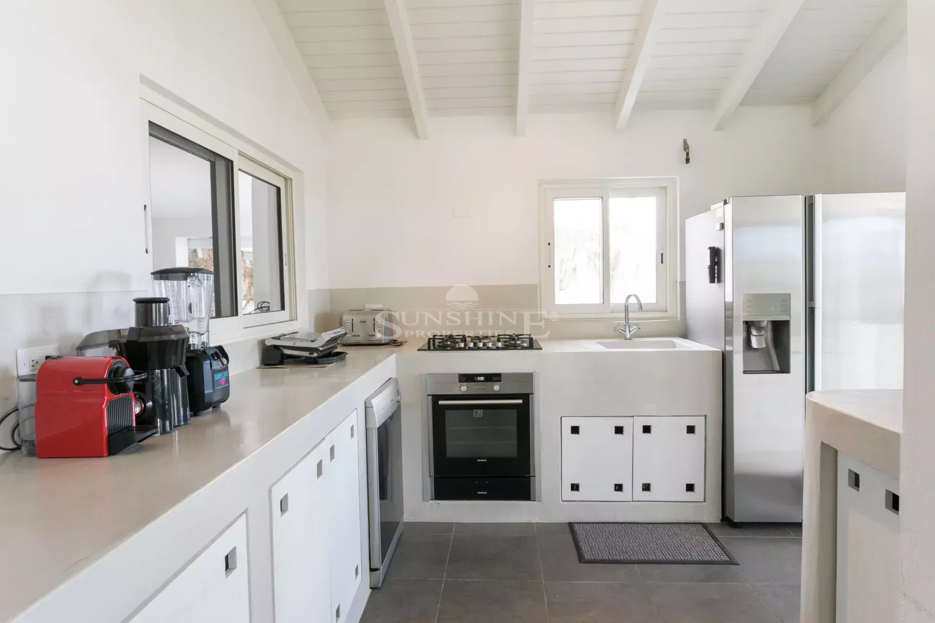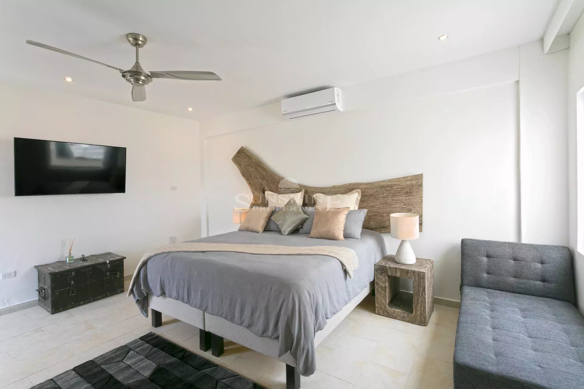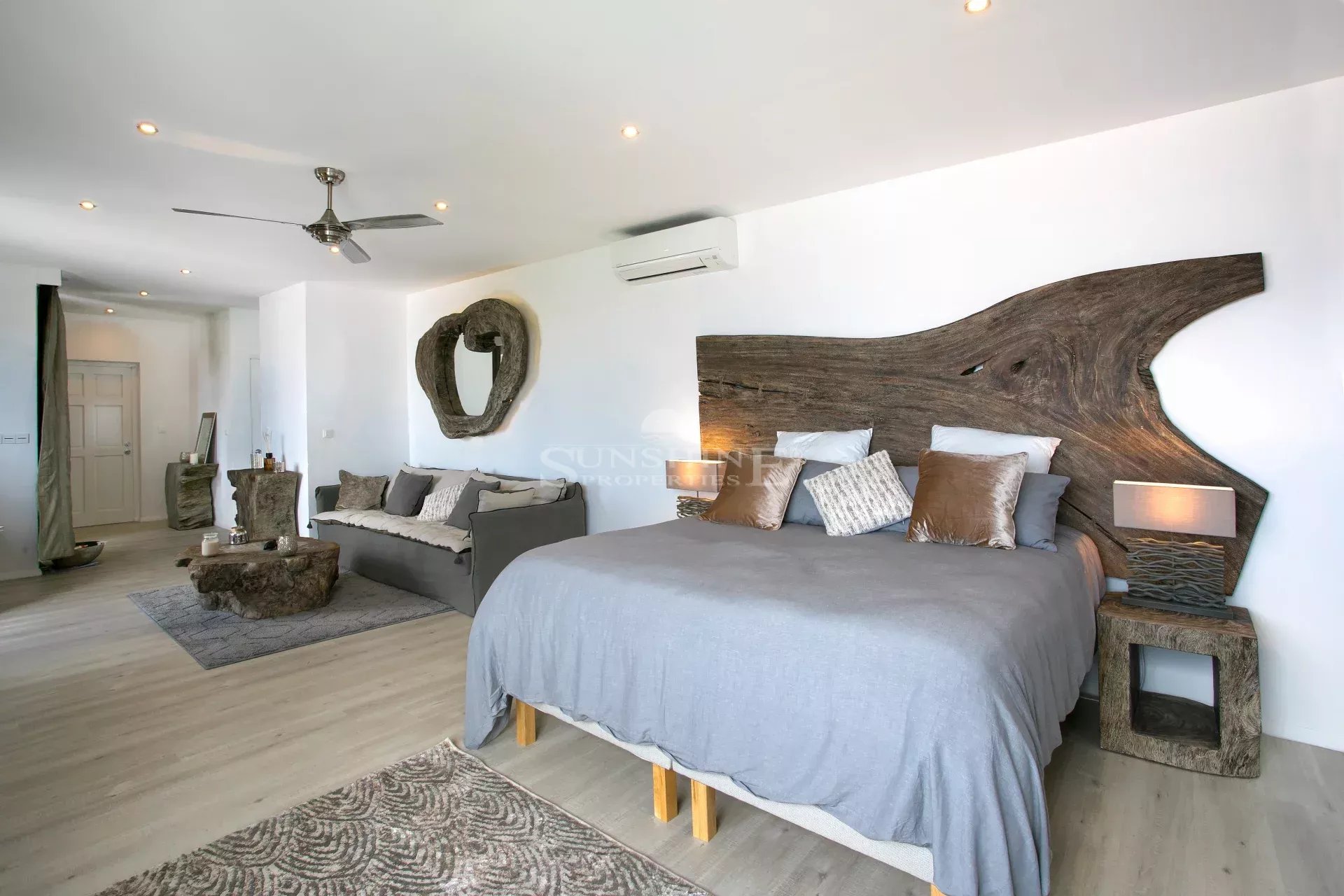 Inside, the villa offers a generous, resort-style layout with multiple airy living spaces, seamless indoor-outdoor flow. The home is currently configured for large-scale entertaining and family living, with luxury ensuite bedrooms and flexible guest accommodations (commonly arranged as six bedrooms, with additional suites available depending on use). A bright great room and dining area connect to well-equipped indoor and outdoor kitchens, ideal for hosting sunset dinners and laid-back Caribbean gatherings.