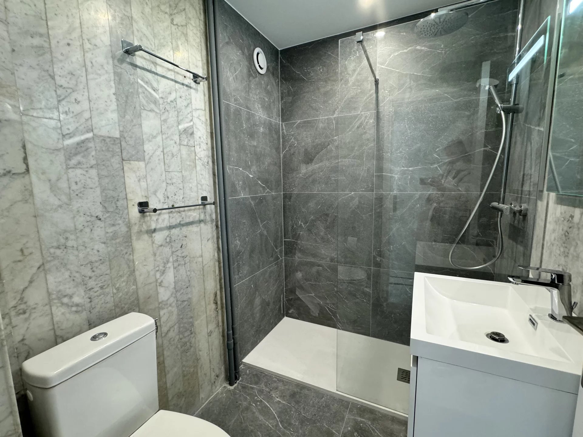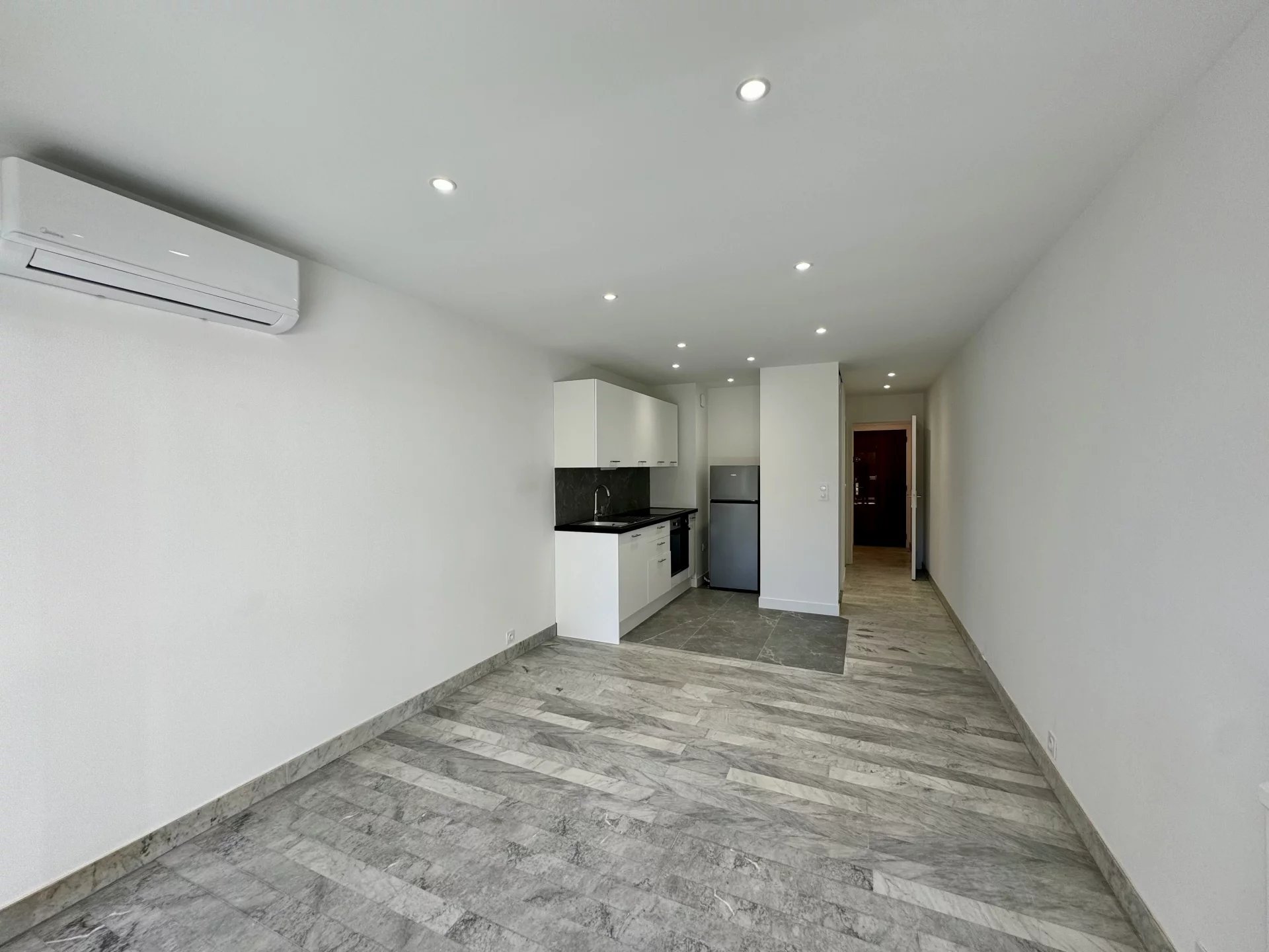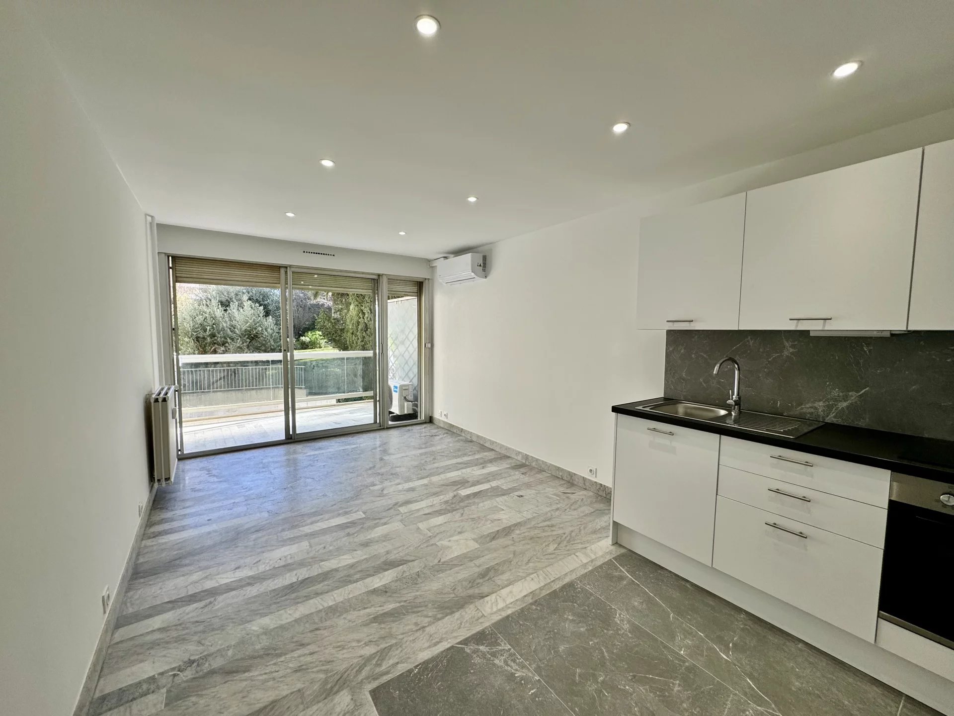 A Antibes Juan-les-Pins, à quelques minutes à pied des commerces et des plages, dans une résidence avec piscine et gardien, joli studio de 30 m2 entièrement rénové avec terrasse disponible à la location vide longue durée. Hall d'entrée avec placard, pièce principale ouvrant sur la terrasse donnant sur le jardin de la résidence, cuisine ouverte, salle de douches avec WC, petite pièce séparée pour coin nuit ou bureau. Climatisation et boitier fibre Location d'un garage en sous-sol possible en supplément : 95 € / mois