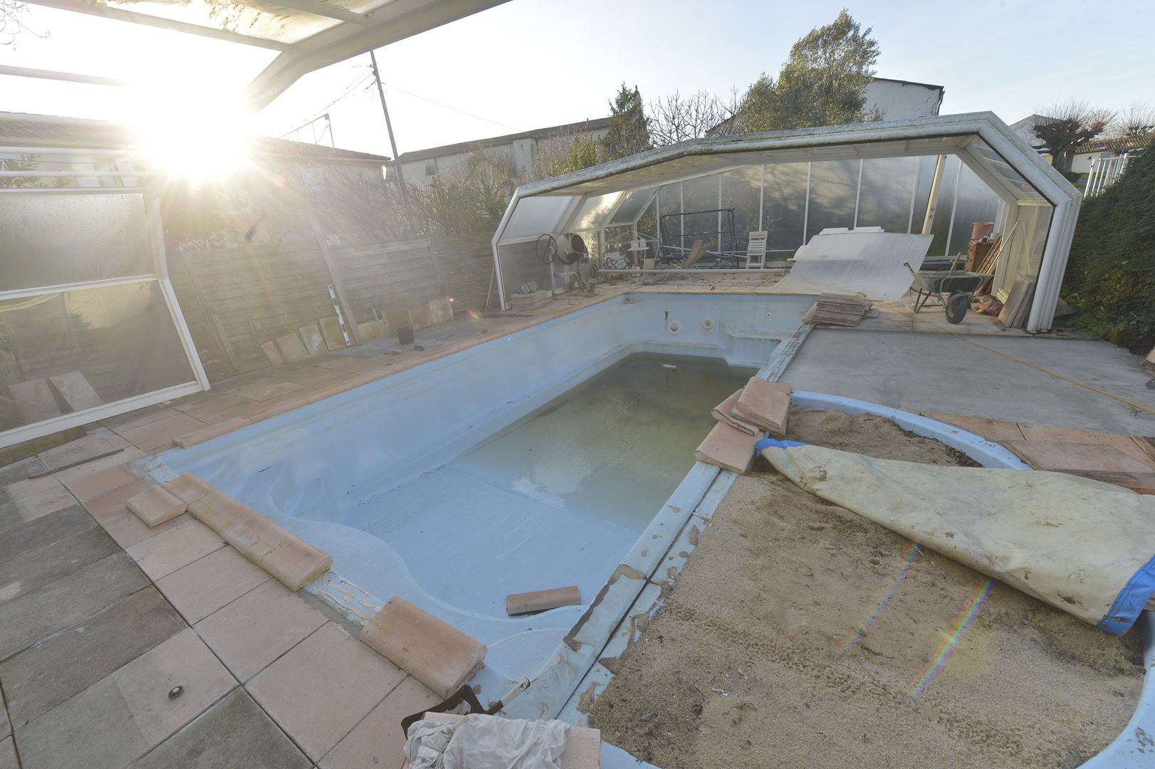 Cette maison est composée d'une belle entrée, un grand salon-séjour avec sa cheminée donnant sur la terrasse et vue piscine, une belle véranda, un bureau donnant sur le jardin, un coin toilettes-lavabo.