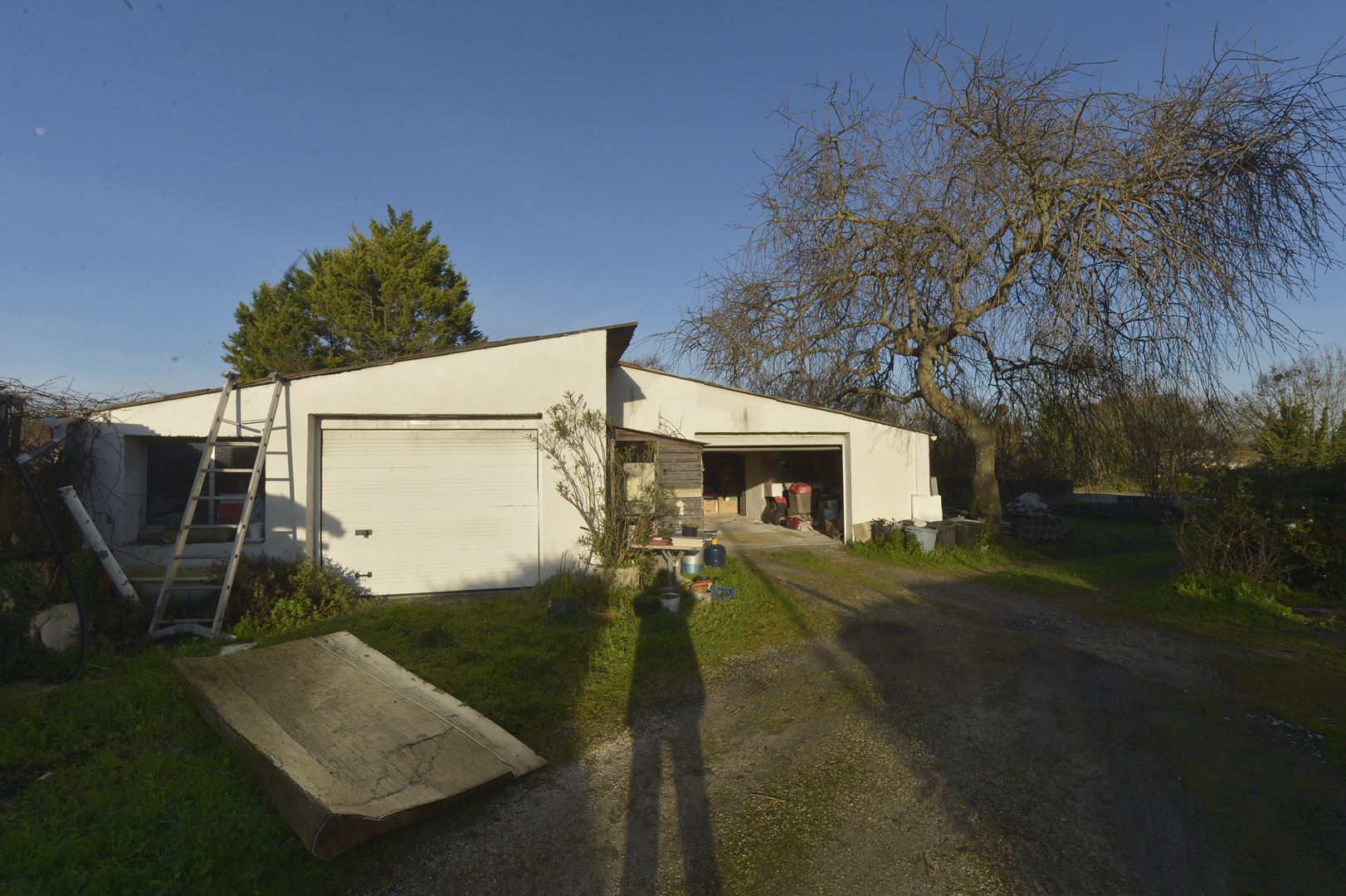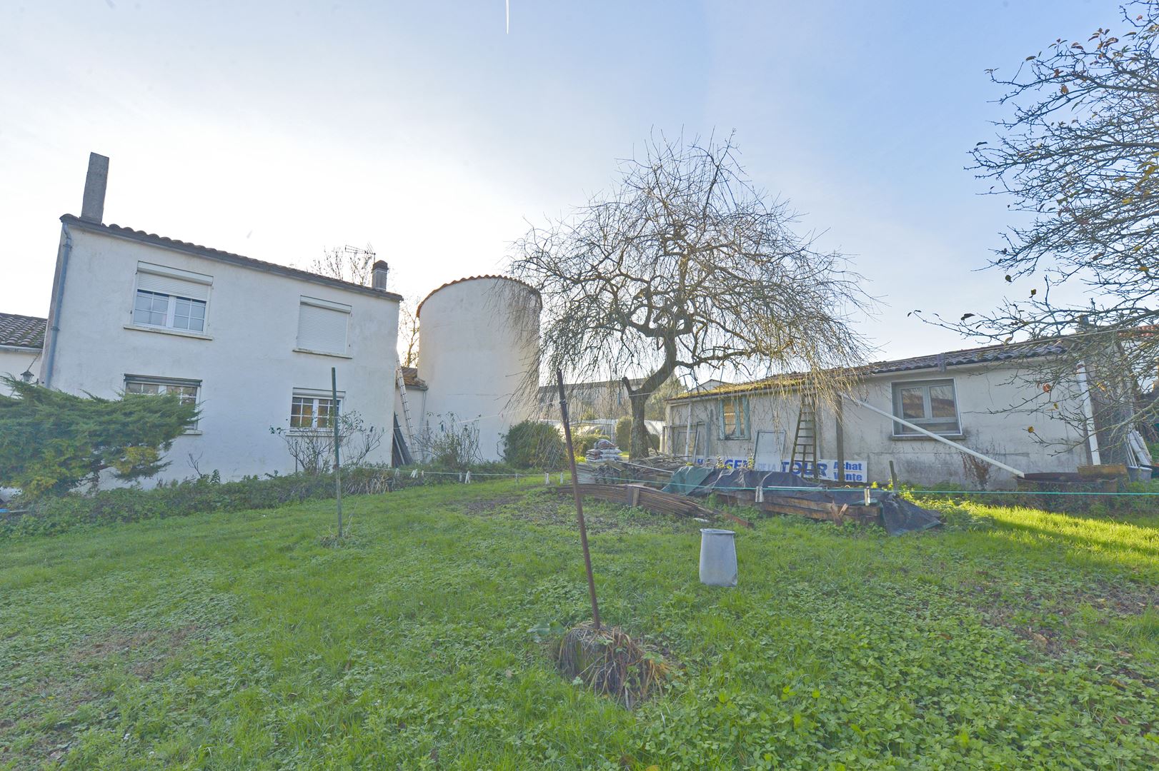 Le jardin est arboré d'arbres fruitiers et de beaux chênes, un portail automatique donnant accès aux 2 garages.
