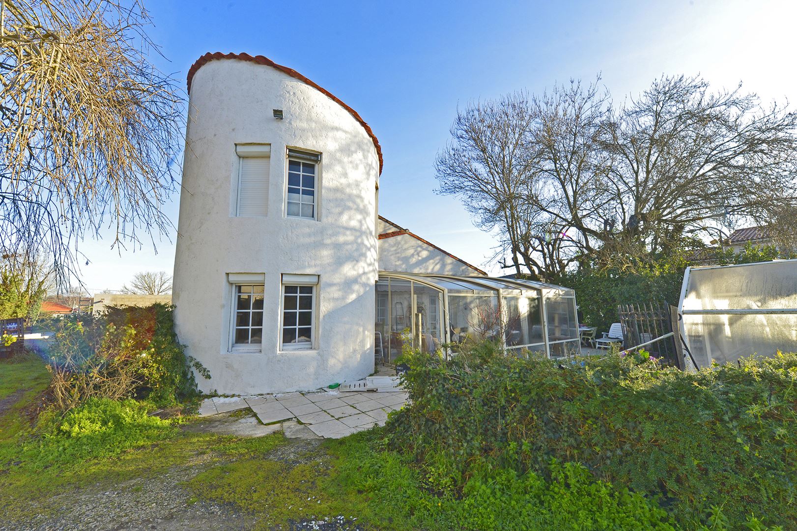 Maison avec sa tour dans le centre ville de Médis sur un terrain arboré de 1216 m2 avec piscine couverte.