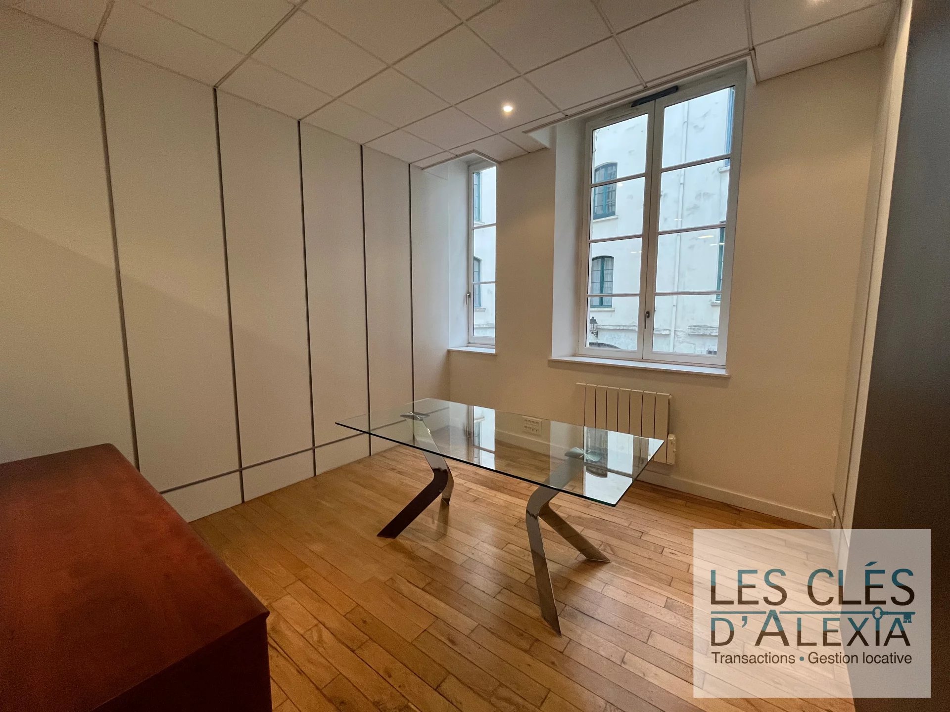 À louer, au cœur du 1er arrondissement de Lyon, Place Tolozan, un bureau de 63 m² offrant un cadre de travail alliant prestige et fonctionnalité. Situé dans un immeuble de caractère avec ascenseur et cour intérieure, cet espace rare se compose d’une grande pièce principale incluant l’accueil, d’une salle d’attente, de deux grands bureaux fermés, d’une cuisine et de sanitaires privatifs. Les locaux, en bon état d’usage, disposent de parquet, de faux plafonds, de convecteurs électriques ainsi que d’un câblage RJ45 permettant une installation rapide et efficace.