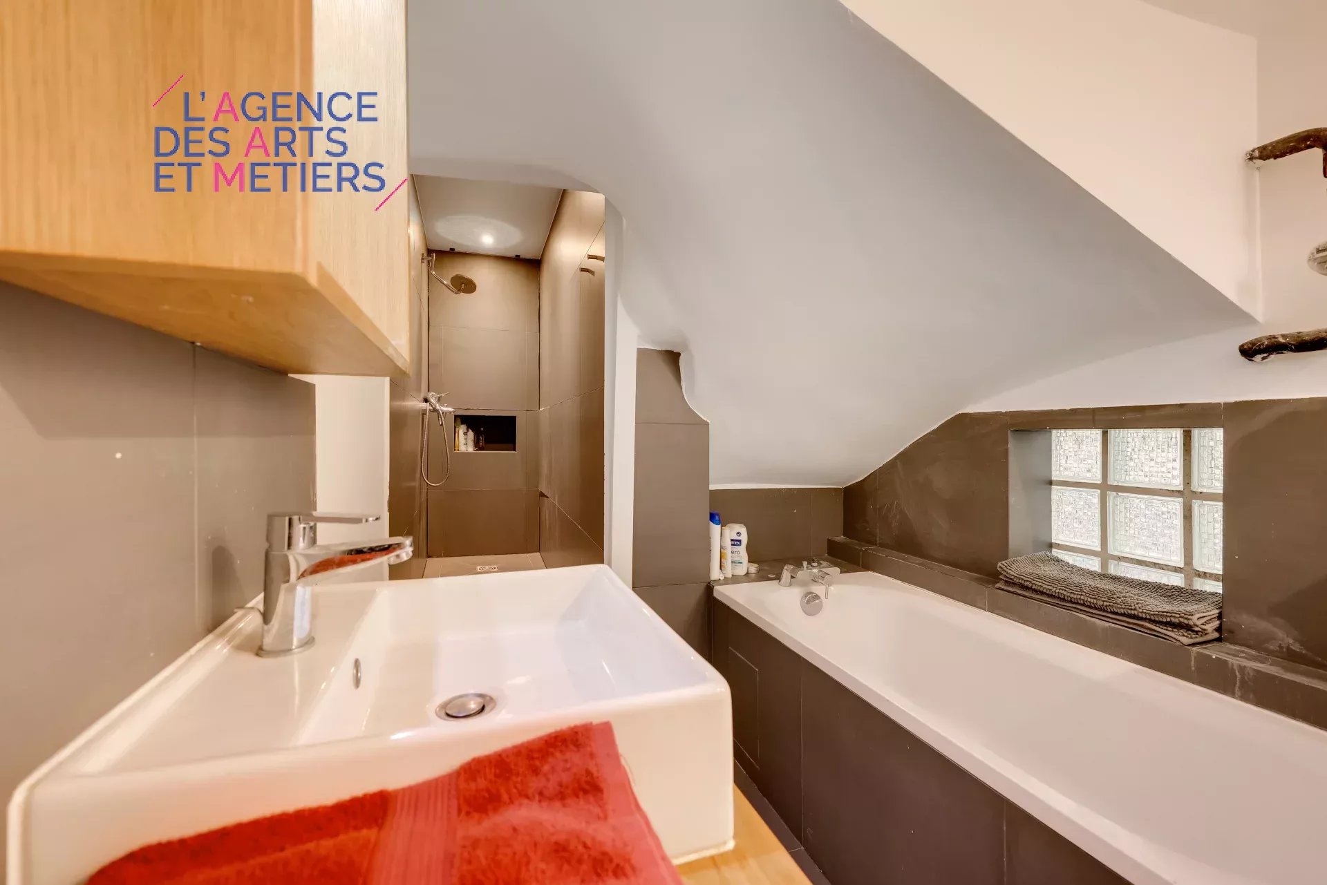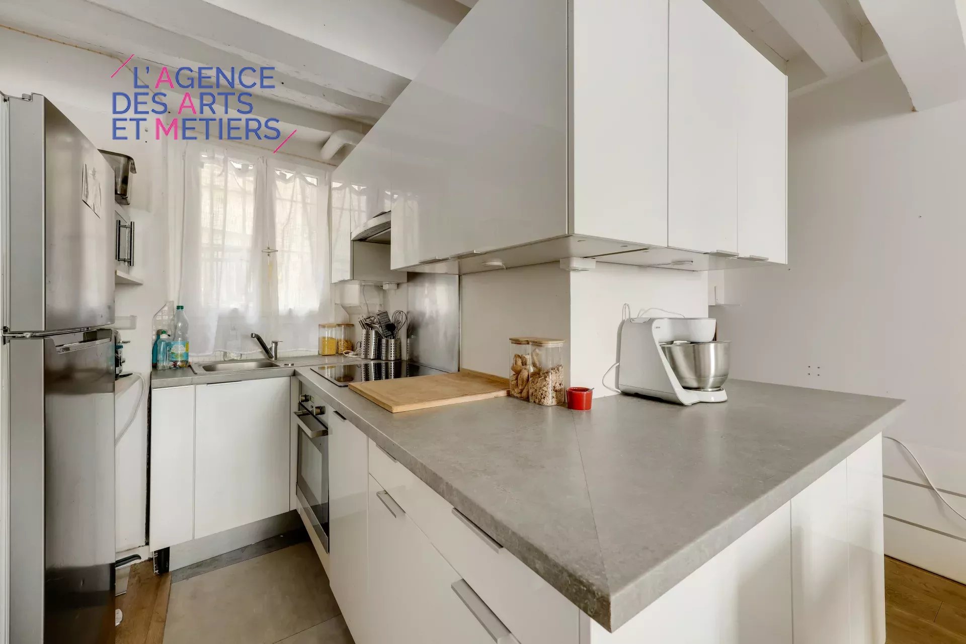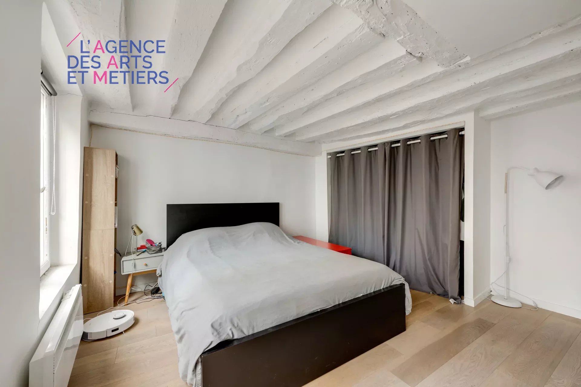 Au coeur de Paris, à la frontière de plusieurs quartiers, ce secteur Sud du 10ème arrondissement, est à deux pas de la Porte Saint Martin. Appartement 3 PIÈCES de charme avec une double exposition sur rue (OUEST) et cour (EST) comprenant une entrée, un grand séjour/cuisine américaine, deux chambres, une salle de bains avec baignoire et douche et un WC séparé. Poutres d'origine peintes en blanc, parquet au sol. Plusieurs fenêtres. Vis à vis éloigné. Double vitrage et DPE E.