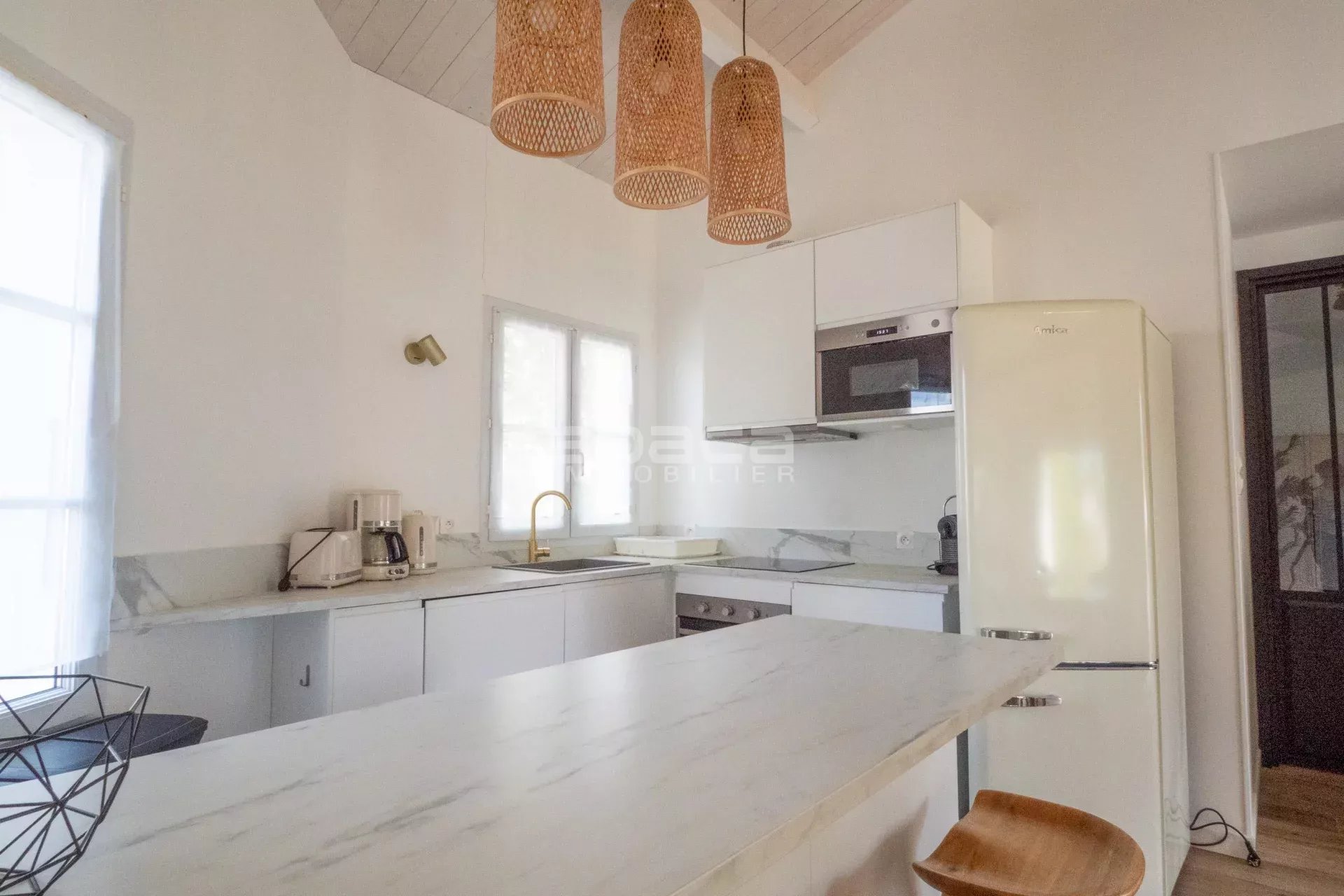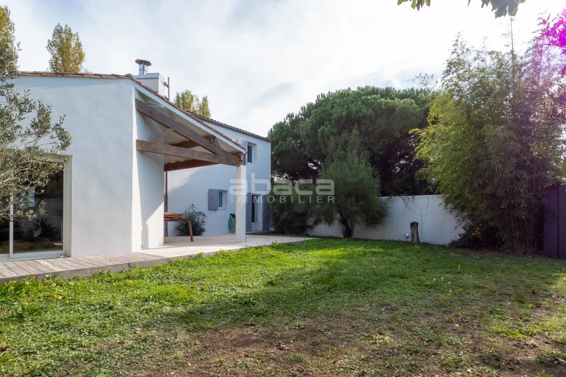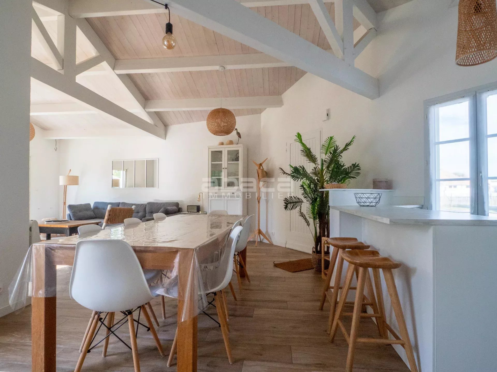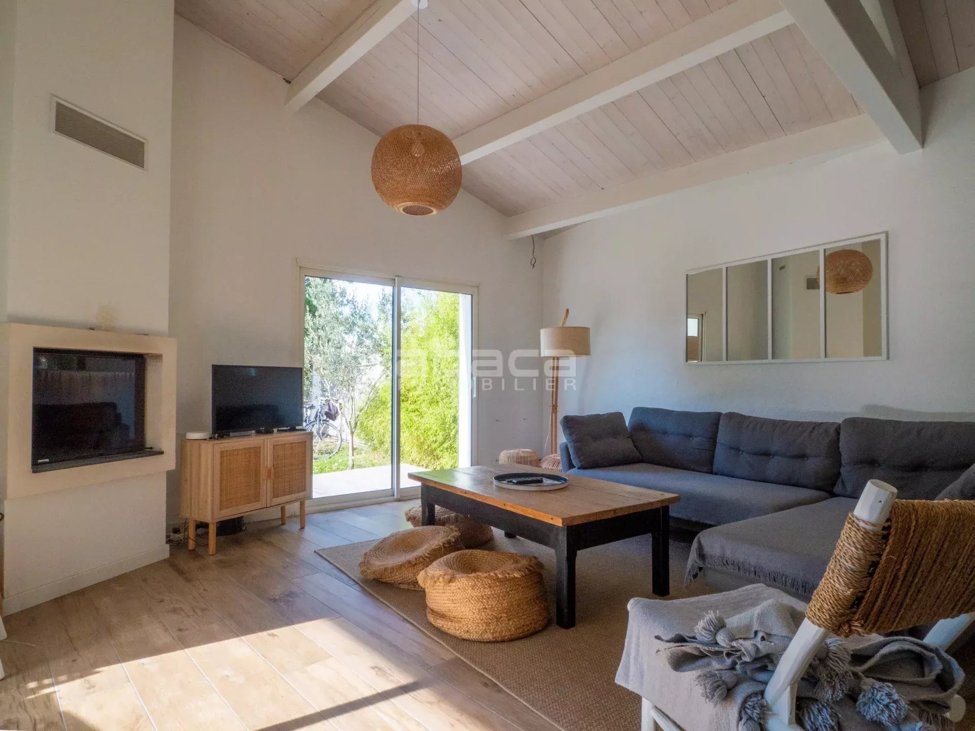 A proximité des commerces et des plages, jolie maison rénovée composée d'une pièce de vie lumineuse donnant sur le jardin, cuisine ouverte équipée, 4 chambres, 2 salles d'eau. Jardin ensoleillé avec terrasse et préau.
