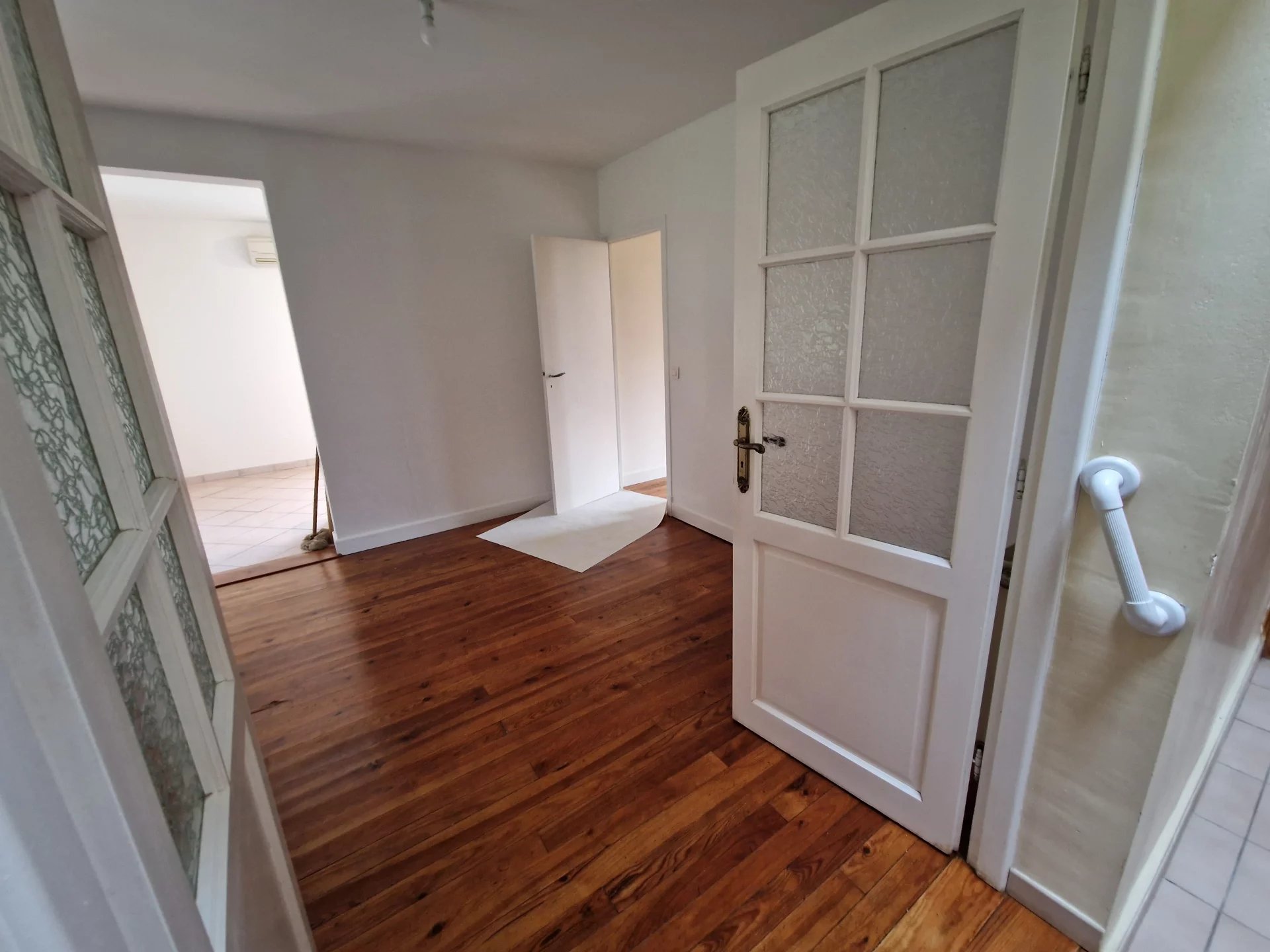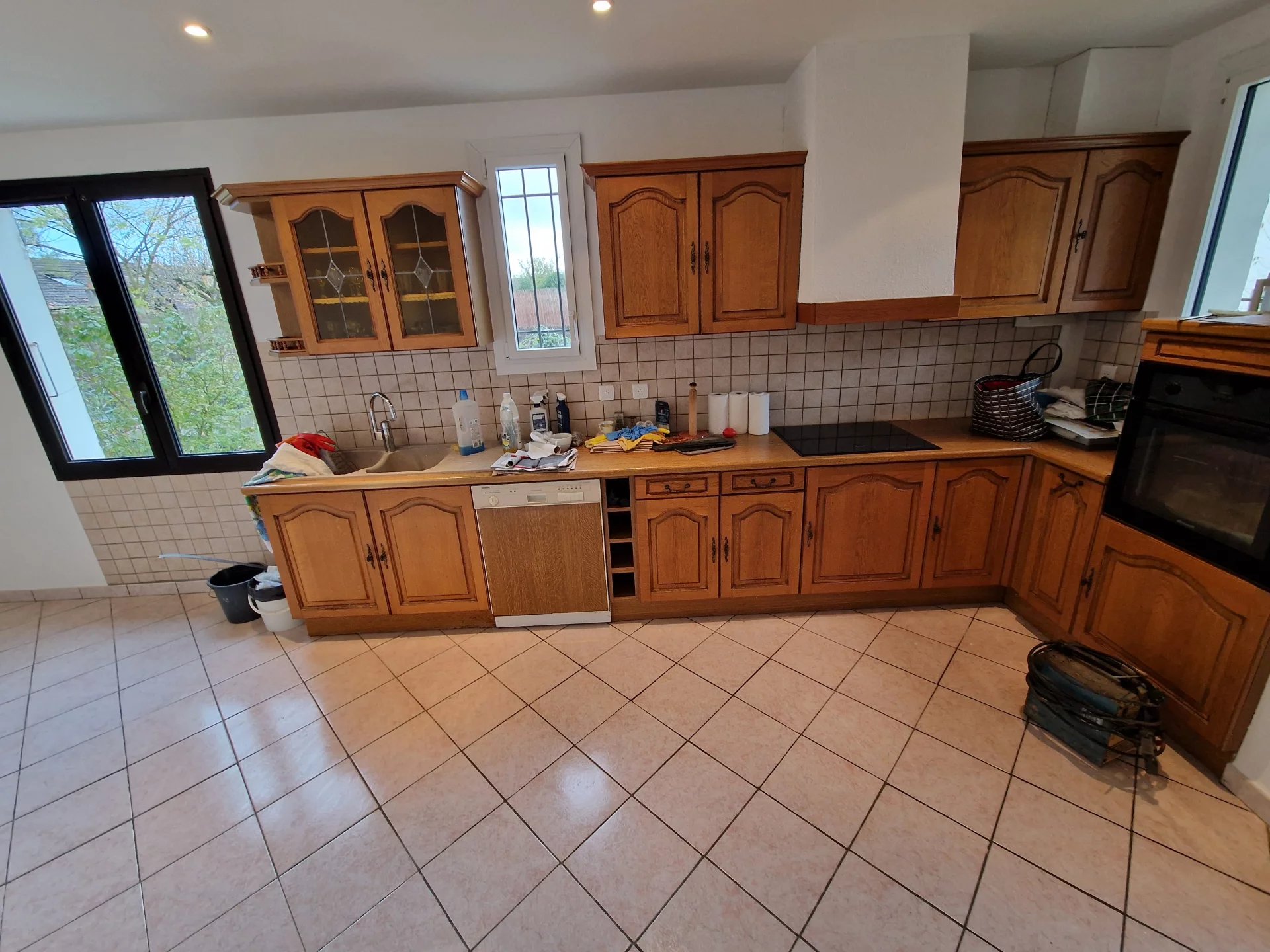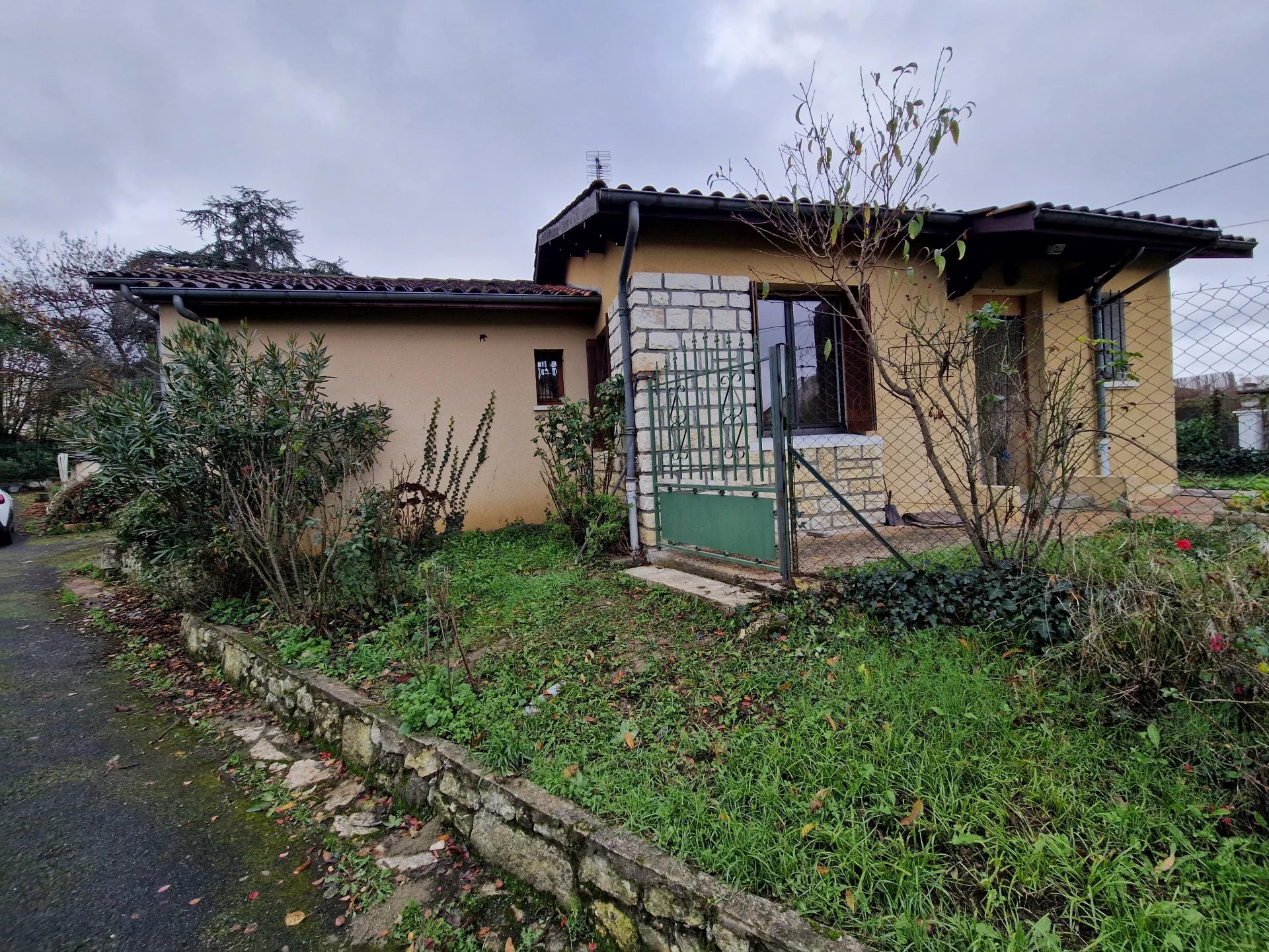 Maison de plain pied Type 4 d'environ 102m² située à deux pas du centre basse ville Cuisiné équipée avec insert et clim réversible, salon, véranda avec clim, 2 chambres, salle d'eau, wc indépendant, chaufferie. Chauffage central au fioul avec chaudière neuve. Grand jardin d'environ 3000m² avec arbres fruitiers et deux garages + atelier.