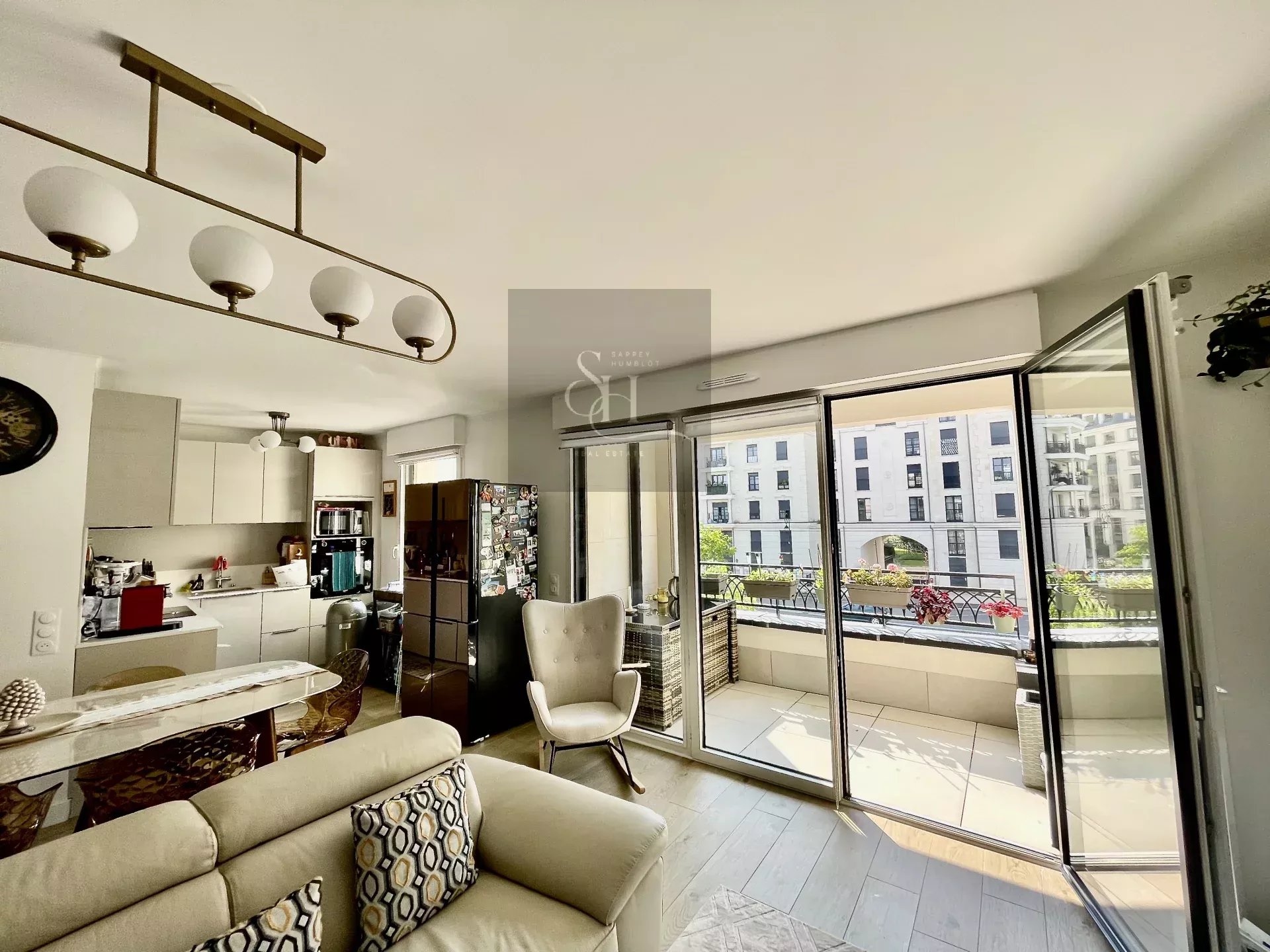 Ce bien dispose d'une très agréable pièce de vie de 38 m2 exposées Sud , avec sa cuisine américaine aménagée et équipée donnant sur un balcon dinatoire de 4,60 m2. La partie nuit comprend 3 chambres avec dressing, 2 salles de douche et 2 toilettes séparés. Appartement fonctionnel en excellent état avec de nombreux rangements, des prestations actuelles haut de gamme et des matériaux de qualité, double vitrage, volets roulants électriques, appartement fibré et disposant d'une alarme. Le chauffage collectif, l'eau chaude et l'eau froide sont compris dans les charges mensuelles. Plan avec une distribution idéale offrant une belle qualité de vie dans ce nouveau quartier proche du bois et de la place du Panorama avec ses airs de jeux et son parc et son lac. Un grand box de 18 m2 au sous-sol avec accès direct à l'appartement est compris dans ce lot. Local sécurisé à vélos et poussettes au 1er sous-sol dans l'immeuble. Local à motos au sous-sol.