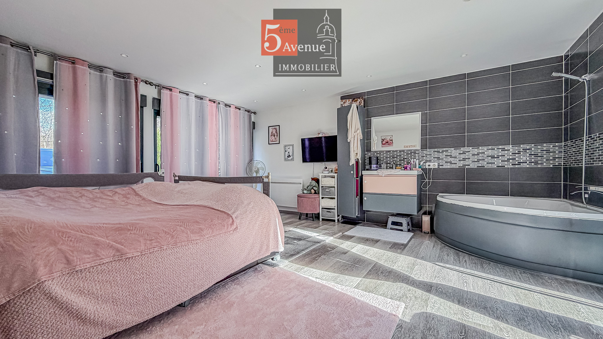 Le niveau se complète d'une grande chambre dotée d'une baignoire d'angle, d'un bureau et d'une buanderie avec accès au sous-sol partiel