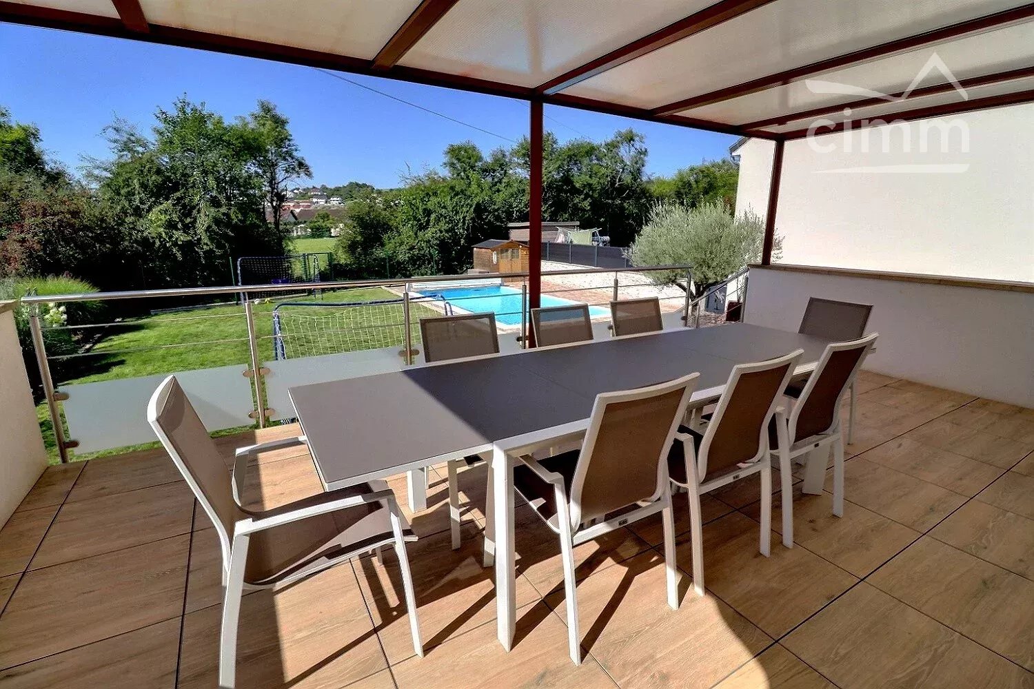 Vous pourrez accéder depuis le séjour à une vaste terrasse couverte vous offrant une vue dégagée sur l’arrière du bien ainsi que d’un accès direct au jardin.