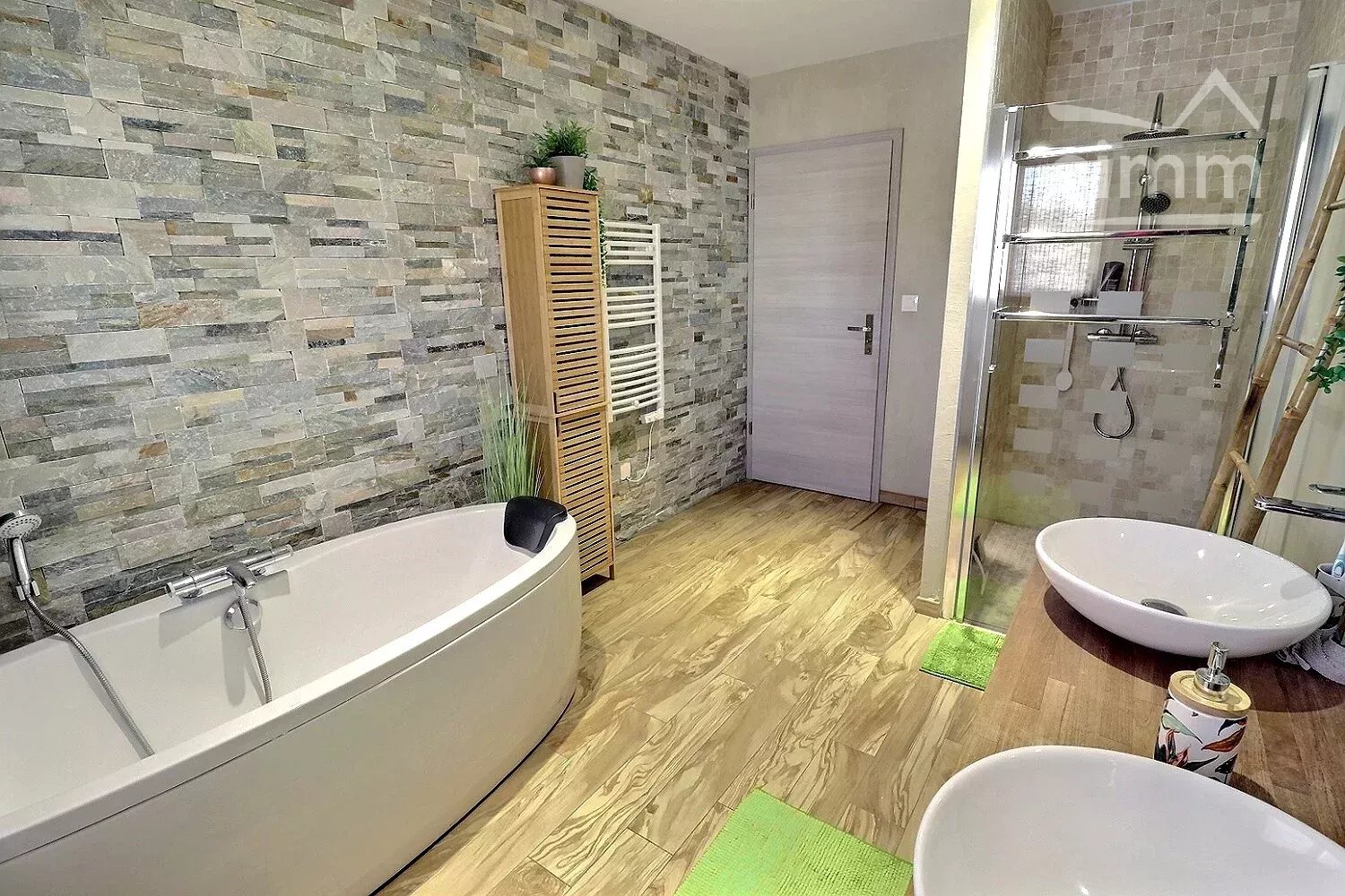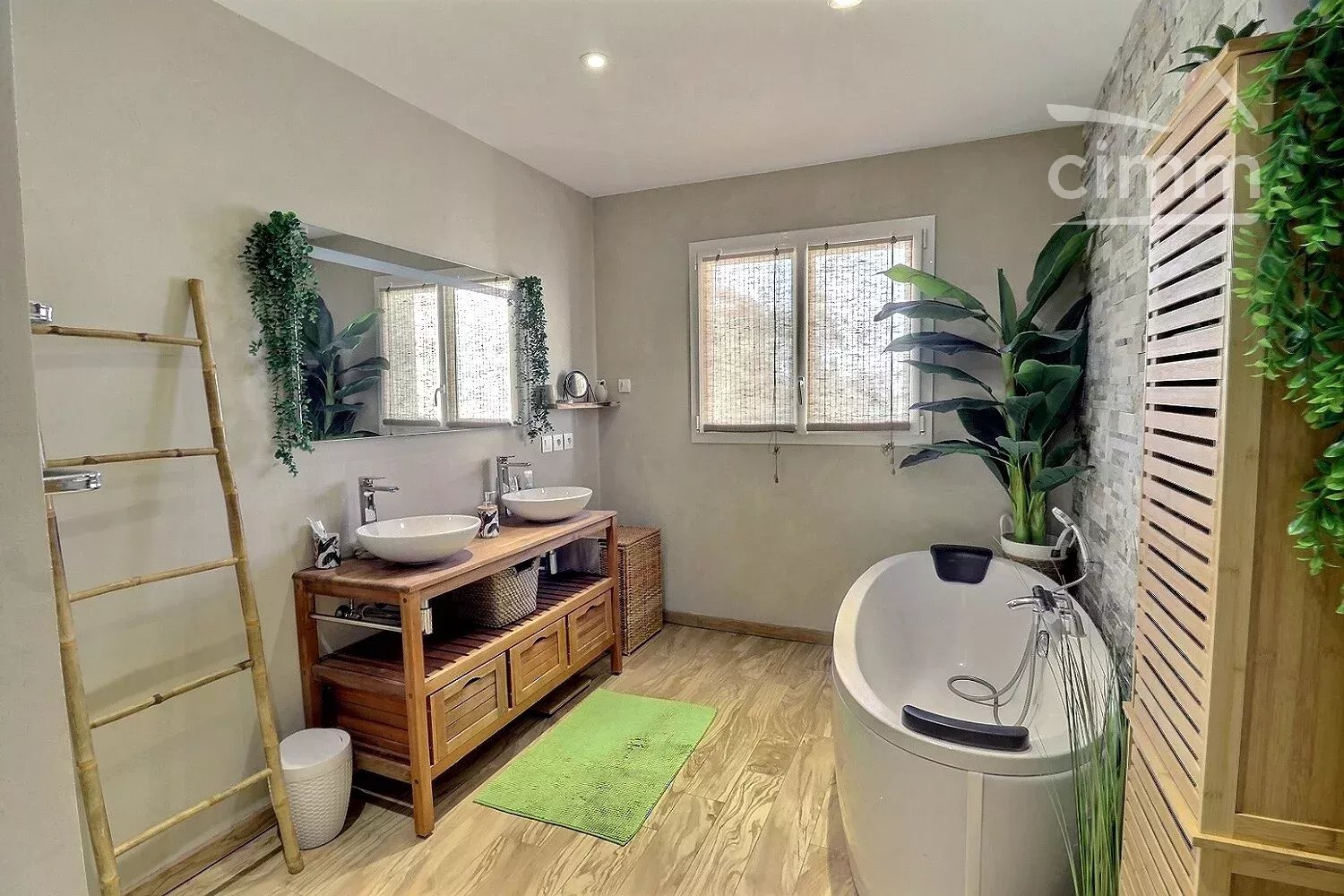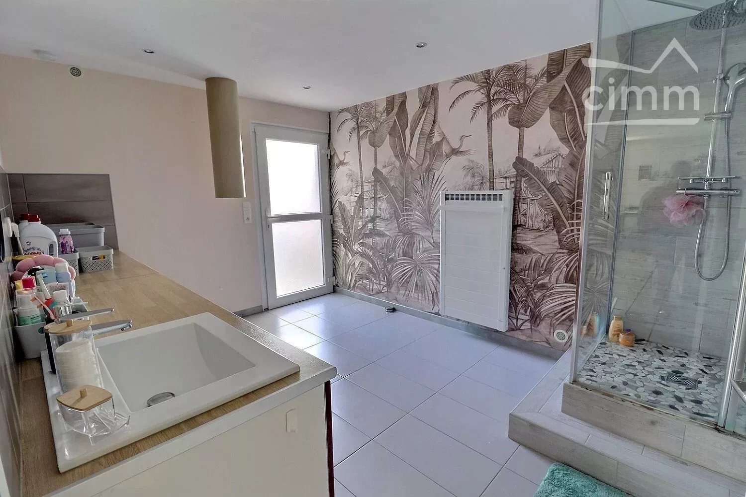 Une salle de bain complètera ce niveau, elle est équipée d'une douche à l'italienne suivie d’une baignoire dans un décor tropical ainsi que d’une toilette indépendant.