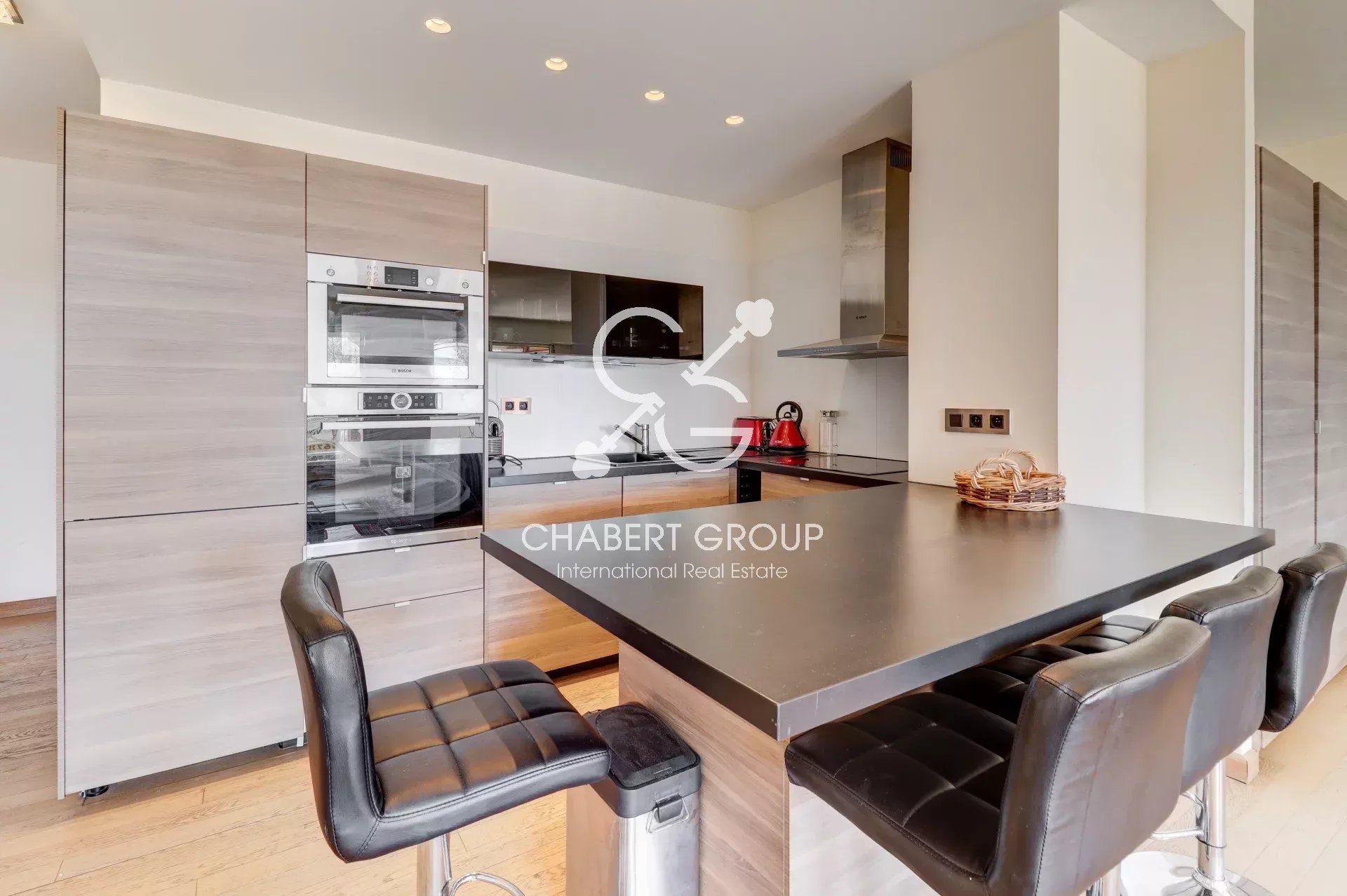 L'appartement est vendu avec une place de stationnement en sous-sol (avec ascenseur pour véhicule) ainsi qu'une cave, tous deux incluses dans le prix.