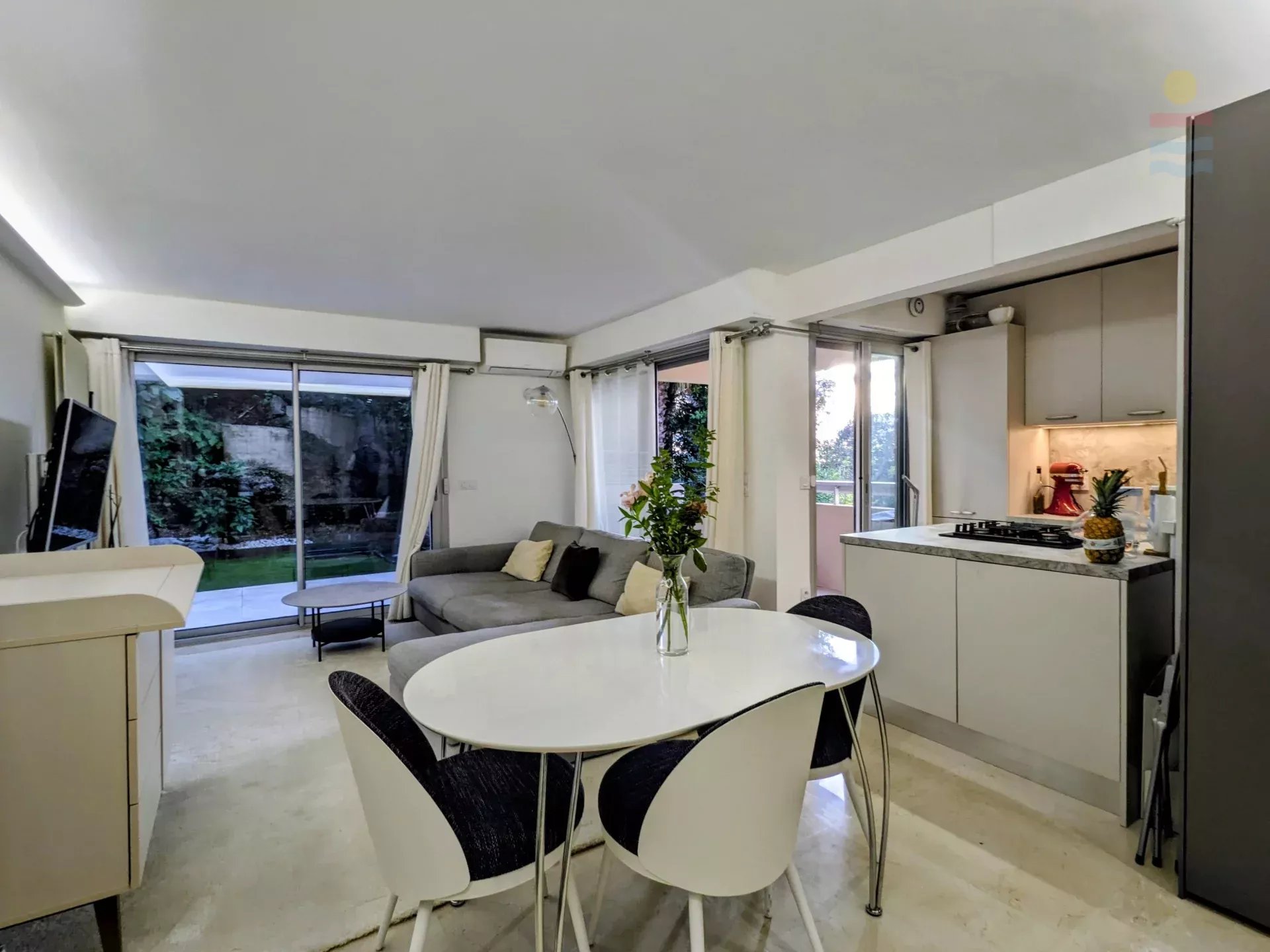 Dans l’un des quartiers les plus recherchés de Nice, au cœur d’une résidence de standing parfaitement entretenue et dotée d’un patio intérieur, découvrez un appartement entièrement rénové avec des prestations haut de gamme. Ce grand deux-pièces de 50,42 m² loi Carrez offre une atmosphère unique, presque suspendue, ouvrant sur un jardin d’environ 50 m² ainsi qu’un balcon-terrasse exposé au sud-ouest, baignant l’ensemble de l’appartement d’une belle luminosité. Le séjour accueille une cuisine aménagée et équipée, et bénéficie d’une vue dégagée sur la ville et un aperçu mer latéral. La chambre, équipée d’un placard intégré, donne également accès à la terrasse. Une salle de douche avec toilette complète le confort de ce bien. La rénovation vient d’être achevée, avec un niveau de finition remarquable : climatisation réversible intégrée, domotique, système de sécurité renforcé, caméras de surveillance. L’ensemble offre un cadre de vie contemporain, élégant et parfaitement optimisé. Le bien est proposé avec une cave et un grand garage en sous-sol, indissociables et en sus du prix affiché. Les informations sur les risques auxquels ce bien est exposé sont disponibles sur le site Géorisques : http://georisques.gouv.fr
