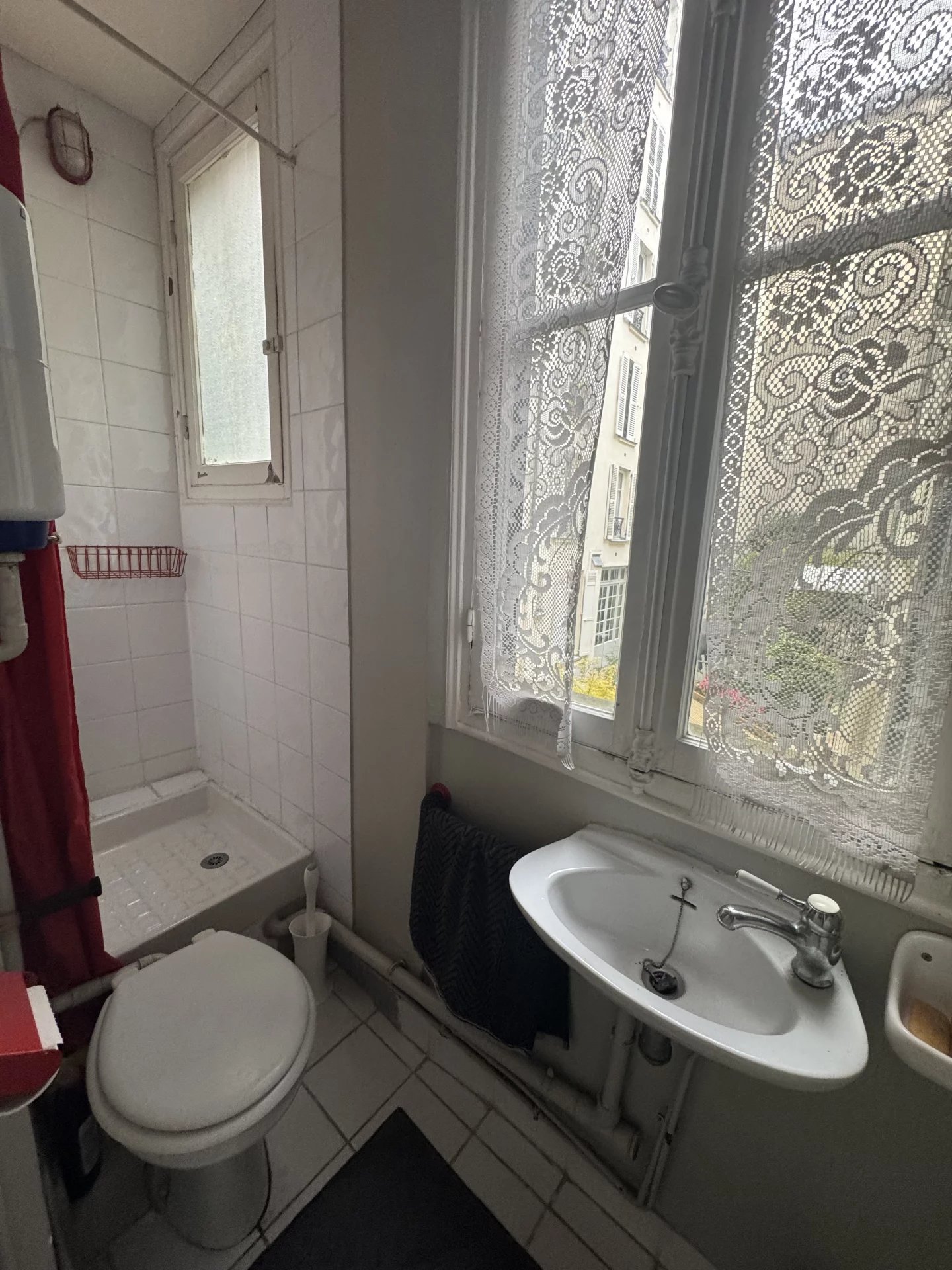 Metro Laumiere: au 1er étage sur cour, un appartement de trois pieces de 42 m² à rénover. L'appartement est composé d'une petite entrée desservant une cuisine séparée, une salle d'eau avec WC, un salon et deux chambres. Travaux à prévoir. Une cave.