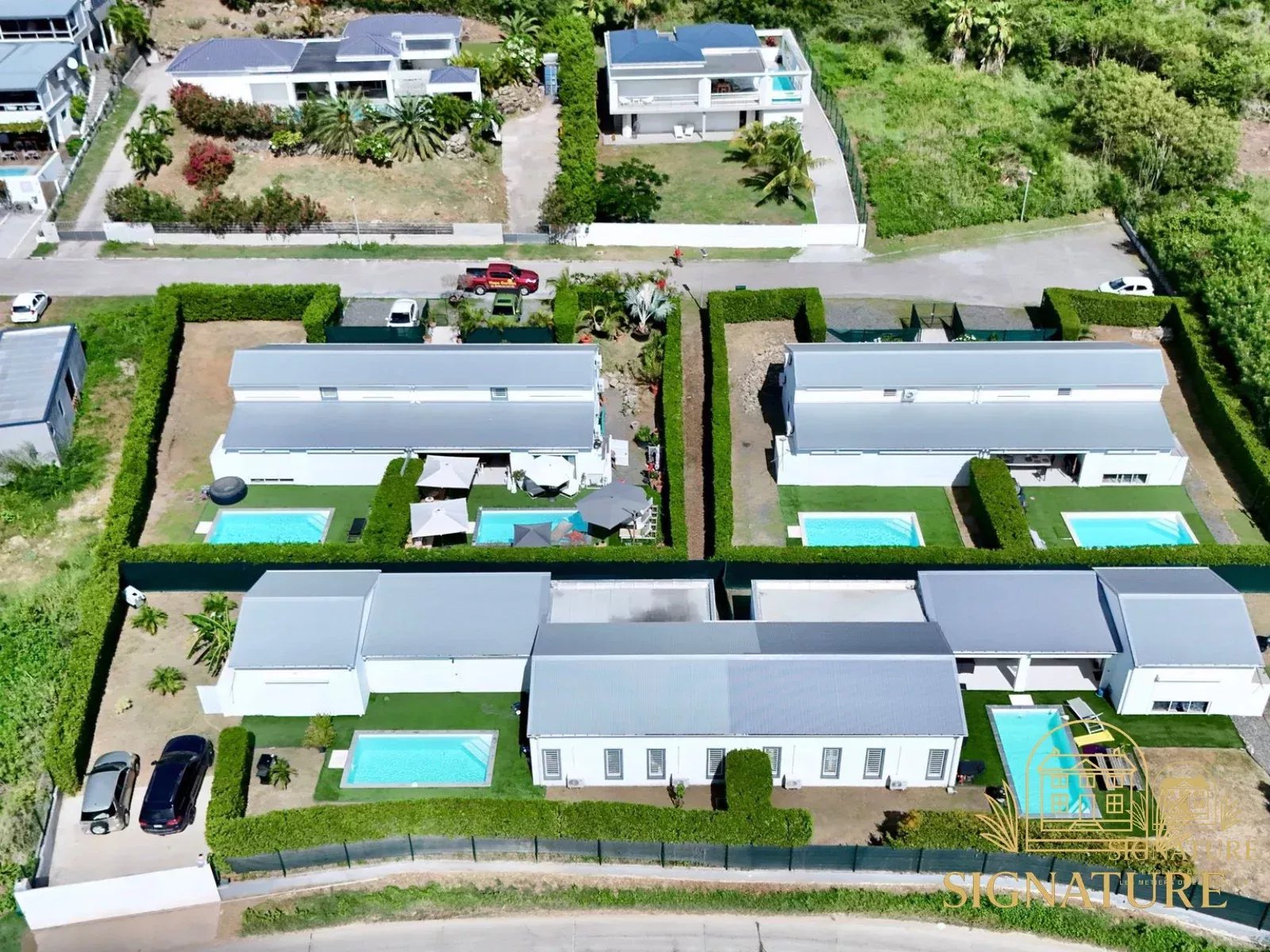 À Cul-de-Sac, dans un quartier résidentiel calme et recherché, découvrez quatre superbes maisons T4 neuves Alliant élégance contemporaine, confort et intimité, elles offrent un cadre de vie idéal à proximité immédiate de Hope Estate, de la plage d’Anse Marcel et de l’aéroport de Grand Case. Ces villas se déclinent en deux configurations : - Villas de plain-pied de 102 m² avec 32 m² de terrasse couverte - Villas en duplex de 105 m² avec 17 m² de terrasse couverte Chaque bien bénéficie d’une conception soignée : un grand séjour lumineux ouvrant sur le jardin et la piscine privée, une cuisine américaine entièrement équipée, trois chambres confortables dont une suite parentale, deux salles de bains, ainsi que la climatisation dans toutes les pièces. Deux places de stationnement privatives complètent chaque maison. L’extérieur offre un espace privé avec piscine et jardin, laissant libre cours à vos envies d’aménagement. Chaque maison est également équipée d’une citerne et couverte par la garantie décennale obligatoire. Situées dans un secteur en plein essor, à proximité des plages, des commerces, des écoles et des restaurants. Elles conviendront aussi bien à une résidence principale qu’à un investissement locatif saisonnier à fort potentiel. Prix de vente par maison : 650 000 € FAI Ref :1815