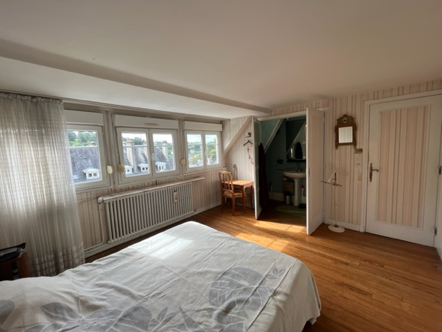 FOLLIOT IMMOBILIER VOUS PROPOSE, RARE...En plein centre de VIRE, aux pieds des commerces et d'une école, dans un immeuble en copropriété avec seulement deux propriétaires et un syndic bénévole sans charge de copropriété, au 2ème étage, appartement T5, 4 chambres en triplex, lumineux, à rafraîchir de 112 m² habitables, grande cave de 11.45 m² au sous-sol, comprenant : - au deuxième étage : une entrée de 6.87 m² avec un débarras, un agréable séjour/salon de 33.25 m² avec cheminée et parquet massif, une cuisine aménagée/équipée de 8.6 m², salle de bains de 6.45 m², débarras, wc. - au troisième étage : trois chambres (7.25 - 13.75 - 17.40 m² avec placards et salle d'eau privative/wc de 2.63 m²), dressing de 2.6 m². - au dessus : une chambre avec son bureau ouvert, placards. Huisseries PVC double vitrage, volets PVC manuels. Chauffage gaz de ville, chaudière à condensation de 2022 avec radiateurs en fonte. Taxe foncière : 1 108 euros Loyer potentiel de 9 000 euros dans le cadre d'un investissement locatif. Qu'il s'agisse de classe énergétique (188 kWh/m²/an) ou de classe climat (de l'ordre de 39 Kg CO2/m²/an), la notation est la même : D. Le montant estimé des dépenses annuelles d'énergie pour un usage standard s'élève entre 1 440 euros et 2 000 euros. Les informations sur les risques auxquels ce bien est exposé sont disponibles sur le site Géorisques : www.georisques.gouv.fr. Prenez contact avec votre agence immobilière Cabinet FOLLIOT - Vire pour une première visite de cet appartement en vente. Copropriété de 5 lots - dont 2 lots habitation.(Pas de procédure en cours).