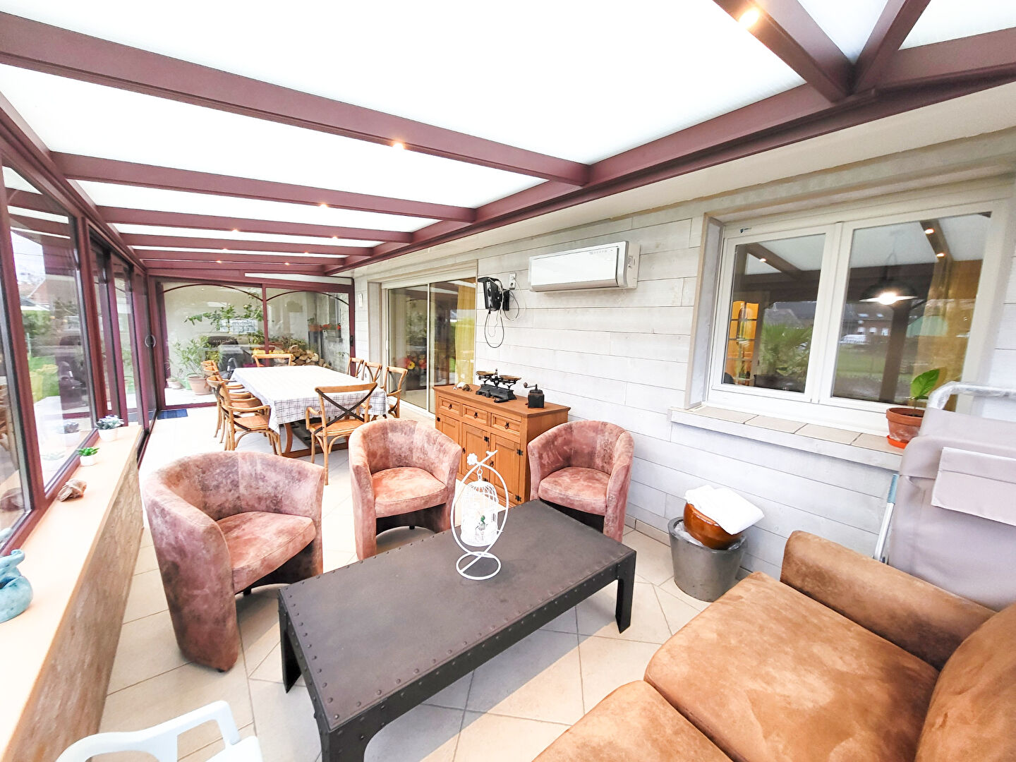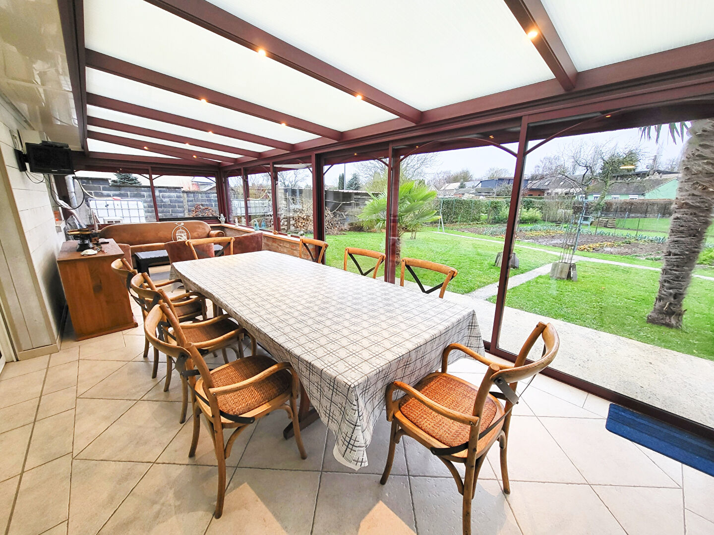 3 kms de CAUDRY Pavillon plain pied individuel Zéro travaux Ent. sur couloir, un salon-sal. à m. avec insert bois, un séjour sous véranda chauffée, une cuisine équipée, un w.c., une sdb avec douche et baignoire, une buanderie-chaufferie, 3 chambres. C/C gaz, portail à crémone neuf, terrasse, 2 grands garage 4-5 v, grenier, terrain clos en pelouse et jardin. Prix : 249 800 euros honoraires vendeurs