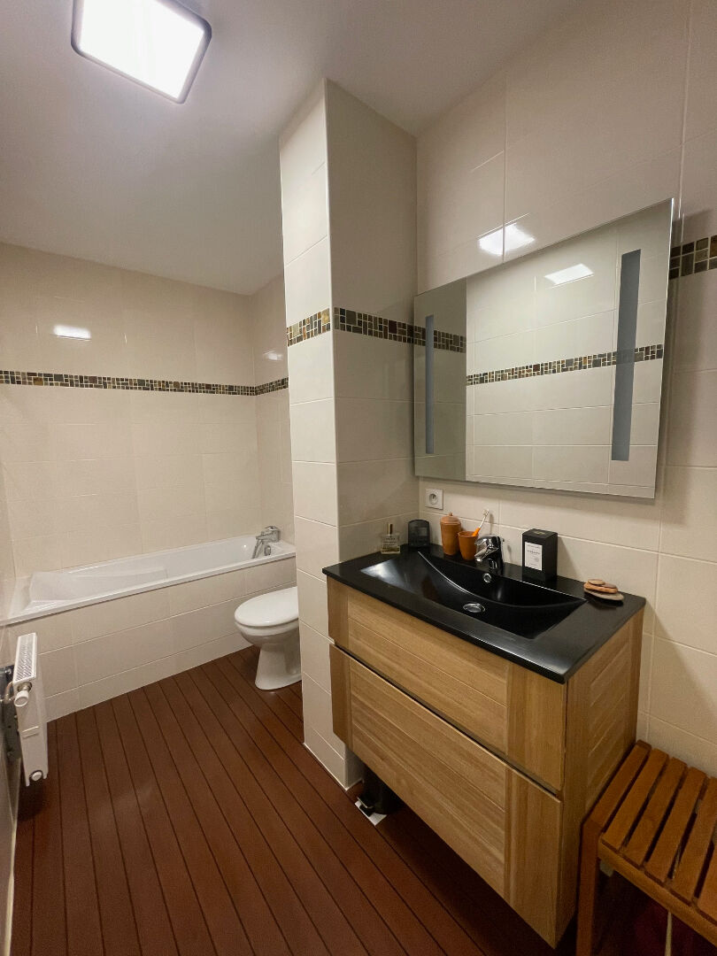 Dans une résidence sécurisée, au calme à proximité de toutes les commodités. Magnifique duplex de type 3 de 62 m², avec salon séjour, cuisine A/E , 2 chambres dont 1 au rez de chaussée, salle d'eau et salle de bains attenantes à chacune. Aucun travaux à prévoir. Chauffage gaz individuel. Place de parking privée, cave et local à vélos. Charges annuelles 1812 euros.