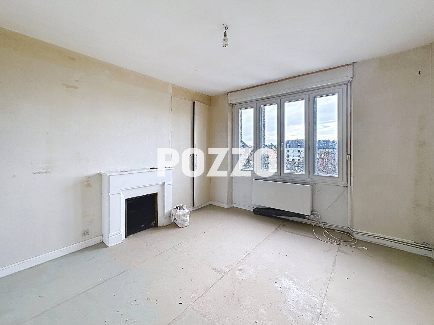 Centre ville d'AVRANCHES, situé au deuxième étage d'une petite copropriété, avec jolie vue dégagée, appartement d'environ 51 m² à rénover offrant une jolie vue dégagée comprenant : entrée, salon, cuisine, 2 chambres, salle d'eau et WC avec plateau à aménager au dessus (60 m² environ) Une cave en sous sol.