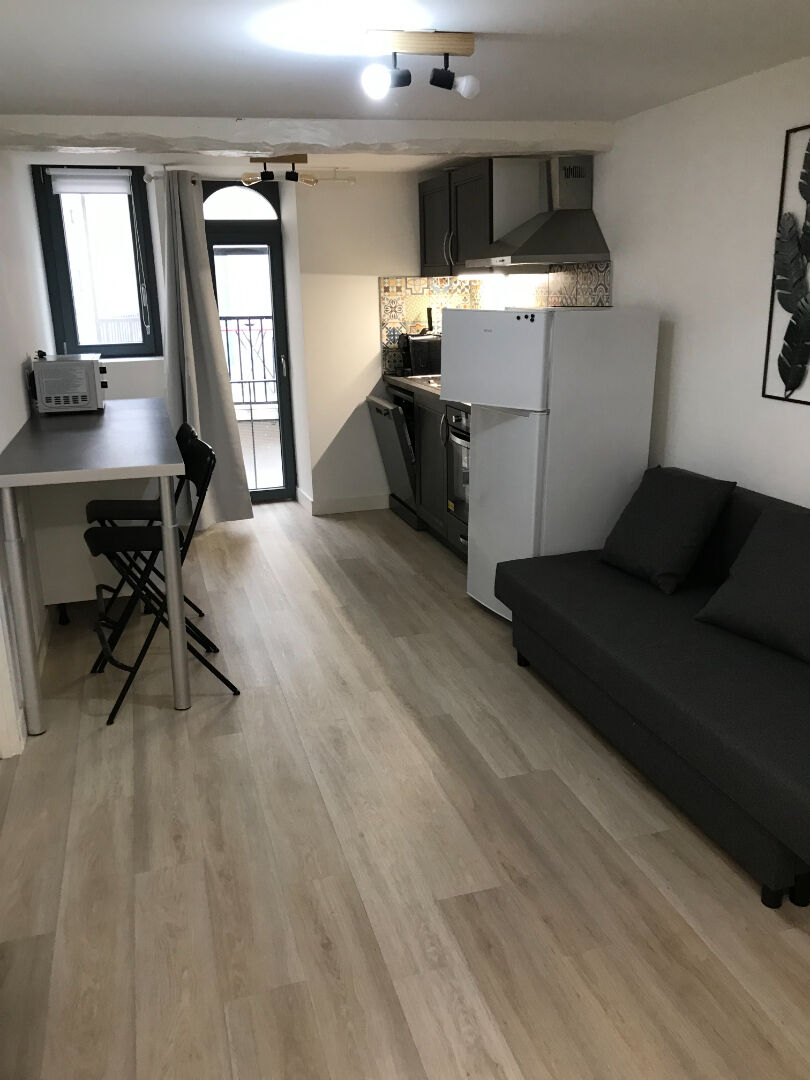 Au centre ville de Tournus, appartement T1 bis refait à neuf et meublé comprenant cuisine entièrement équipée ouverte sur pièce de vie (canapé lit, télévision), salle d'eau avec machine à laver, un espace chambre avec un lit double et rangement. Chauffage individuel électrique par inertie fluide. Un local privatif. Un balconnet. A voir absolument.