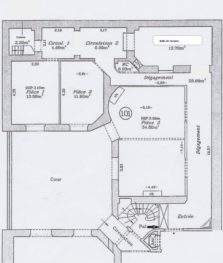 PORTE DAUPHINE/PORTE MAILLOT. RUE MARBEAU. Dans un immeuble haussmannien bien entretenu avec gardien, un espace de bureaux pour professions libérales de 117,70 m2 carrez en rez-de-cour offrant un accueil/salle d'attente, 4 bureaux, une salle de réunion, une cuisine avec une trémie accédant directement à la cave, sanitaires. Parquet en point de Hongrie, cheminée, hauteur sous plafond de 3,10 m. Métro Porte Dauphine (L2), Porte Maillot (L1), RER C avenue Foch. Copropriété de 24 lots principaux. Charges annuelles de 4.488 euros. Prix du bien 1.400.000 euros + 3,6 % d'honoraires agence à la charge de l'acquéreur, soit 1.450.000 euros. Contact direct 0652740518 Muriel Garnreiter (E.I) muriel@rez-de-chaussee.com RSAC 2018AC00169 Copropriété de 123 lots - dont 24 lots habitation.(). (RDC) Muriel GARNREITER (EI) Agent Commercial - Numéro RSAC : - .