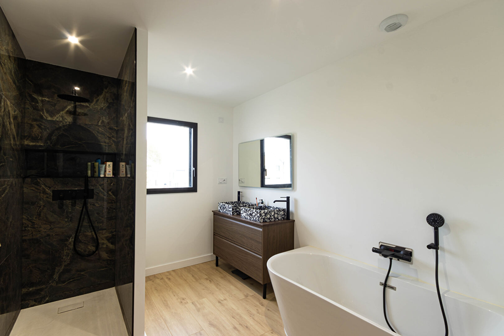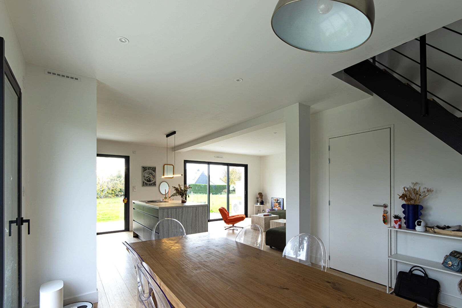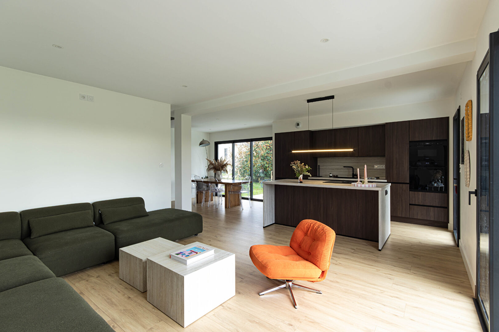 Lamotte Transaction vous présente, à La Chapelle-des-Fougeretz, une maison récente de plus de 102 m², idéalement située à seulement 1 km du centre. Posez vos valises dans cette maison chaleureuse, dotée d'une superbe pièce de vie baignée de lumière, comprenant un espace salle à manger prolongé par une cuisine élégante et épurée, parfaitement intégrée à l'ensemble. Le salon bénéficie de larges ouvertures donnant accès à un jardin exposé plein sud. Un WC, un placard et un accès au garage complète ce niveau. A l'étage, l'espace nuit se compose de trois grandes chambres, dont deux équipées d'un dressing, ainsi qu'une mezzanine pouvant faire office de bureau, un WC séparé et une spacieuse salle de bains comprenant baignoire et douche. 2 terrasses et un jardin idéalement exposé au sud complète la description. Prix net vendeur 365 000 euros soit 383 000 euros honoraires d'agence inclus.