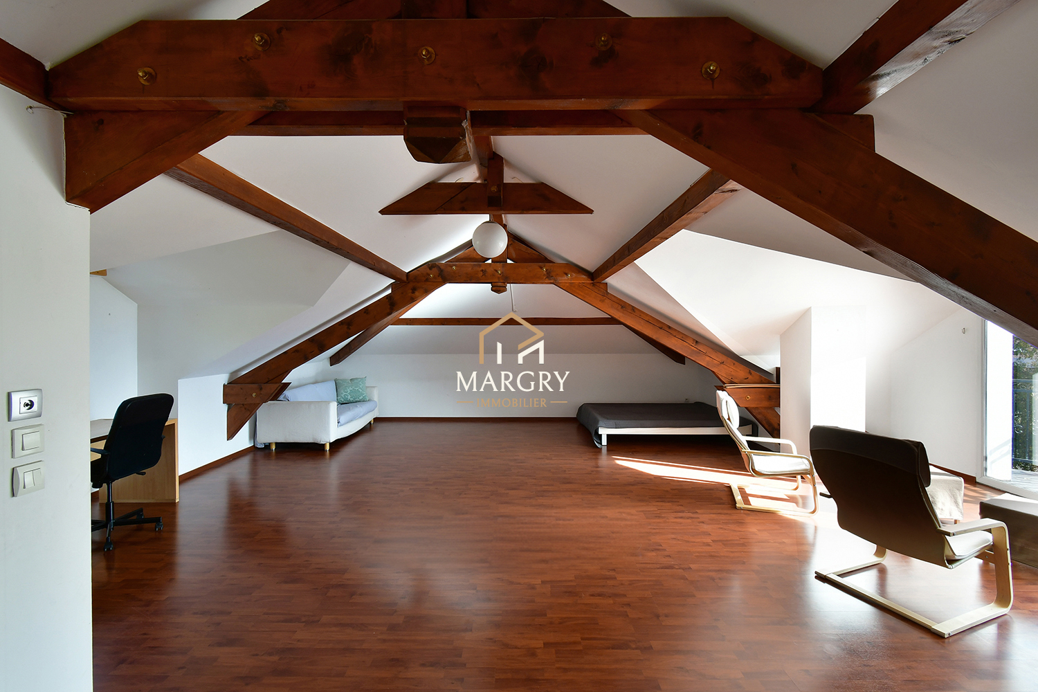 EXCLUSIVITE- Voilà une très belle maison de famille spacieuse, dans un environnement champêtre et calme tout en étant située à 10mns à pied des commodités commerciales et scolaires du centre ville. Les futurs propriétaires jouiront d'espaces de vie remarquables-66m² pour le séjour, 16m² pour la cuisine- par leurs dimensions et aussi par leur luminosité. Les chambres aussi sont amples et faciles à meublées. Le dernier étage constitue un espace multi-fonctionnel ouvert de 60m²! toutes les utilités sont possibles: salle de jeux, cinéma, sport, plus de chambres...en profitant d'une agréable vers les Alpes. Le bien comprend au RDC: entrée, séjour avec poêle à bois, cuisine de famille aménagée et équipée, chambre avec sa salle de douche, wc invité. ETAGE 1: petit salon, chambre parentale de 45m² avec dressing et salle de bains avec wc, deux chambres (17 et 14m²), salle de douche avec wc. ETAGE 2: grande pièce ouverte, balcon. SOUS-SOL: garage (80m²), deux caves, un local sauna. EXTERIEUR: grande terrasse, jardin paysagé, places de stationnement.