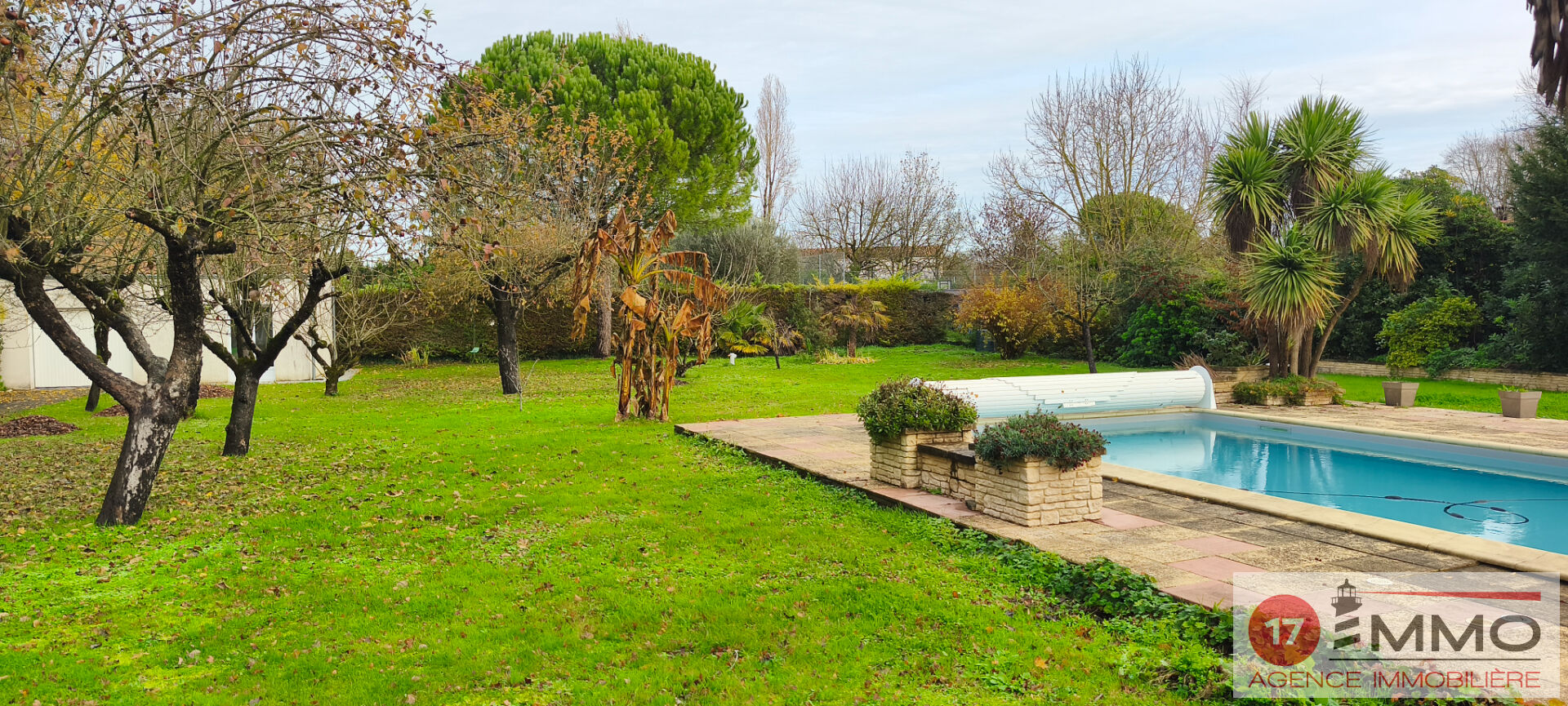 Rare sur le secteur ! A seulement 10 minutes des plages de Châtelaillon, venez découvrir cette belle propriété offrant de beaux volumes. Située au calme, tout en étant proche des commerces de proximité, des écoles et du TER de La Jarrie, cette maison allie confort et praticité. Elle se compose d'une entrée, d'un spacieux salon/salle à manger baigné de lumière, ainsi que d'une cuisine aménagée et équipée ouverte sur la terrasse. La partie nuit comprend 3 chambres avec rangements, un WC, et une salle de bain avec douche et baignoire. Atout majeur : un grand sous-sol entièrement carrelé incluant chaufferie, buanderie et garage avec porte motorisée. Grâce à son volume généreux, cet espace se prête parfaitement à l'aménagement d'une salle de jeux, de sport ou encore d'un espace dédié à une activité indépendante (atelier, bureau professionnel, stockage?). A l'extérieur, le jardin arboré et fleuri offre un cadre apaisant pour profiter pleinement de la piscine. Le pool-house, équipé d'une salle d'eau et d'un WC, apporte un confort supplémentaire. Un garage indépendant de 35 m², raccordé à l'eau et à l'électricité, complète ce bien et peut également convenir pour une activité professionnelle, un atelier ou du stockage. Si vous souhaitez plus d'informations ou organiser une visite, n'hésitez pas à contacter Sandrine Brisset au 06 68 78 78 75. Agent commercial inscrit au RSAC de La Rochelle sous le numéro 899 975 106 . Les informations sur les risques auxquels ce bien est exposé sont disponibles sur le site Géorisques : www.georisques.gouv.fr" (3.50 % honoraires TTC à la charge de l'acquéreur.)
