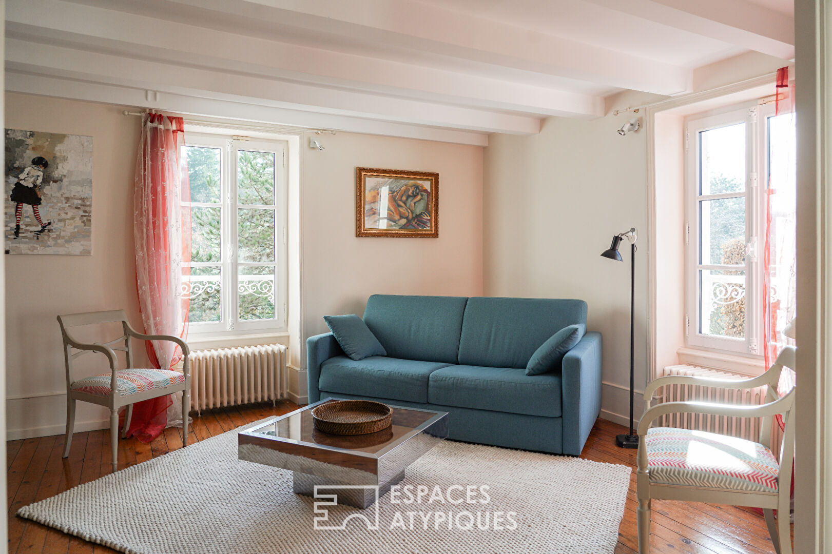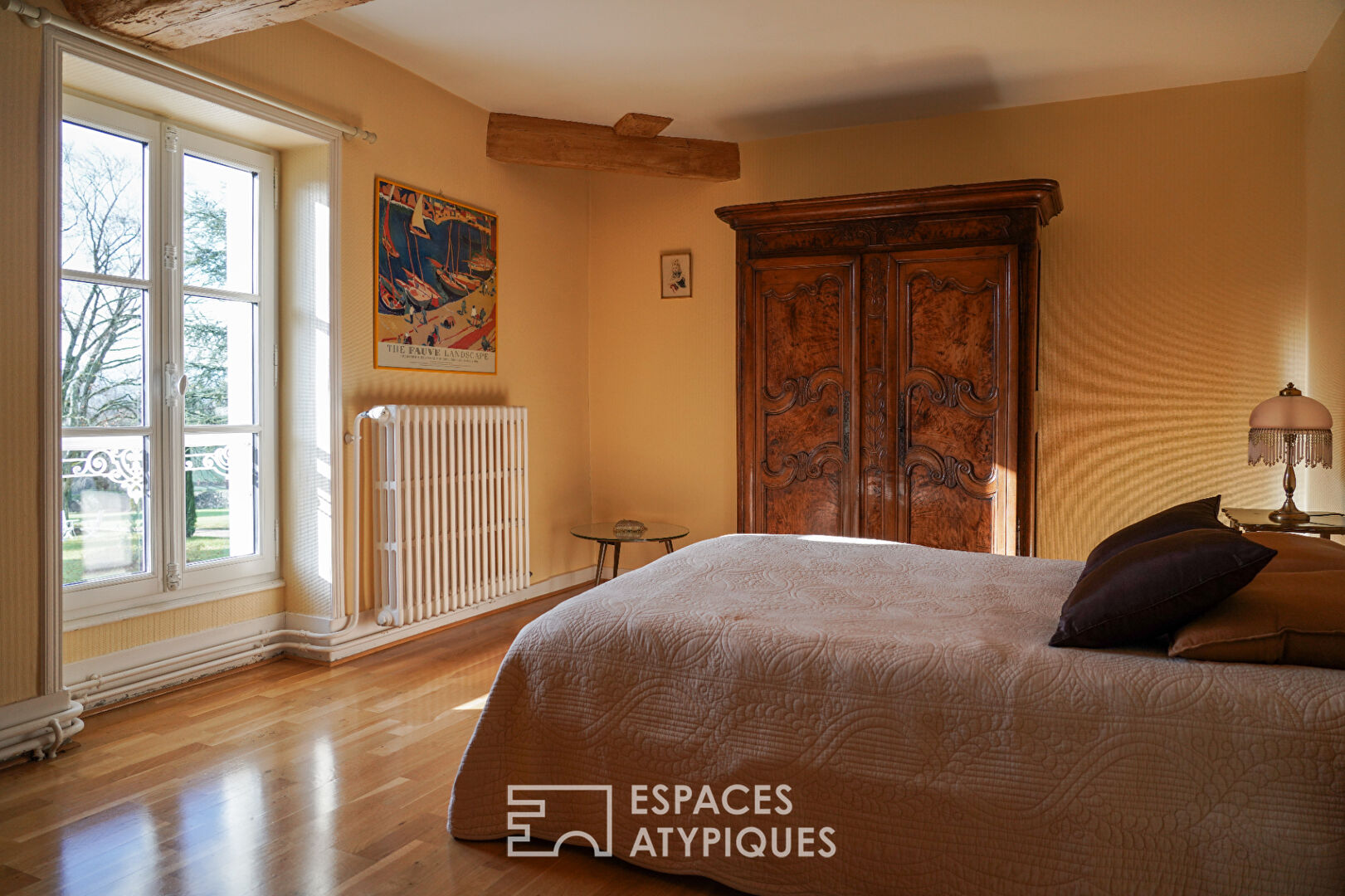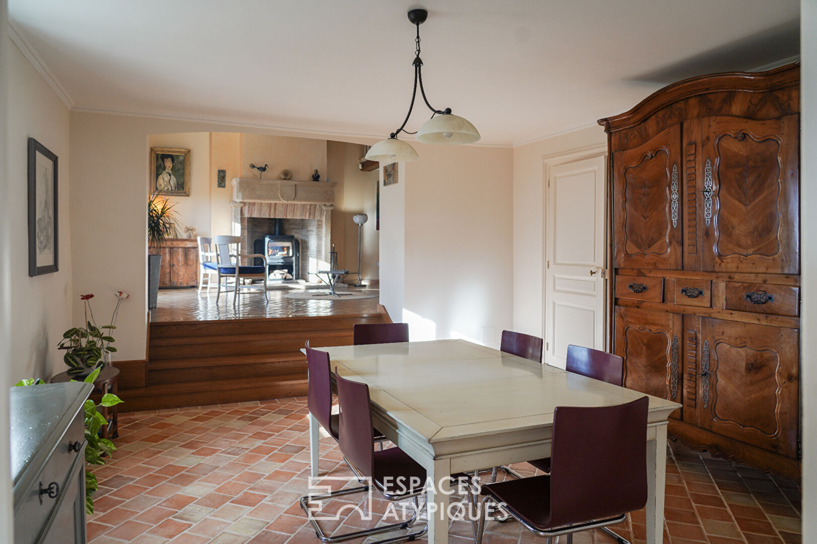Niché sur la commune prisée de Chevagny-les-Chevrières, cet ancien relais de chasse transformé en une élégante demeure de caractère développe une surface habitable d'environ 190 m² au coeur d'un parc arboré de plus de 6000 m². Ce lieu de vie singulier, témoin du passé et fruit d'une rénovation soignée, allie le charme de l'ancien au confort contemporain, offrant une vue exceptionnelle sur l'emblématique Roche de Solutré. L'entrée dévoile une atmosphère chaleureuse où l'histoire de la bâtisse résonne à travers les matériaux nobles. Le rez-de-chaussée, habillé d'authentiques tomettes, s'ouvre sur de beaux volumes baignés de lumière. La pièce de vie principale s'articule autour d'une majestueuse cheminée en pierre, pièce maîtresse rappelant la vocation première des lieux, tandis que la cuisine indépendante et entièrement équipée invite à la convivialité. L'étage, accessible par un bel escalier, dessert l'espace nuit où le parquet massif apporte une touche d'élégance supplémentaire. Il se compose de deux chambres spacieuses qui se partagent une salle d'eau et d'une chambre parentale. La belle hauteur sous plafond et la luminosité traversante confèrent à l'ensemble une sensation d'espace et de sérénité. A l'extérieur, la propriété dévoile toute sa singularité. Véritable domaine confidentiel, le parc abrite de majestueux arbres centenaires, un puits ancien et des perspectives paysagères qui évoluent au fil des saisons. Garage, carport et caves complètent les prestations. Ici, la nature offre un écrin rare, un luxe recherché à seulement quelques minutes des commodités. A 45 minutes de Lyon, 1h45 de Genève et 1h30 en TGV de Paris . Classe énergie : C - Classe climat : C - Montant moyen estimé des dépenses annuelles d'énergie entre 3066 et 4148 euros pour un usage standard, établi à partir des prix moyens des énergies indexés sur les années 2021, 2022, 2023 (abonnements compris). Les informations sur les risques auxquels ce bien est exposé sont disponibles sur le site Géorisques pour les zones concernées. Christian PHILIBERT agent commercial - EI (numéro RSAC 811716778) Mâcon : 06 61 97 93 34 Christian PHILIBERT (EI) Agent Commercial - Numéro RSAC : 811716778 - MACON.