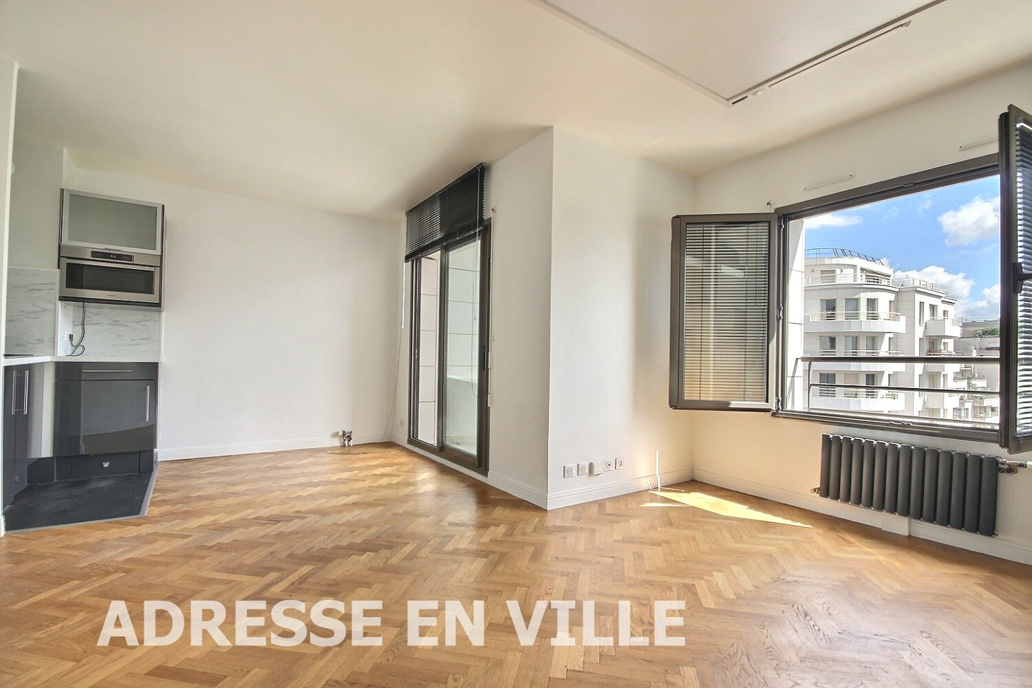 PROMESSE DE VENTE EN COURS. En étage élevé, ouvert sur un balcon profond sans vis-à-vis, ce superbe studio de 27m2 aux grandes baies vitrées offre un bel espace de vie avec un coin nuit équipé d'un lit "Espace loggia". Il est composé d'une entrée de 2,40m2, d'un séjour de 21,40m2 comprenant une kitchenette équipée et d'une salle de bains avec WC. de 3,26m2. Vous apprécierez son état impeccable et la copropriété de de haut standing avec son jardin intérieur, très bien située à 6 minutes du métro. Cave en sous-sol. Gardien. Chauffage et eau chaude collectifs avec compteurs individuels. Quartier résidentiel et commerçant. (3.39 % honoraires TTC à la charge de l'acquéreur.) Copropriété de 115 lots - dont 36 lots habitation. (Pas de procédure en cours). Charges annuelles : 1885 euros.