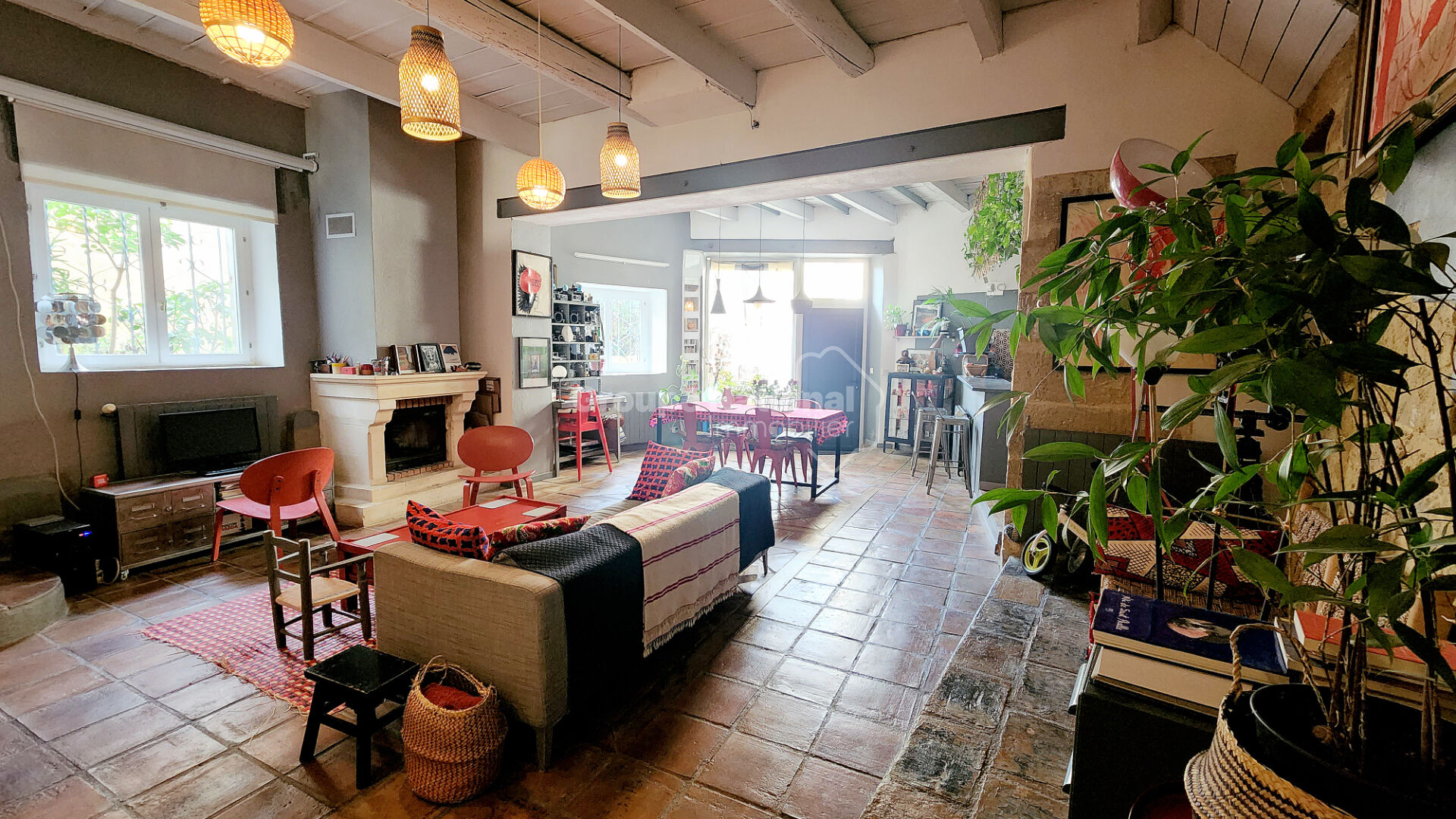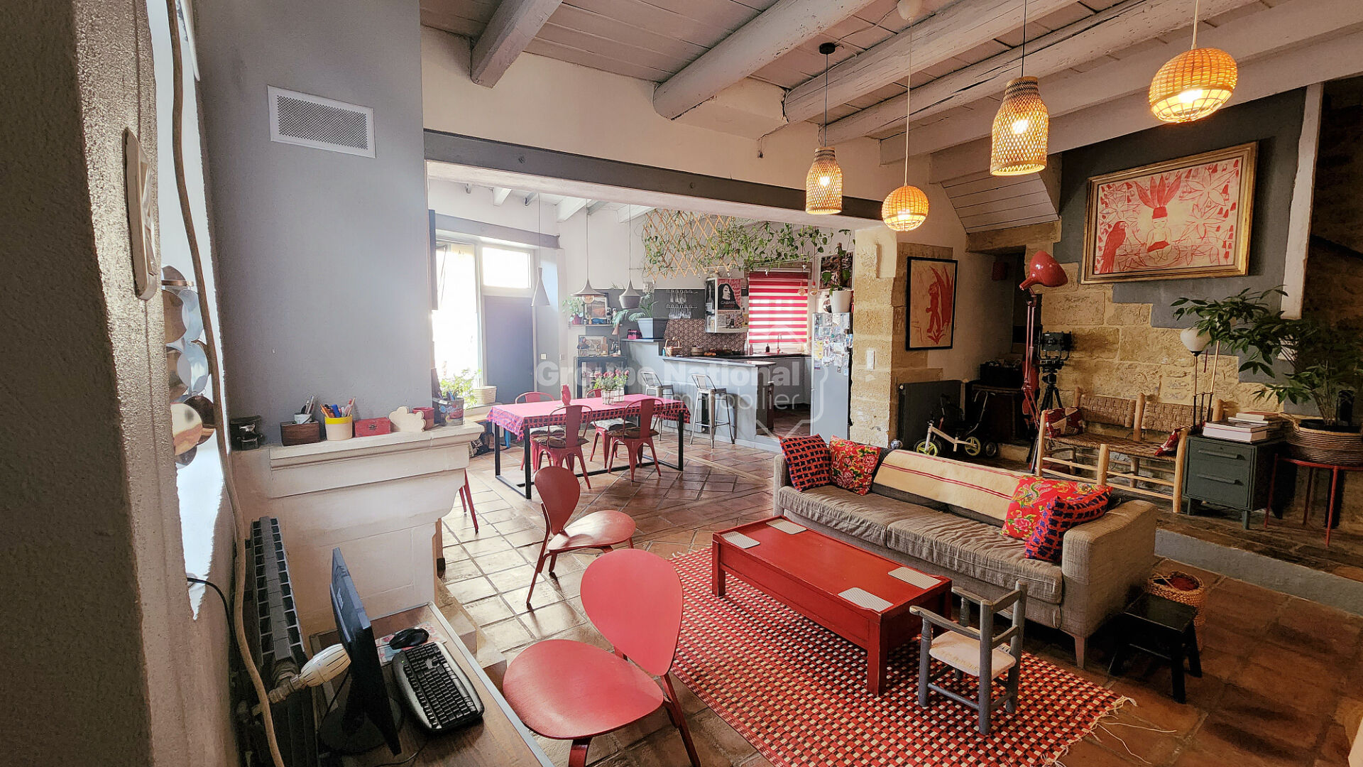 Au coeur du village, cette maison de caractère vous séduira par son caractère, ses volumes et son absence totale de vis- à vis. Les hauteurs sous plafond et les pierres apparentes y créent une atmosphère chaleureuse et unique. Le rez - de chaussée accueille une vaste pièce à vivre lumineuse de 60m2 avec cuisine ouverte équipée et un WC indépendant. L'étage dessert trois chambres dont deux d'entre elles avec mezzanine, une terrasse et un balcon. Une salle de bain vient compléter cet espace nuit. - Local à vélo - Climatisation et chauffage au gaz - Menuiseries en double vitrage - Deux places de stationnement en location à 50 m, avec portail sécurisé. - Environnement calme et accès à toutes les commodités à pied. Une maison chaleureuse, lumineuse et fonctionnelle, idéale pour une famille en résidence principale ou un investissement. Contactez nous pour plus de renseignements