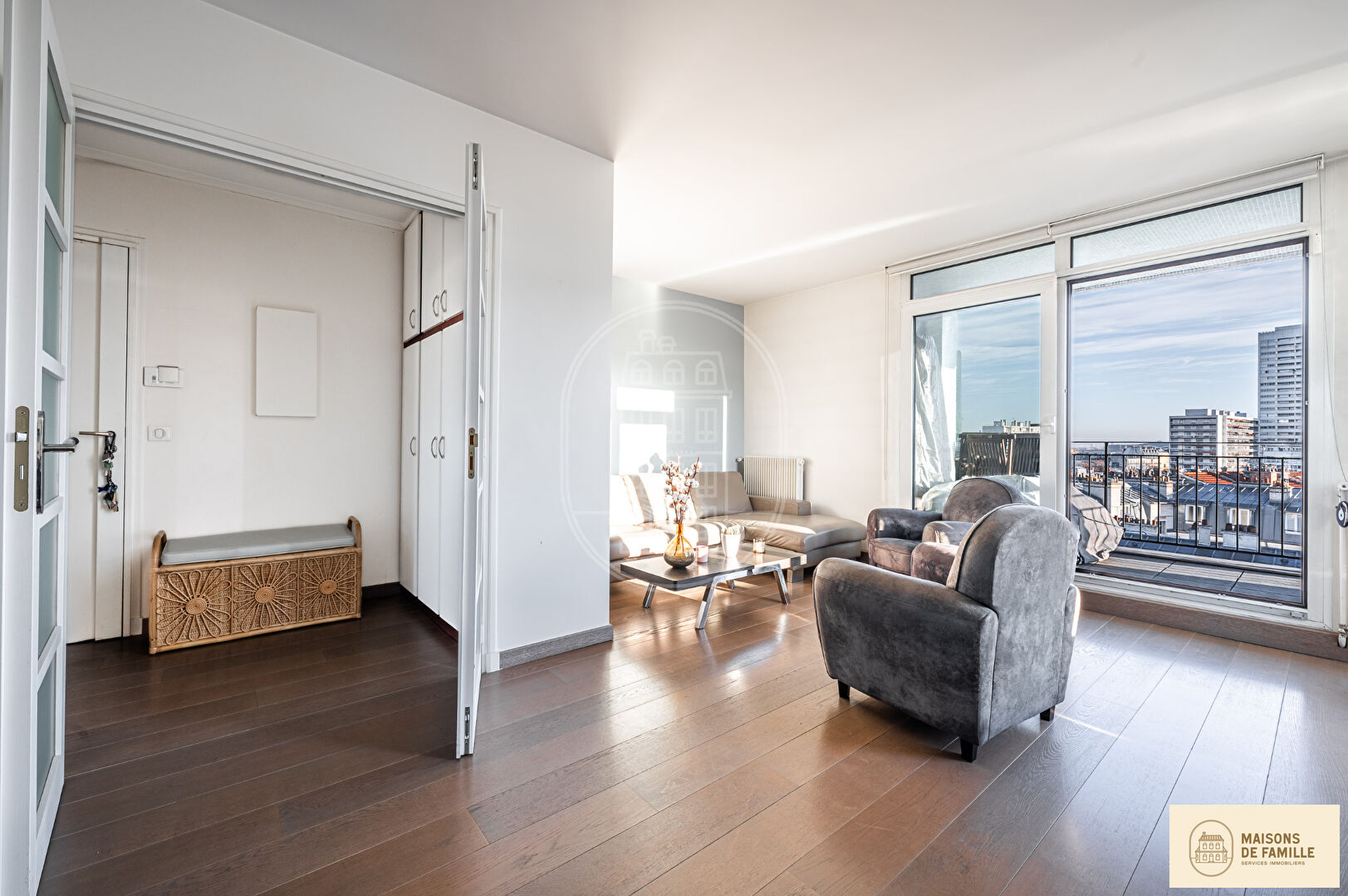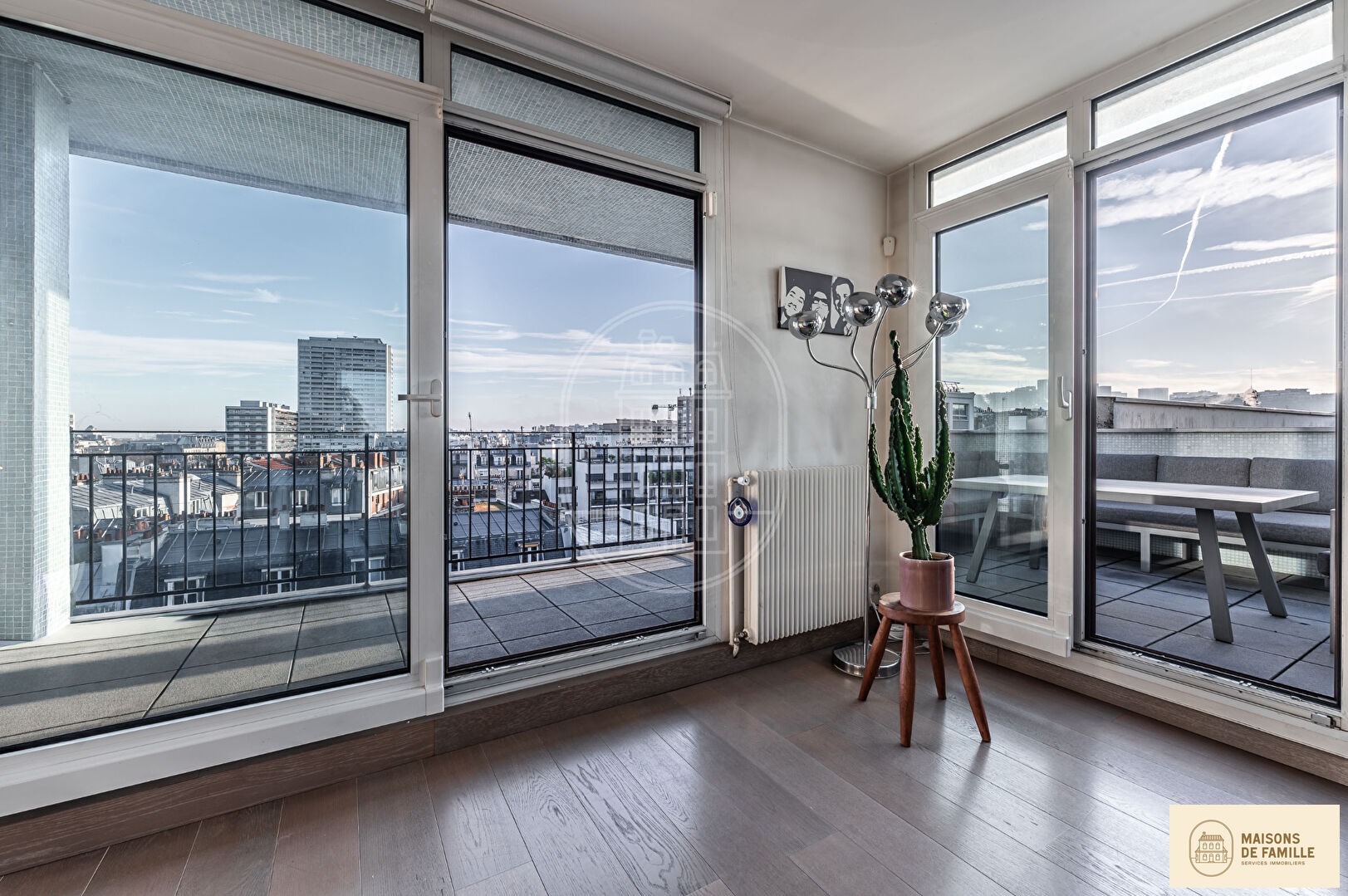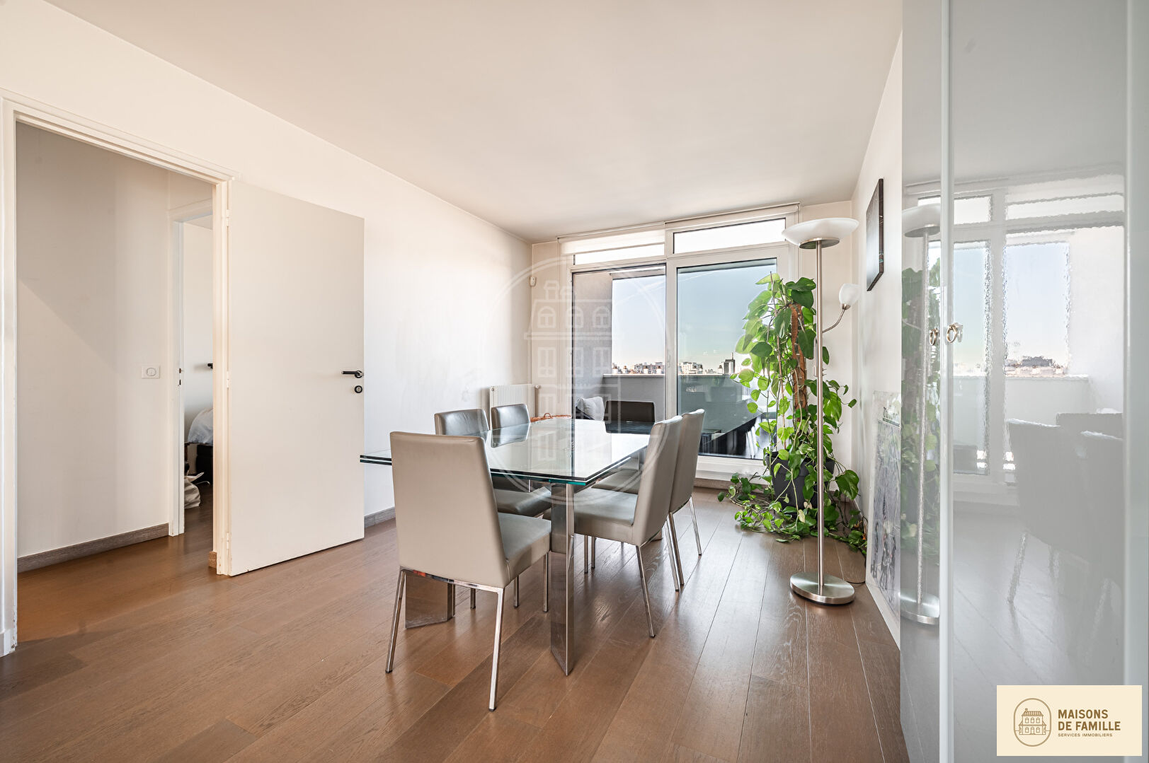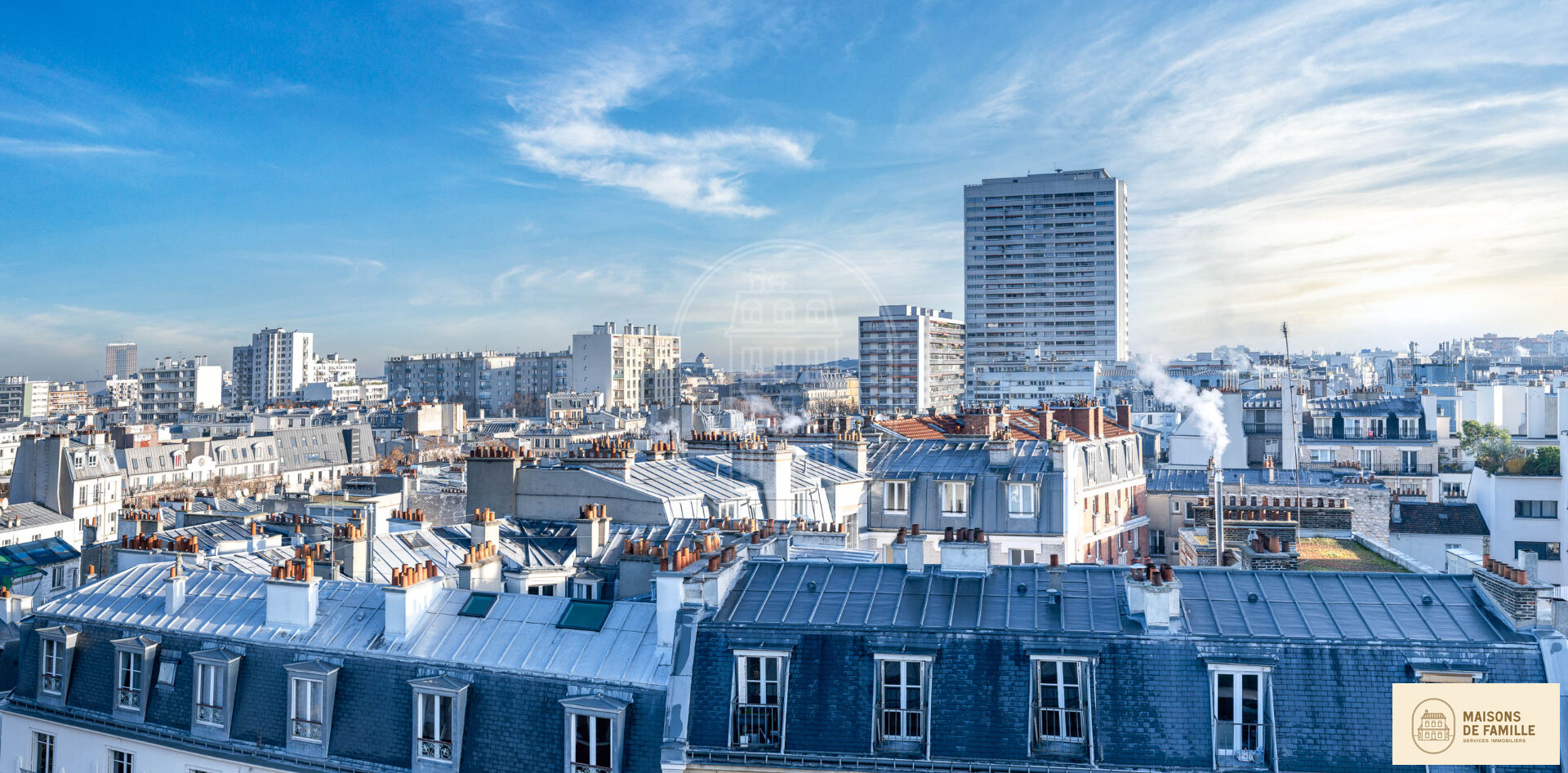 Paris 19 - Buttes-Chaumont / Laumière Appart de Famille Immobilier vous propose au 9è étage avec ascenseur d'un immeuble bien entretenu de 1965 avec gardienne, superbe appartement de 66,75 m² Loi Carrez bénéficiant d'une terrasse de 17,18 m² exposée plein sud + 4m2 de balcons. Le bien se compose d'une entrée avec rangements, d'un vaste séjour de 35,92 m² lumineux, d'une cuisine indépendante, d'une chambre (12,26 m²), d'une salle d'eau avec WC Possibilité de revenir au plan d'origine avec 2 chambres . Extérieurs : terrasse de 17,18 m² (plein sud), idéale pour déjeuner/dîner balcon supplémentaire de 3,91 m² Annexes place de parking cave Situé venue de Laumière, à proximité immédiate du métro ligne 5, commerces de quartier, cafés, restaurants et à quelques minutes à pied du Parc des Buttes-Chaumont. Atouts majeurs : étage élevé et vue dégagée, luminosité grande terrasse plein sud parking + cave (rare dans le secteur) gardienne dans l'immeuble quartier vivant, commerçant, à 2 pas du parc immeuble de 1965 Charges de copropriété : env. 500 euros/mois Taxe foncière 2025 : 1 688 euros Bien recherché dans un emplacement prisé du 19? : à visiter rapidement. (3.98 % honoraires TTC à la charge de l'acquéreur.) Copropriété de 20 lots (Pas de procédure en cours). Charges annuelles : 6000 euros.
