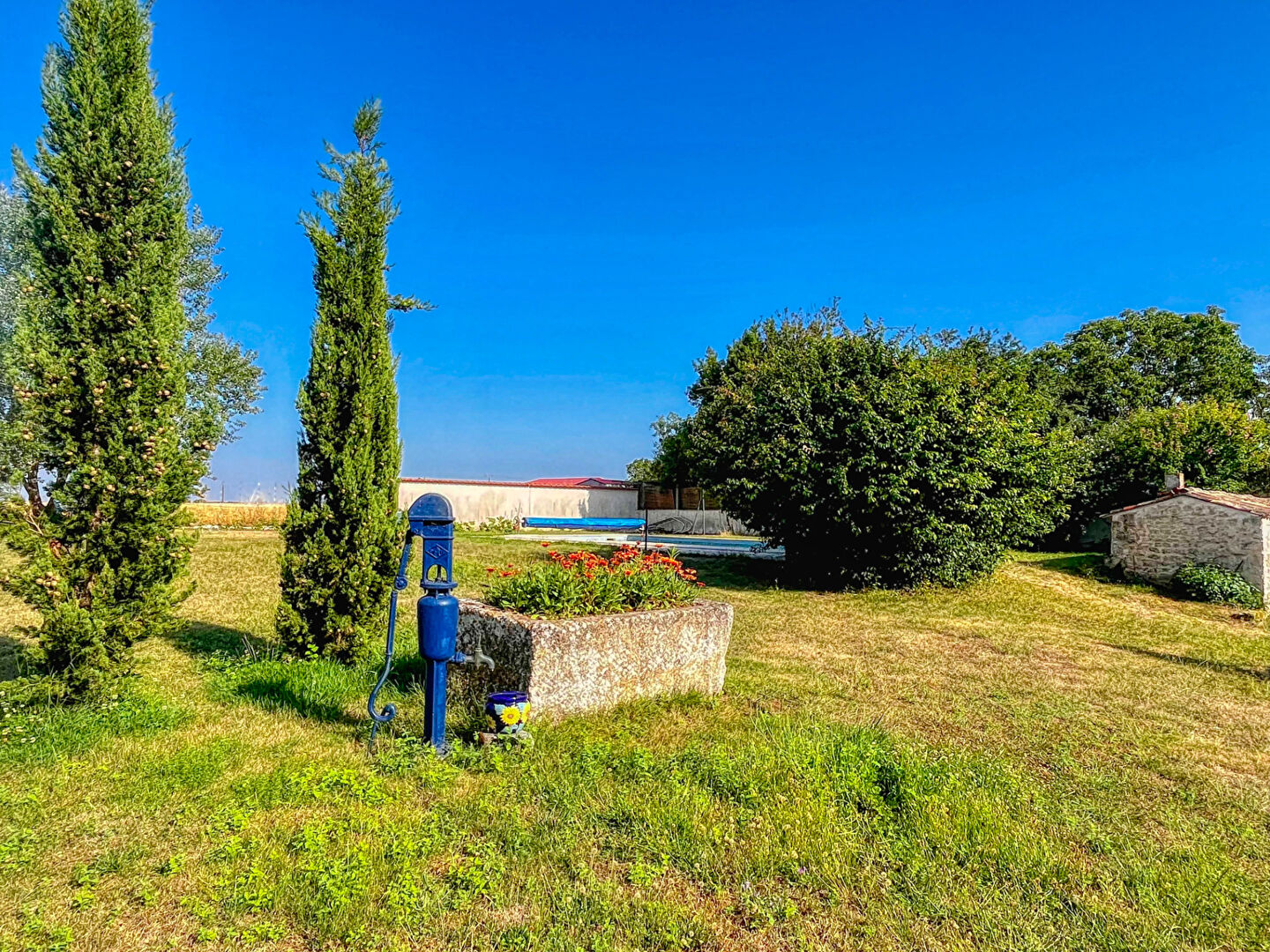 Située en pleine nature, à l'abri des regards et du tumulte, cette authentique maison charentaise vous séduira par ses beaux volumes, ses prestations de qualité et son cadre de vie paisible. Une véritable invitation à la détente et à l'art de vivre à la campagne, à seulement quelques minutes d'un bourg avec commerces et écoles. Dès l'entrée on découvre une vaste pièce de vie lumineuse et chaleureuse, un dégagement mène à deux premières chambres ainsi qu'à une salle de bains avec WC un second dégagement dessert une cuisine indépendante qui s'ouvre sur un magnifique patio de 40 m² avec son authentique four à pain, parfait pour les repas d'été ou les moments de détente à l'abri des regards, ce niveau comprend également un WC indépendant un débarras ainsi qu'un grand garage avec à l'étage une pièce aménagée actuellement en salle de jeux idéale pour les enfants. A l'étage un palier dessert trois chambres supplémentaires, un bureau parfait pour le télétravail ou les études ainsi qu'une salle d'eau fonctionnelle. L'ensemble de la maison offre une belle harmonie entre charme de l'ancien et confort moderne A l'extérieur, la propriété s'étend sur un terrain clos et arboré de 1 555 m² offrant un véritable havre de paix, une grande piscine de 6 par 13 mètres vous permettra de profiter pleinement des journées ensoleillées tandis qu'un atelier en pierre apparente vient compléter cet ensemble avec beaucoup de caractère idéal pour un espace créatif, un atelier d'artiste ou du stockage. Cette maison charentaise réunit tous les atouts pour une résidence principale confortable une maison de famille ou un projet de maison d'hôtes, elle est habitable sans travaux et offre un fort potentiel d'aménagement selon vos envies dans un cadre naturel et serein sans vis-à-vis. Un bien rare à découvrir rapidement pour les amateurs d'authenticité et d'espace ! (4.97 % honoraires TTC à la charge de l'acquéreur.)