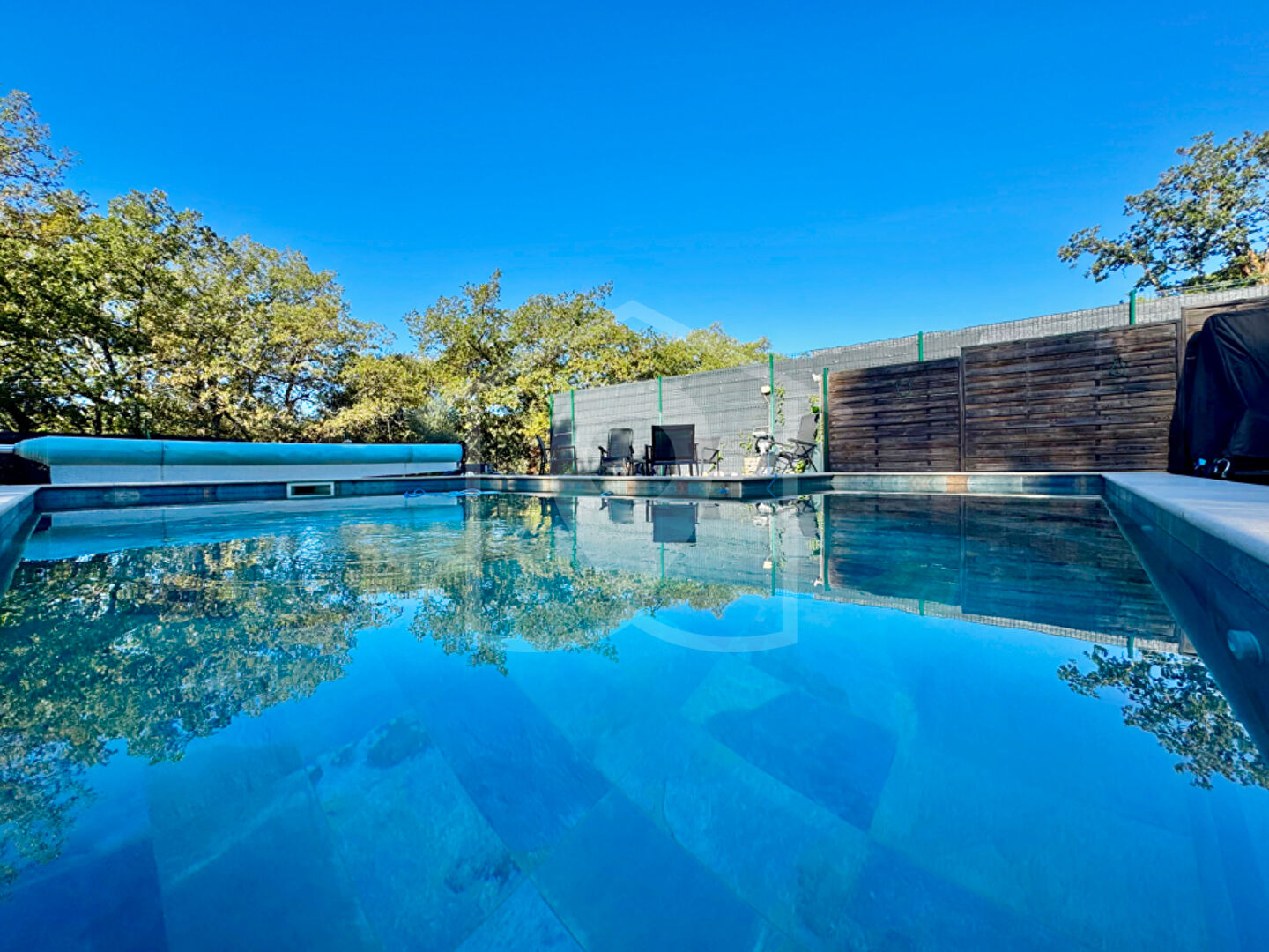 Montauroux. Belle maison 132 m² de 2012 discrètement jumelée d'un coté, au calme absolu sur une parcelle de 1000 m² . De plain pied, vous entrez sur une immense pièce de vie de plus de 70 m² double exposition SUD/EST et NORD/OUEST. La cuisine est totalement équipée, une buanderie ainsi d'un wc. Une chambre parental ainsi qu'une salle d'eau complète son confort général. A l'étage, 2 grandes chambres, un dressing XXL ainsi qu'une salle de bains. Le terrain est agrémenté d'une piscine, un jacuzzi, jeux enfants, cabanon, terrasse abritée. Le tout est en parfait état (proche du neuf), matériaux de qualité, climatisation. Nombreux stationnements au sein de la propriété. Philippe DELRUE (EI) Agent Commercial - Numéro RSAC : - ANTIBES.