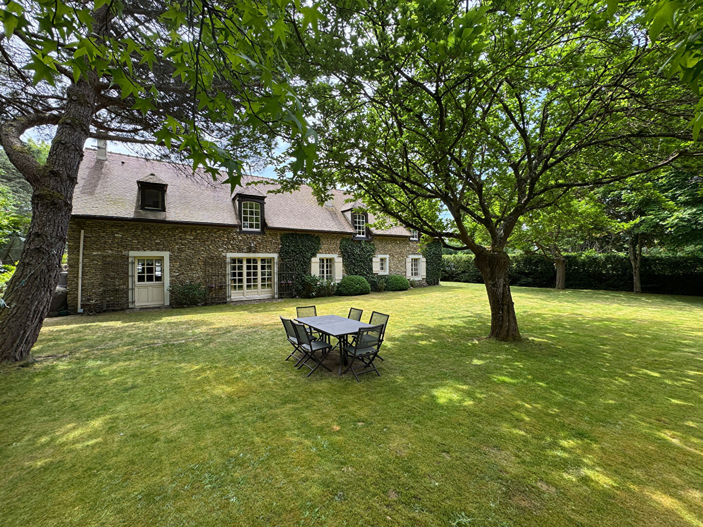 A 6 ' de Montfort l 'Amaury , pour les Amoureux de la Nature, au calme absolu, très proche de la Forêt Domaniale , environnement exceptionnel pour cette magnifique maison récente construite avec des matériaux anciens et nobles .Tres beau jardin paysagé sans vis à vis de 1600m2 avec sa jolie cour pavée . Spacieuse réception traversante avec tomettes , poutres et cheminée donnant sur jardin Sud Ouest-Petit salon S-O ( possible chambre et bains ) -Grande cuisine family room donnant sur jardin Sud. A l 'étage: Spacieuse suite parentale -2 belles chambres et salle de bains . Stationnement pour plusieurs voitures ( possible carport) -Abris de jardin-Construction de qualité exceptionnelle -Commerces et école et Forêt à pied. REF:2779 (3.96 % honoraires TTC à la charge de l'acquéreur.)