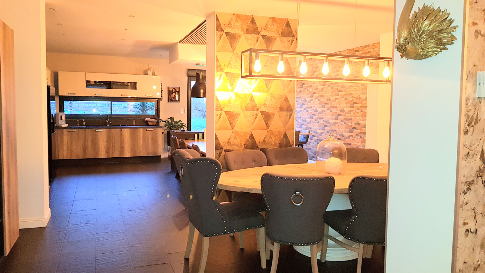 Maison individuelle, rénovée avec goût, d'une surface habitable de 170 m² environ et comprenant au rez de chaussée : entrée, séjour-salon-cuisine équipée récente (68 m² environ), salle de bains avec baignoire et douche + dressing, bureau, lingerie, wc. A l'étage : 2 grandes chambres + 1 chambre possible (20 m² environ). en annexes : garage, cave, jardin. L'ensemble sur et avec 857 m². Rénovation de qualité, à découvrir vite. (4.17 % honoraires TTC à la charge de l'acquéreur.)
