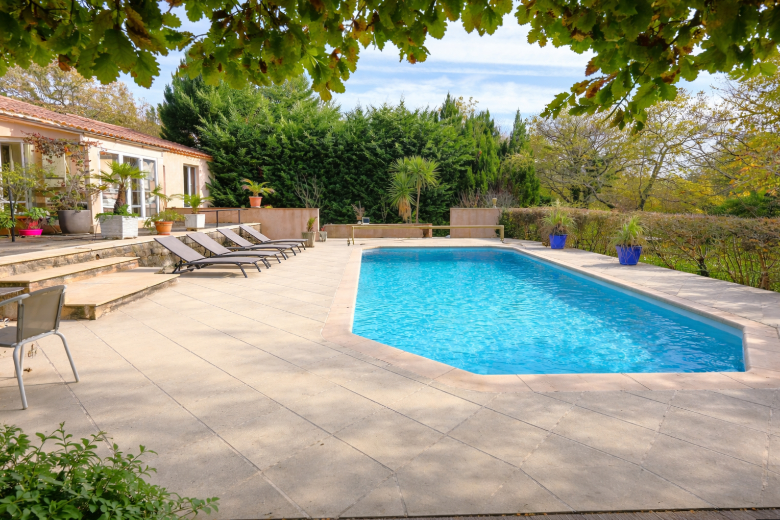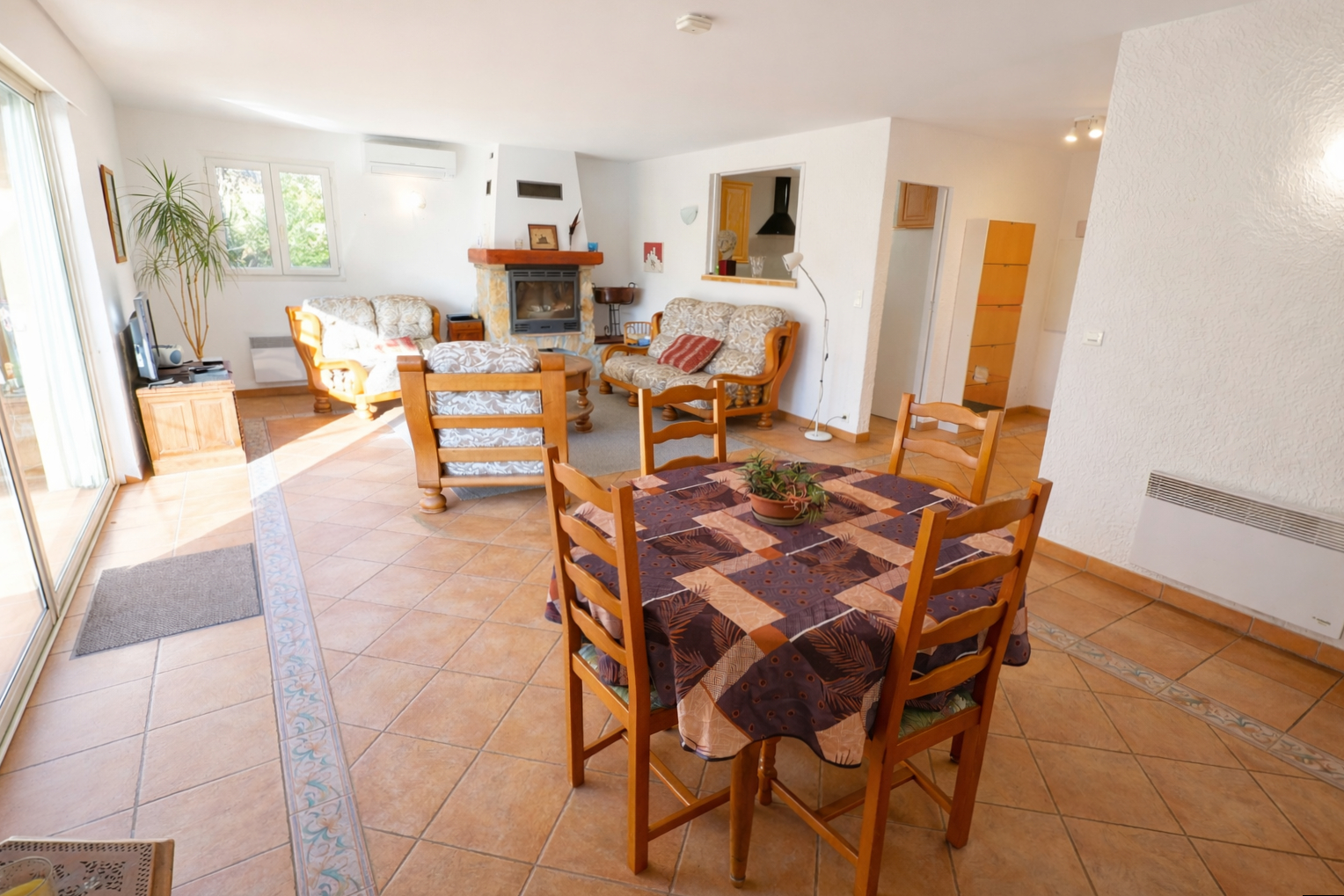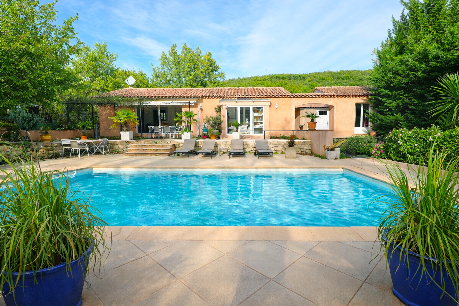 * EXCLUSIVITE SAINT CEZAIRE * Coup de coeur assuré pour cette belle villa de plain pied de 120 m², implantée sur 2500 m² de terrain avec son espace piscine chauffée et volet roulant solaire. Se compose: d'un vaste séjour lumineux avec sa grande baie en galandage, cheminée insert gainable dans toutes les pièces et climatisation, salon offrant une vue directe sur la terrasse et piscine, cuisine équipée et aménagée, 3 chambres, une salle de bains, un wc . En dépendance : une chambre en mezzanine, une salle d'eau-wc. Un garage et abri de jardin. A découvrir sans tarder ! (4.17 % honoraires TTC à la charge de l'acquéreur.)