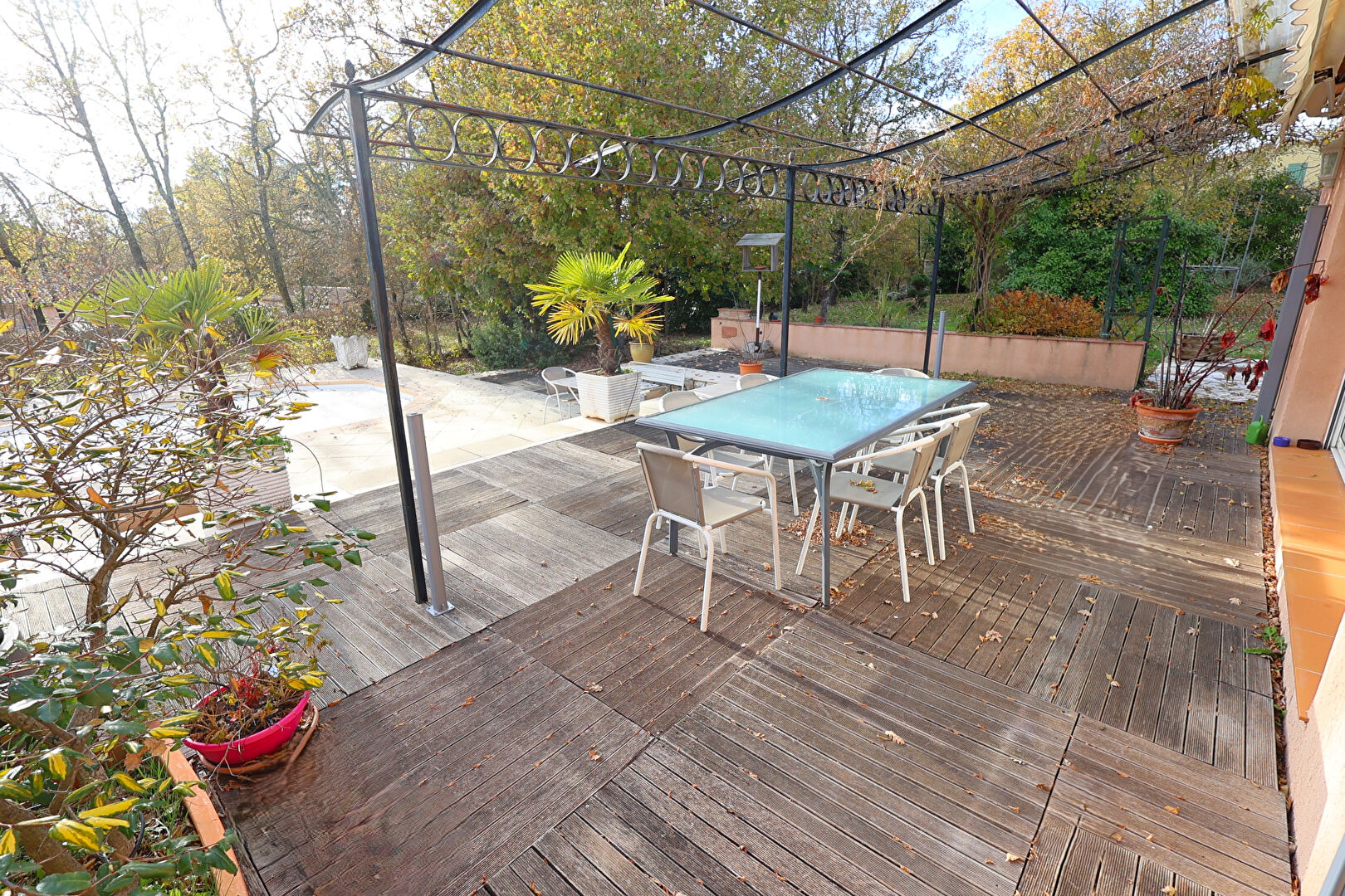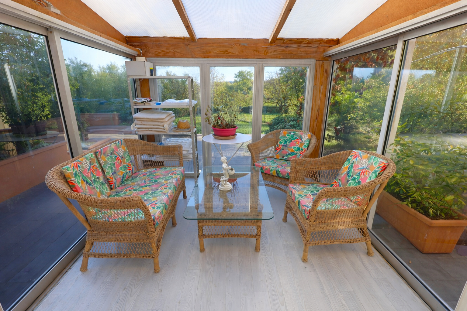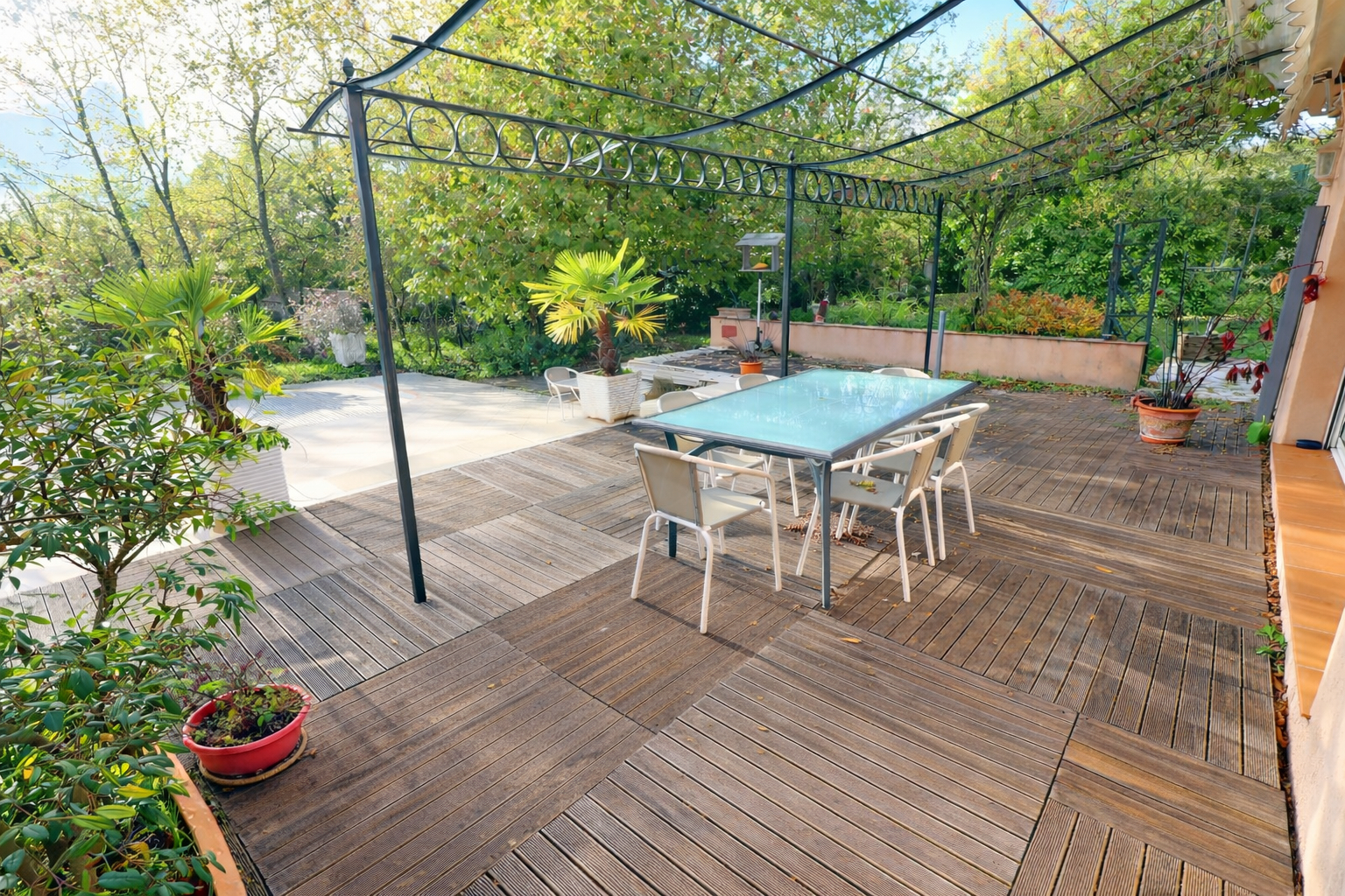 * EXCLUSIVITE SAINT CEZAIRE * Coup de coeur assuré pour cette belle villa de plain pied de 120 m², implantée sur 2500 m² de terrain avec son espace piscine chauffée et volet roulant solaire. Se compose: d'un vaste séjour lumineux avec sa grande baie en galandage, cheminée insert gainable dans toutes les pièces et climatisation, salon offrant une vue directe sur la terrasse et piscine, cuisine équipée et aménagée, 3 chambres, une salle de bains, un wc . En dépendance : une chambre en mezzanine, une salle d'eau-wc. Un garage et abri de jardin. A découvrir sans tarder ! (4.17 % honoraires TTC à la charge de l'acquéreur.)