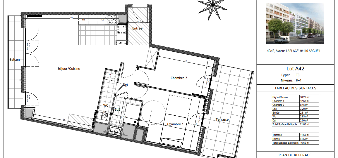 FRAIS DE NOTAIRE OFFERT ! Idéalement situé à deux pas du RER B Laplace et à proximité immédiate du centre commercial La Vache Noire, découvrez ce superbe 3 pièces au 4 ème étage d'une résidence récente de 2025, mêlant modernité et prestations haut de gamme, avec jardin partagé. Traversant et très lumineux, l'appartement offre une belle entrée avec rangements, un vaste séjour avec cuisine américaine (non aménagée) de 38m2 ouvrant sur un grand balcon filant. Deux chambres complète ce bien (10 et 13m2) donnant eux sur une grande terrasse de 12 m² ensoleillée sans vis a vis et au calme. Vous profiterez également d'une salle d'eau avec grande douche et d'un WC indépendant. Possibilité d'acquérir un emplacement de parking en sous-sol et une cave en sus. FRAIS DE NOTAIRE OFFERT ! Une opportunité rare à ne pas manquer ! Copropriété de 20 lots (Pas de procédure en cours). Charges annuelles : 3000 euros.