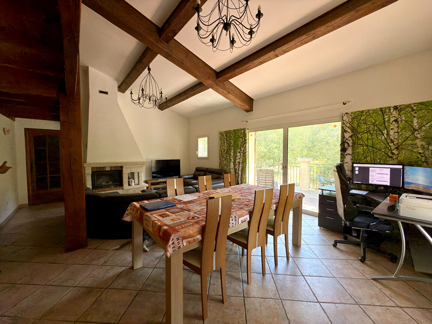 Découvrez cette superbe villa de 1998 pleine de charme, dans un environnement idyllique, très calme, d'une surface habitable totale de 222,31 m² sur un terrain de 6600 m². La maison principale dispose d'une cuisine avec cellier et d'un superbe séjour avec cheminée et ouvert sur la terrasse exposée plein sud. Côté nuit, 4 chambres, une salle de bains avec douche et baignoire et un WC indépendant. En rez-de-jardin, une dépendance indépendante de 77 m² vient compléter ce bien avec une cuisine et un séjour ouvert sur l'extérieur avec une magnifique terrasse couverte. Côté nuit, deux chambres et une salle d'eau en travertin avec douche à l'italienne et WC. Idéal pour accueillir votre famille ! A l'extérieur, profitez de deux terrasses, d'un jardin verdoyant et d'un superbe garage attenant de 23 m². La maison offre un cadre calme et ensoleillé toute la journée, avec vue sur la colline. La villa est sur vide-sanitaire avec un accès direct et sur fosse septique avec une pompe de relevage pour la dépendance. Bien proposé par Natalia RAJCHERT 06x64x30x96x98, agent commercial EI immatriculé au RSAC Draguignan sous le n° 980785760. Agence ABC IMMO située 58 rue Jules Ferry 83170 Brignoles, SIREN 803693795. CPI 83012016000004033 délivrée par la CCI du Var. Les informations sur les risques auxquels ce bien est exposé sont disponibles sur le site Géorisques : www.georisques.gouv.fr.