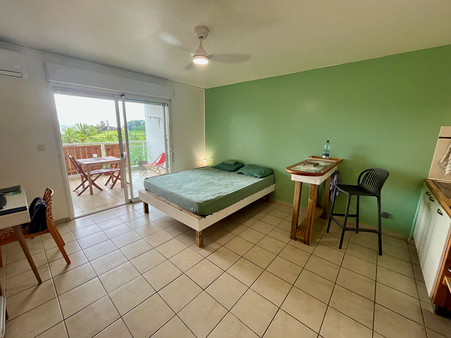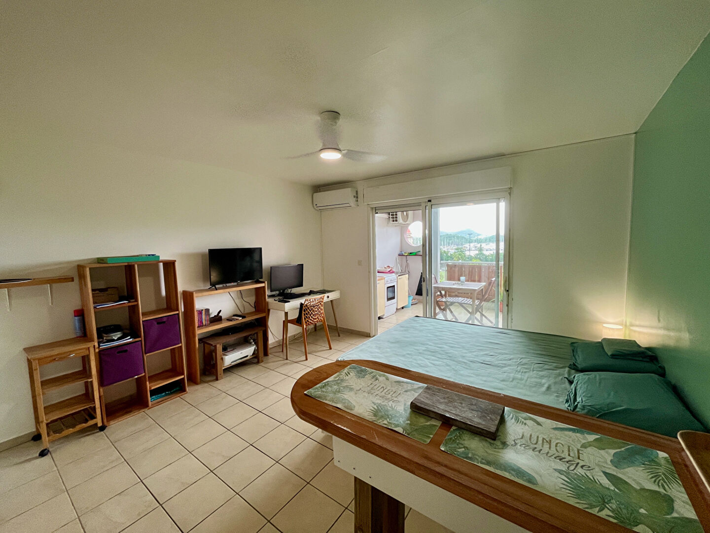 Beau studio meublé dans résidence sécurisée avec vue mer proche Marina du Marin. Entrée avec placards, séjour climatisé et brasseur d'air, coin-cuisine aménagée et équipée (réfrigérateur, four, plaques vitro-céramique et gaz), salle d'eau avec WC, terrasse couverte de 12 m2. SH: 26,49 m2. Logement très propre avec parking privatif. Dépôt de garantie : 1200 euros Honoraires locataire : 344,37 euros (visites, constitution du dossier, rédaction du bail : 264,90 euros, état des lieux : 79,47 euros). Les informations sur les risques auxquels ce bien est exposé sont disponibles sur le site Géorisques : www.georisques.gouv.fr