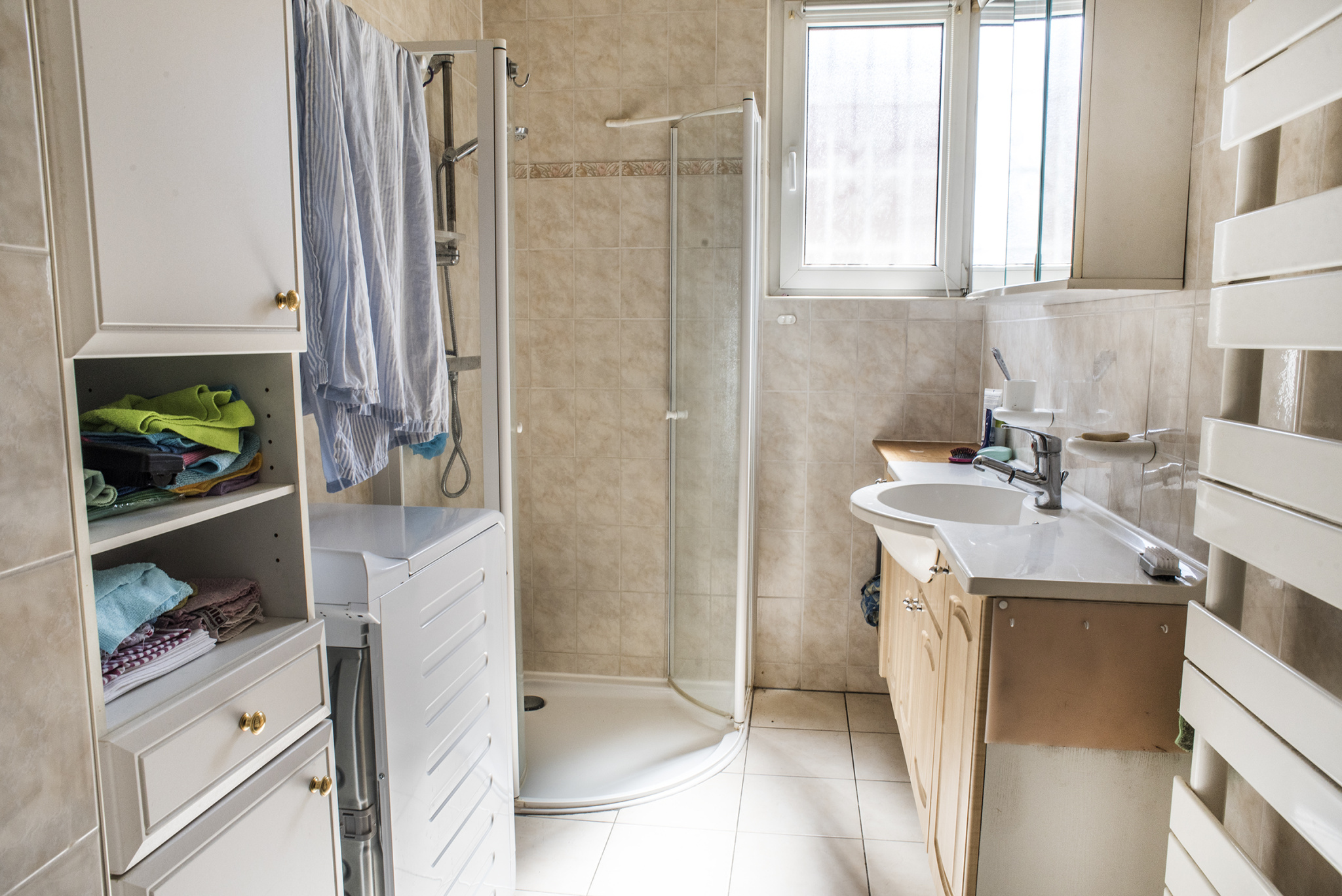Toujours au rez-de-chaussée, une chambre confortable, une salle d'eau moderne et un WC séparé complètent ce niveau.
